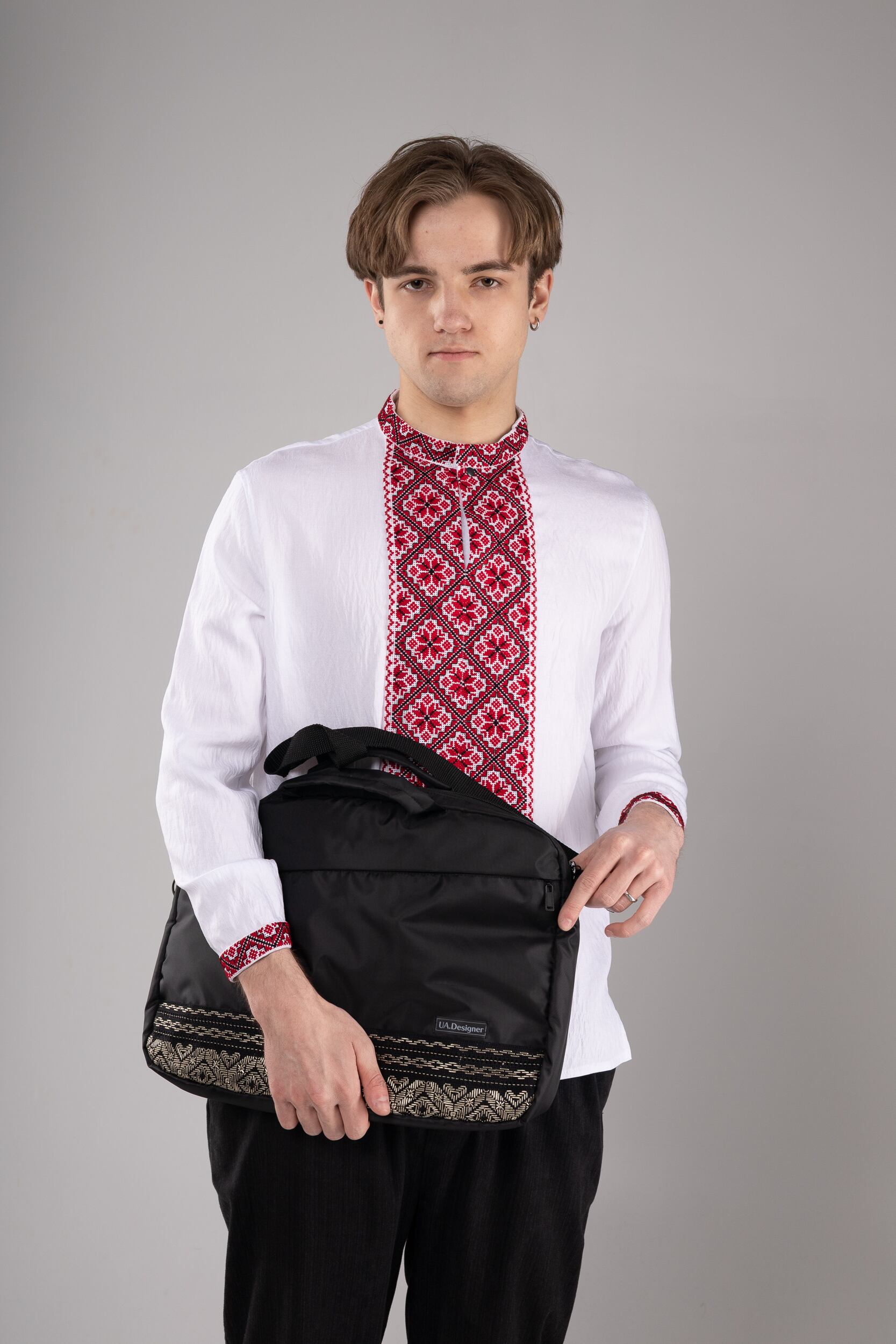 この作品は、ウクライナの伝統と美しさを象徴するヴィシヴァンカの刺繍を採用しています。