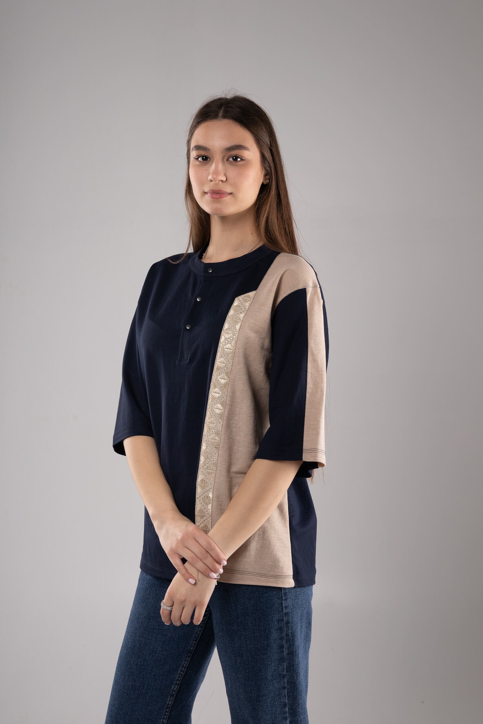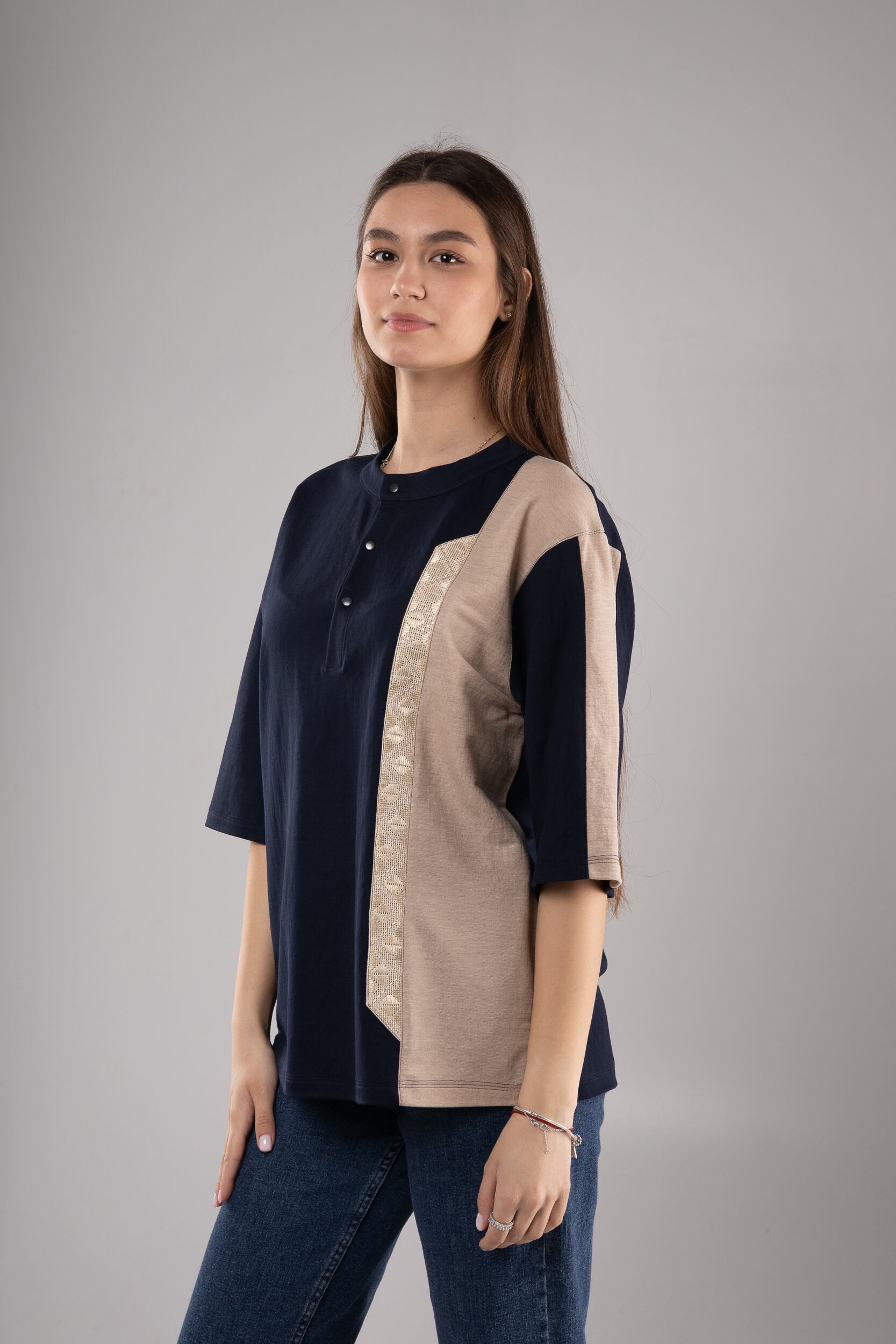 商品名:ウクライナ刺繍ノーカラーポロシャツ