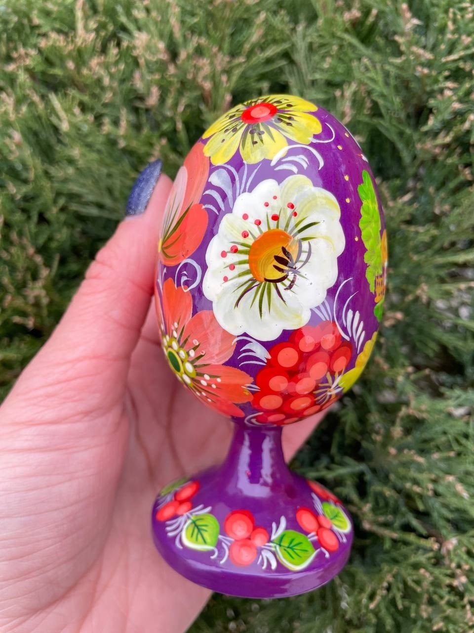 詳細:当店のプィサンカは、ウクライナのドニプロに位置するペトリキフカ村で、熟練の職人によってハンドペイントで制作されたイースターエッグです。サイズは11cmで、土台付きでシーンを選ばずすぐに飾ることが可能です。