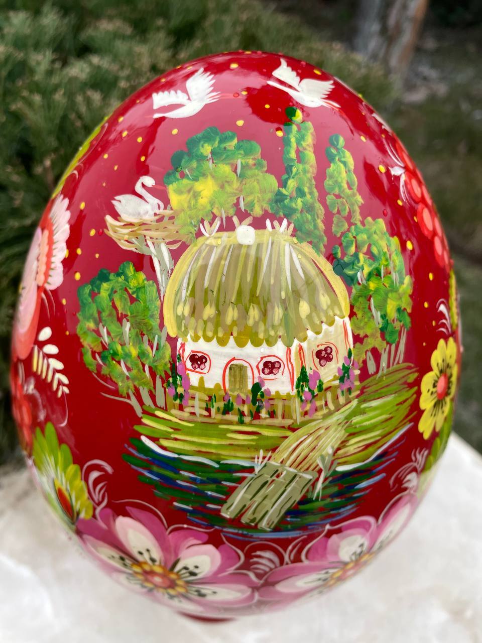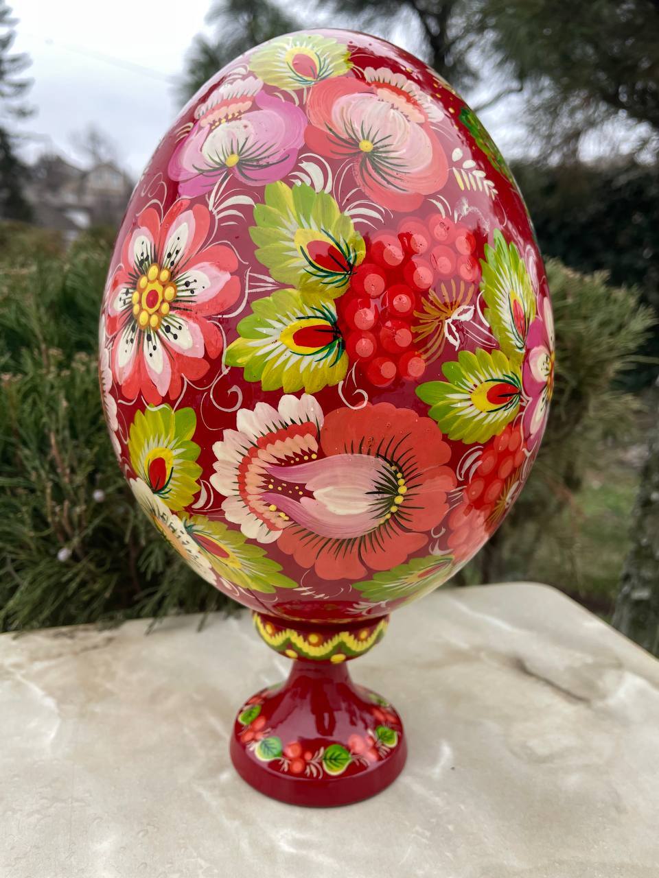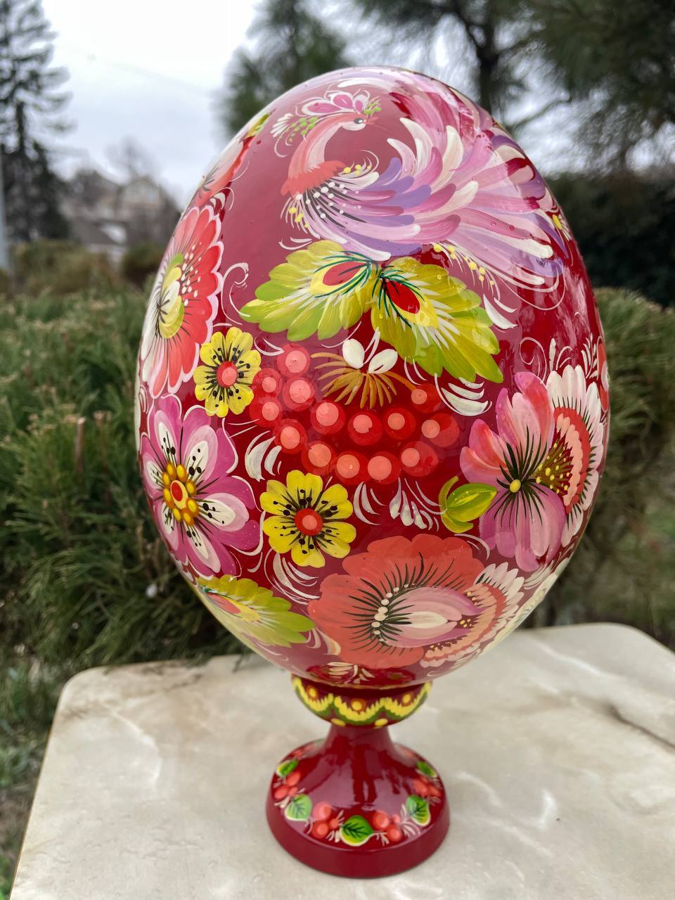 詳細:当店のプィサンカは、ウクライナのドニプロに位置するペトリキフカ村で、熟練の職人によってハンドペイントで制作されたイースターエッグです。サイズは20cmで、土台付きでシーンを選ばずすぐに飾ることが可能です。