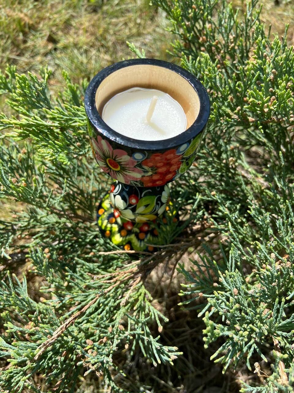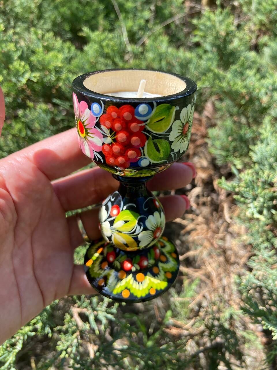 このキャンドルホルダーは、ユネスコ無形文化遺産にも登録されているウクライナの誇るペトリキフカ塗りを施した色彩豊かな作品です。
