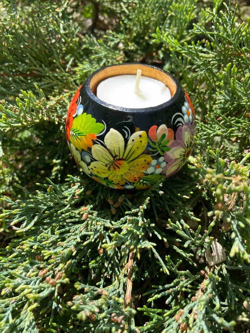 このキャンドルホルダーは、ユネスコ無形文化遺産にも登録されているウクライナの誇るペトリキフカ塗りを施した色彩豊かな作品です。