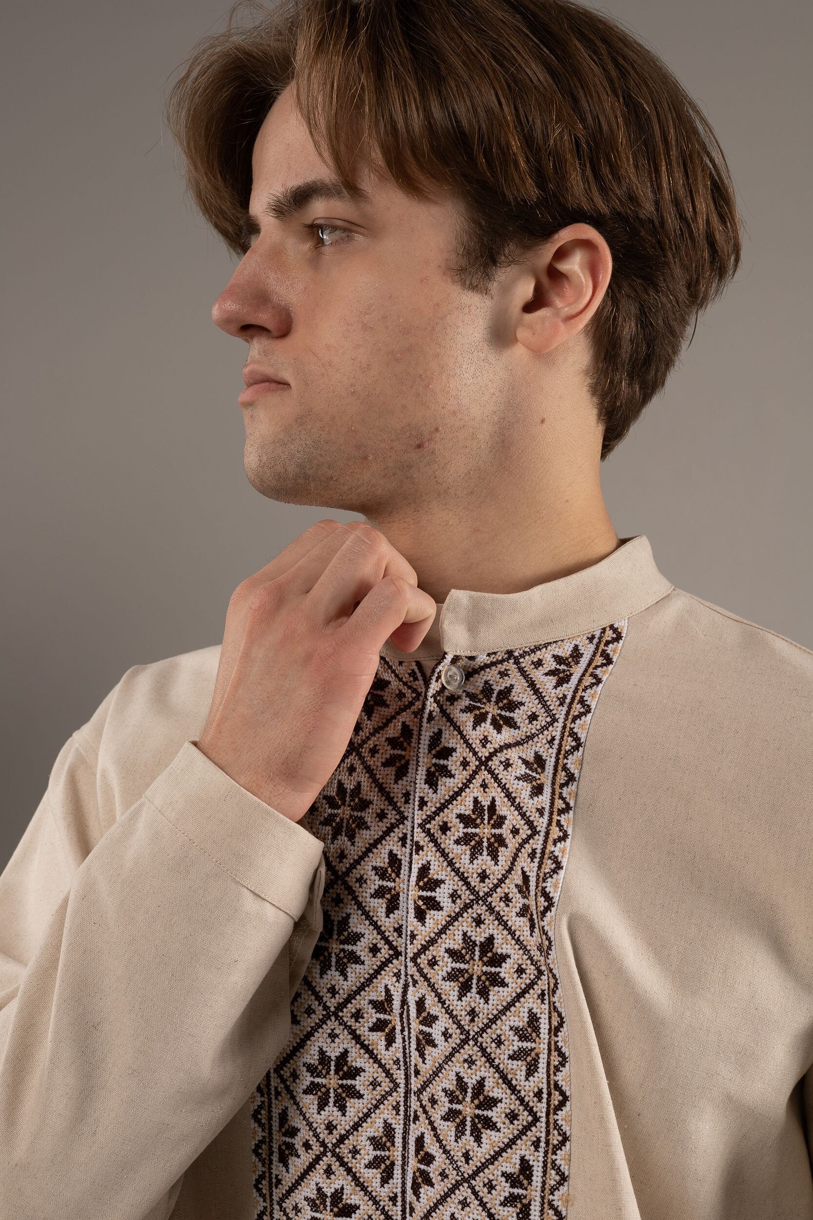 ウクライナ刺繍ヴィシヴァンカ(茶)クロスステッチ手刺繍 XLサイズ メンズ