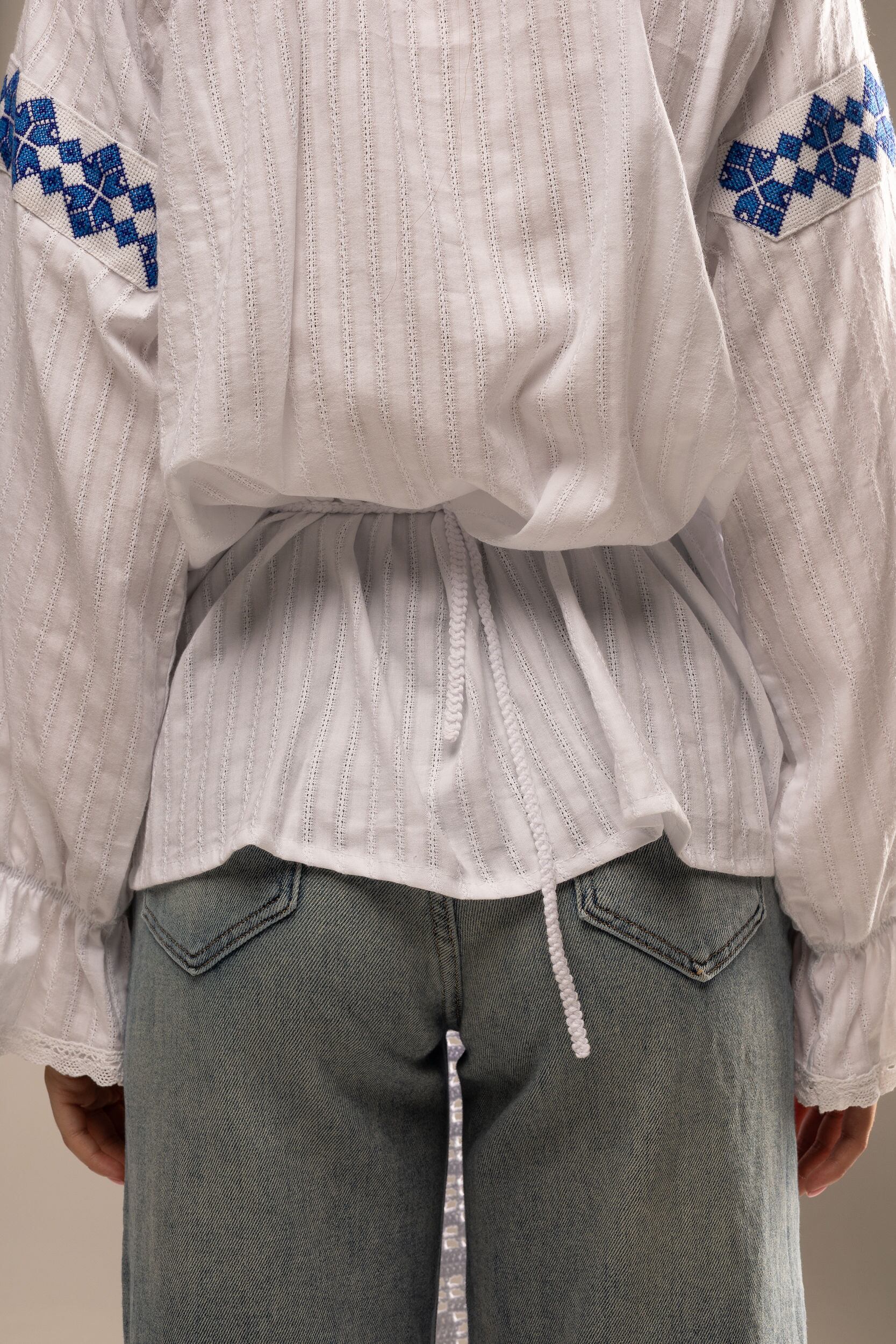 この作品は、ウクライナの伝統と美しさを象徴するヴィシヴァンカの刺繍を採用しています。過度な派手さを追求せず、日本の日常生活に自然に溶け込むデザインとなっております。しかし、それでいて洗練された高級感とカジュアルな雰囲気を両立させ、見る人を魅了する一着となっています。