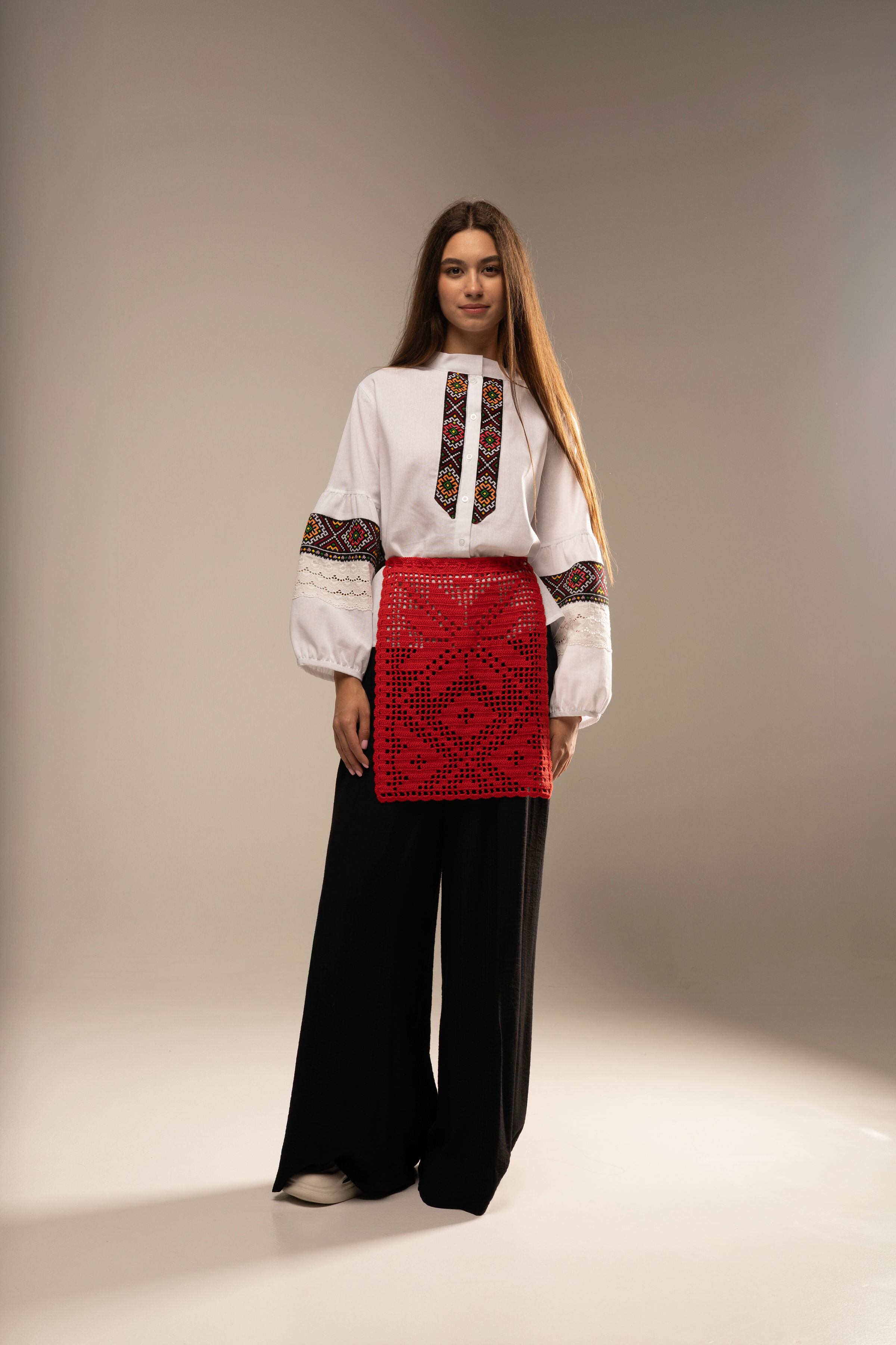100年以上前のウクライナの女性たちが日常や特別な日に身につけていた、装飾的な布「プリピンダ(Припинда)」。