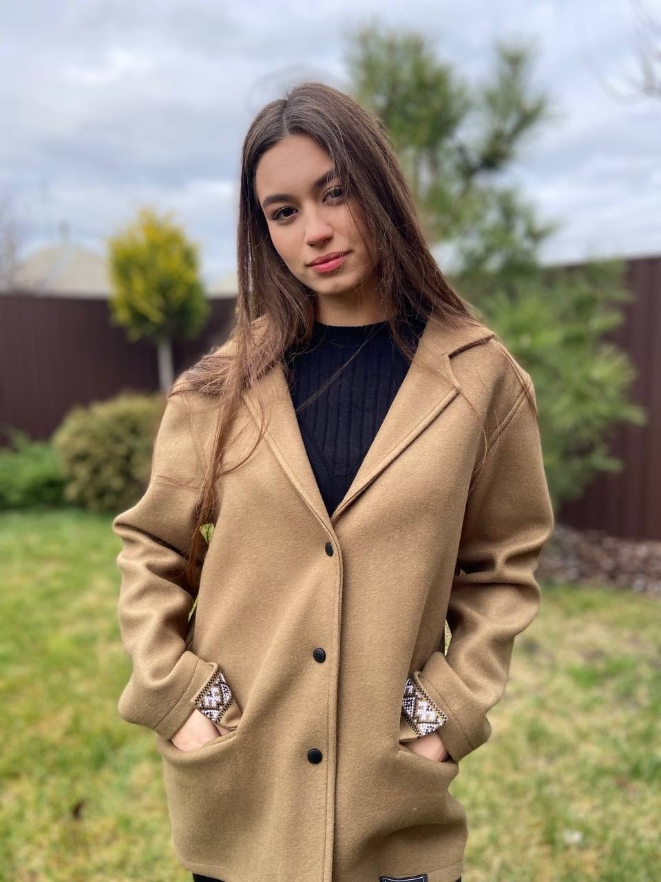 ウクライナ産カシミヤ100%の軽く暖かい最高品質なコートです。細部には、ウクライナの伝統的な幾何学な刺繍を全て手作業で施してあります。