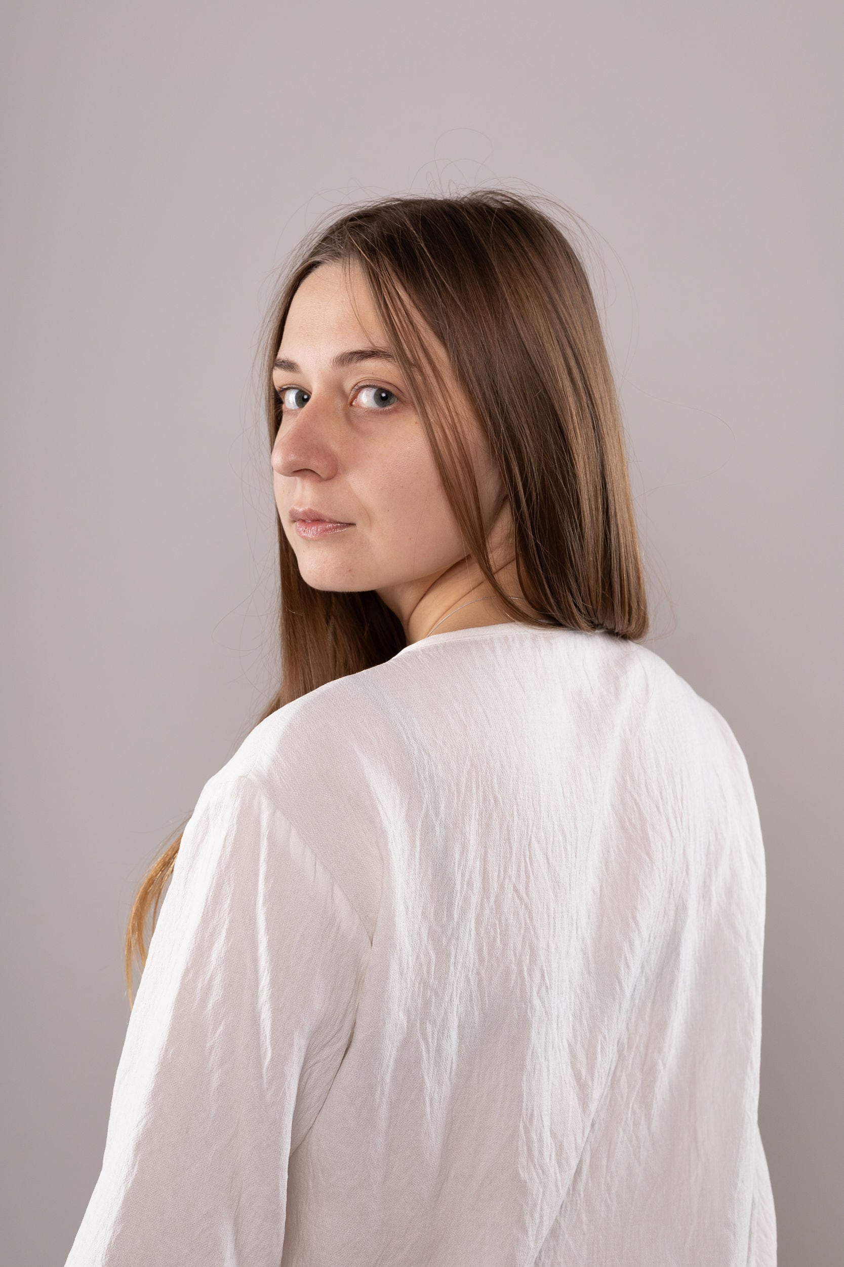 この作品は、ウクライナの伝統と美しさを象徴するヴィシヴァンカの刺繍を採用しています。過度な派手さを追求せず、日本の日常生活に自然に溶け込むデザインとなっております。しかし、それでいて洗練された高級感とカジュアルな雰囲気を両立させ、見る人を魅了する一着となっています。