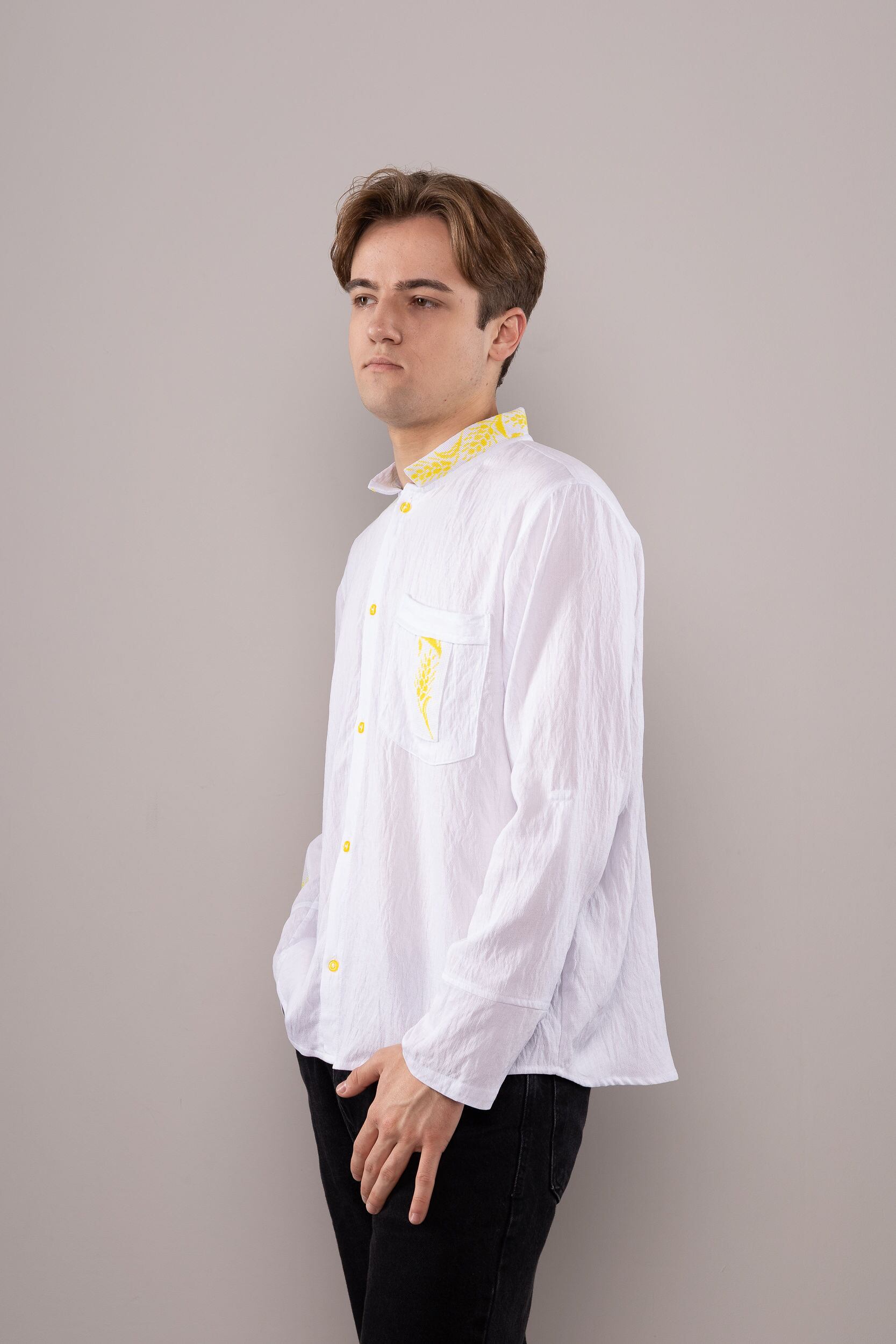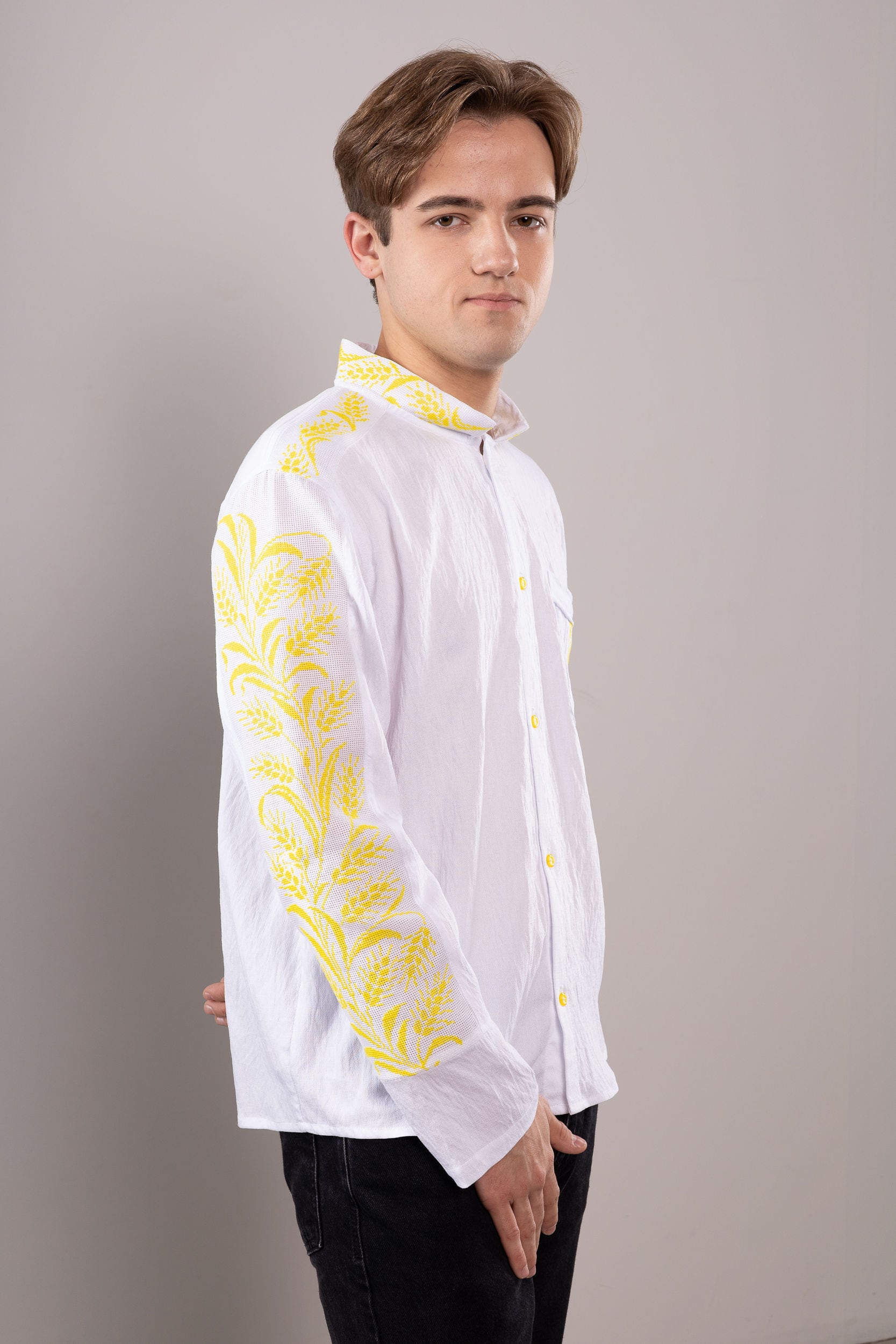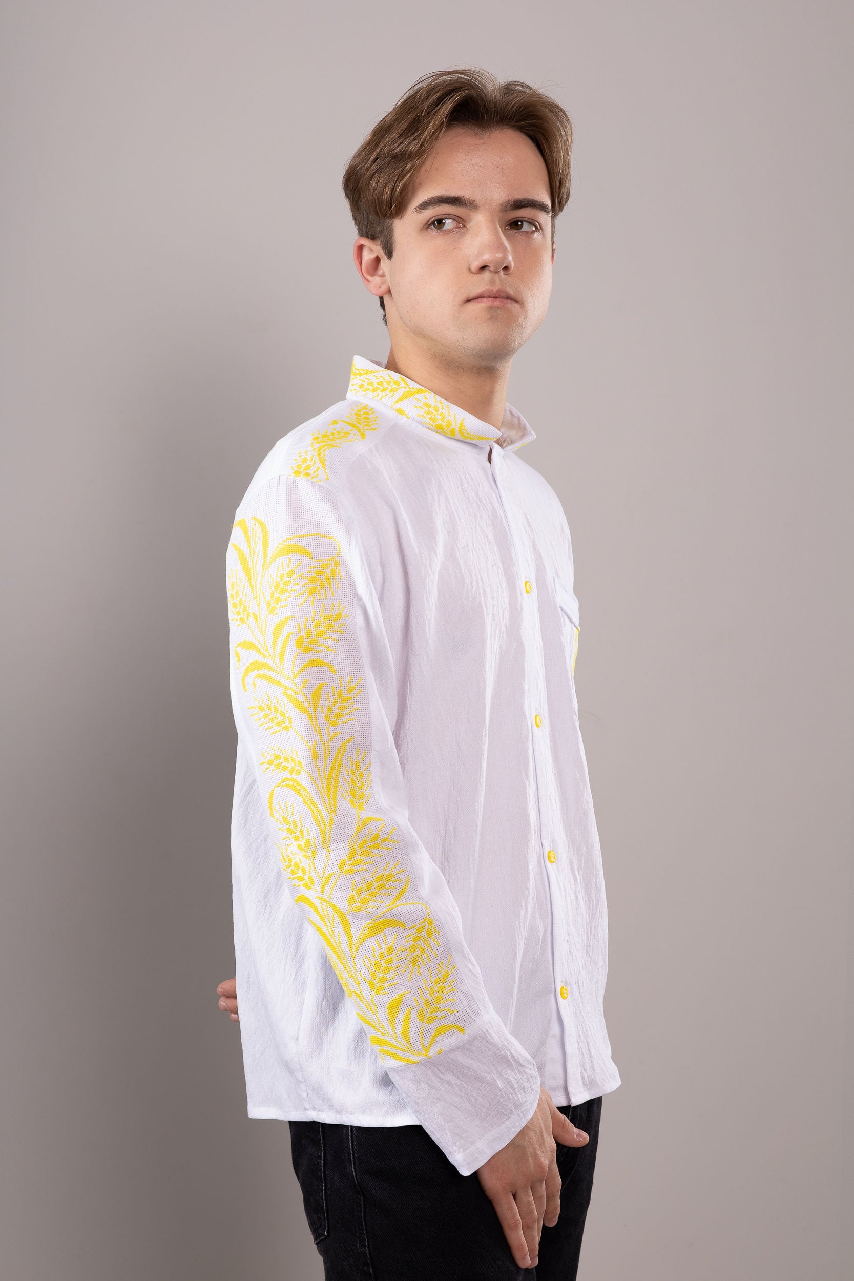 ウクライナ刺繍ヴィシヴァンカ(小麦) クロスステッチ手刺繍 M-Lサイズ メンズ