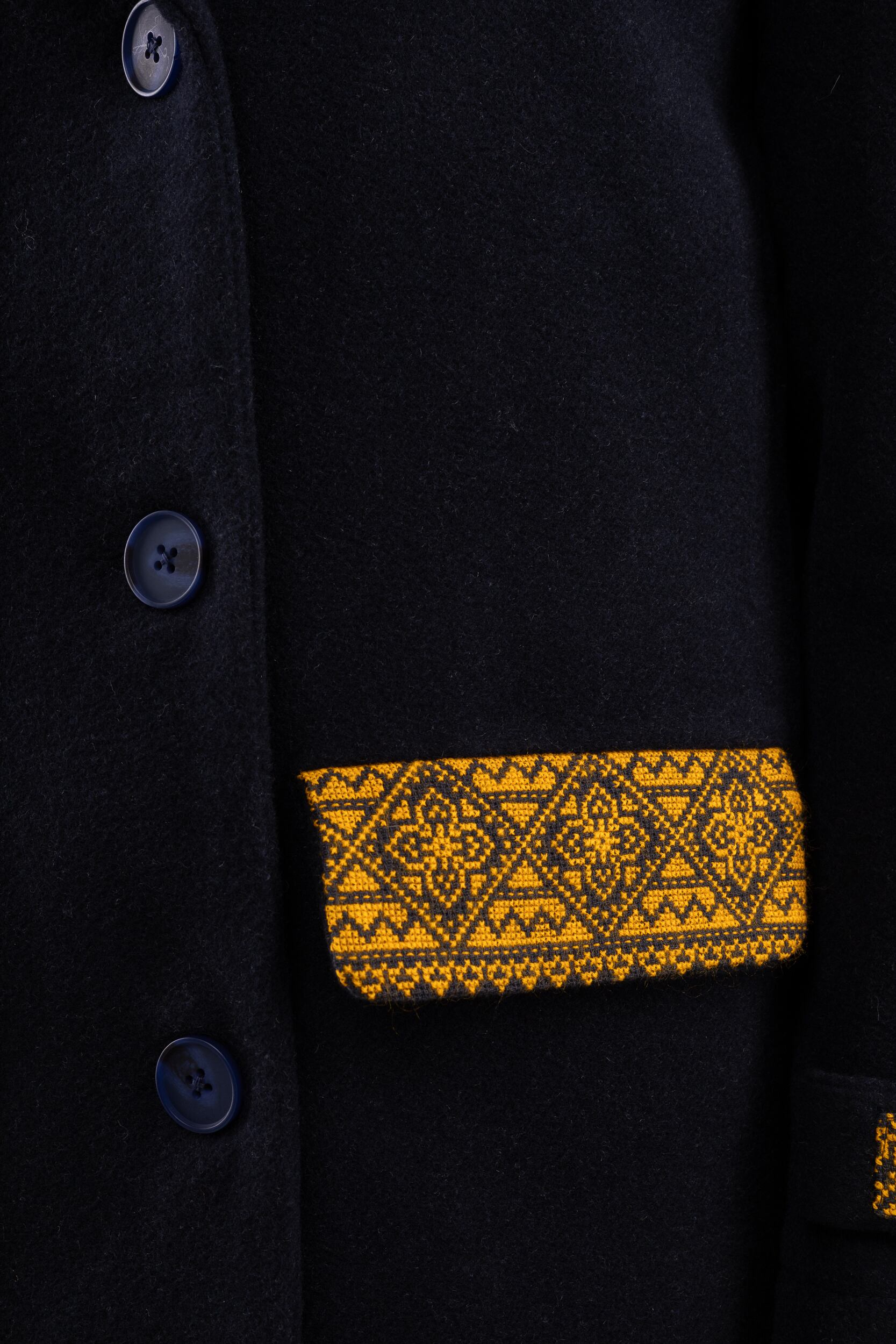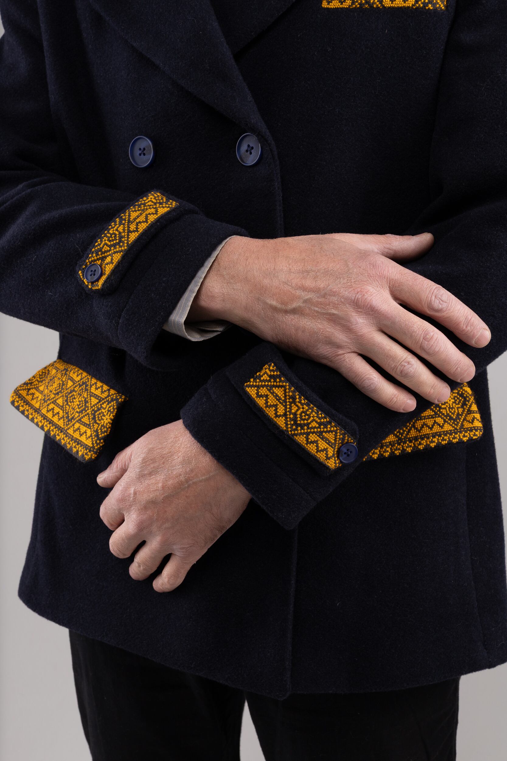 ウクライナの広大な西部山脈カルパティアにて作られたウール100%で作られたジャケットコートです。細部には丁寧に手作業で作られた伝統刺繍があしらってあります。