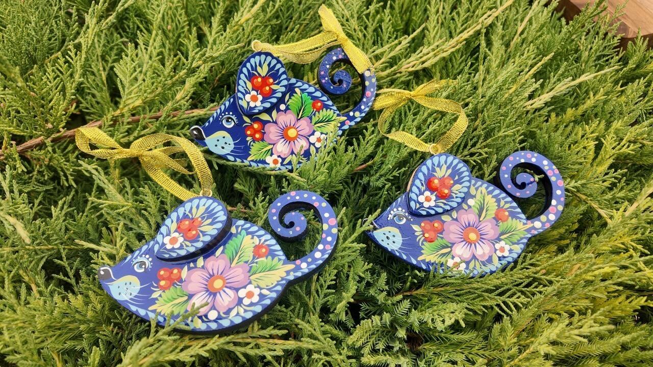 このデコレーションは、ウクライナの伝統的なペイント技法「ペトリキフカ塗り」を使用して作られています。ペトリキフカ塗りは、色とりどりの花や模様で知られ、長い歴史を持つウクライナの美術技法の一つです。