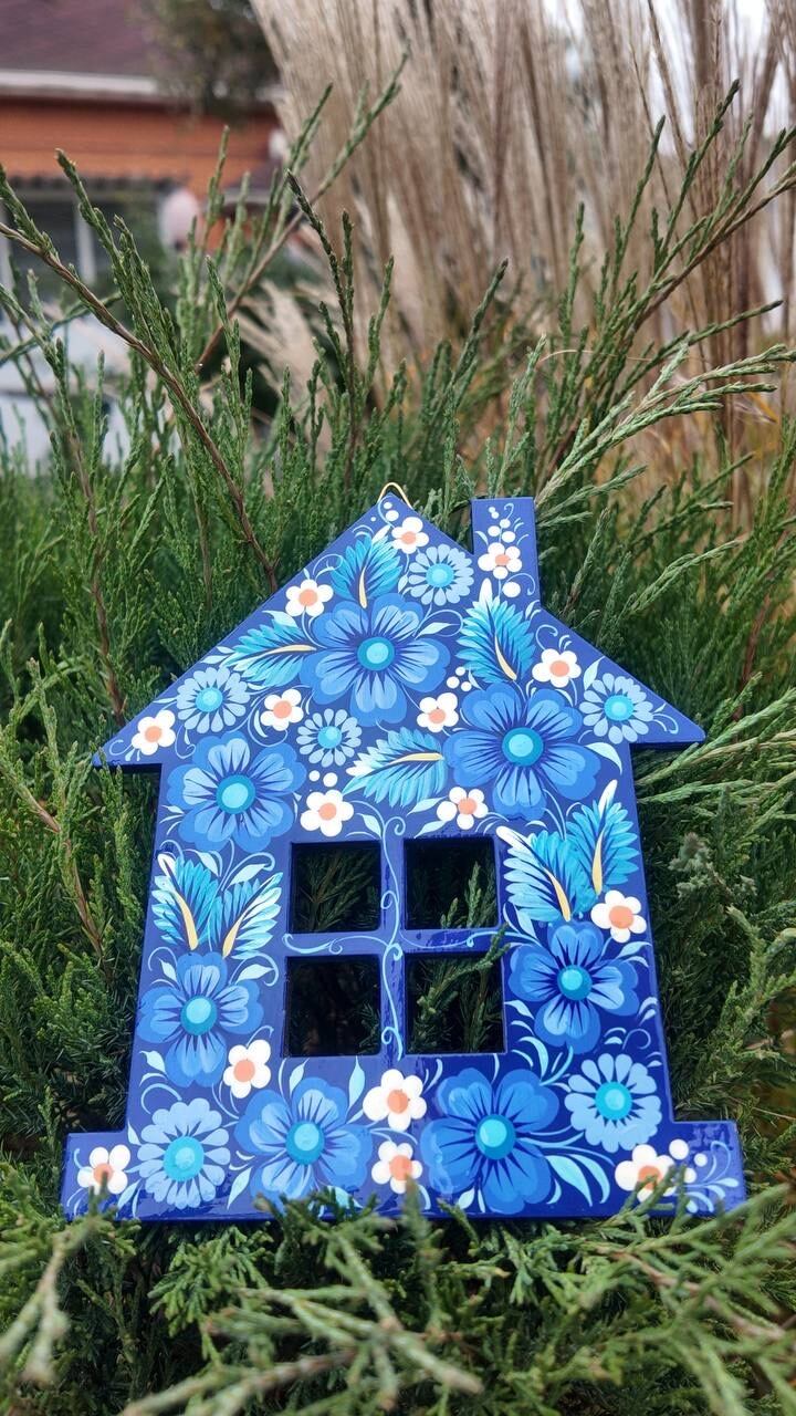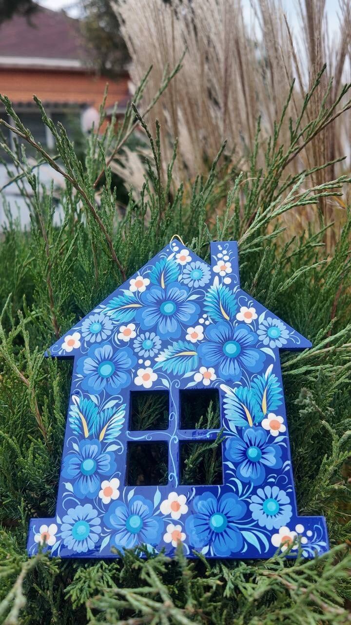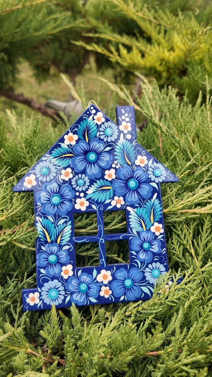 このデコレーションは、ウクライナの伝統的なペイント技法「ペトリキフカ塗り」を使用して作られています。ペトリキフカ塗りは、色とりどりの花や模様で知られ、長い歴史を持つウクライナの美術技法の一つです。