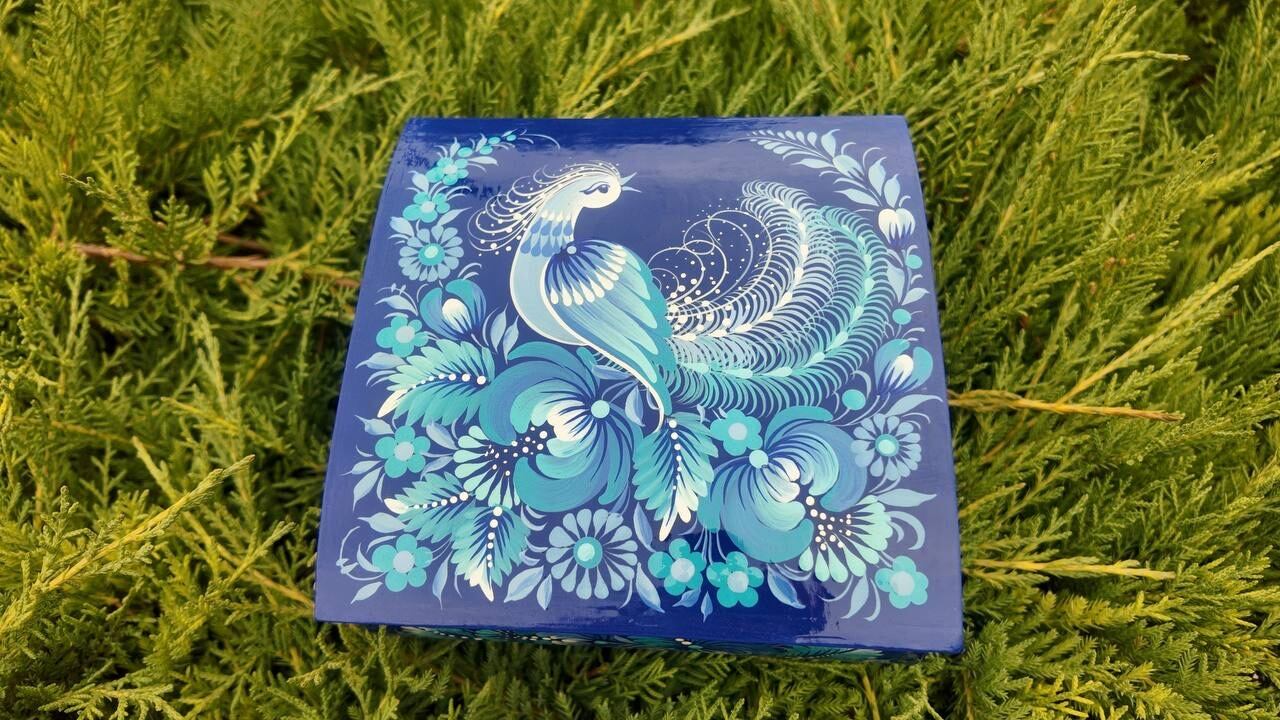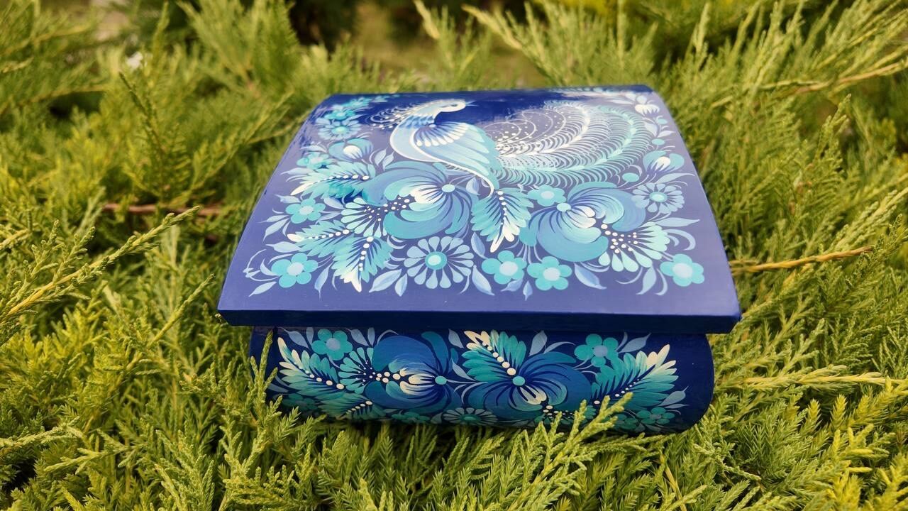 詳細:ペトリキフカ・ジュエリーボックスは、ウクライナの伝統的な芸術、ペトリキフカ塗りの精粋を表現する逸品です。この芸術は、ドニプロ近郊のペトリキフカ村にて代々受け継がれてきた名家の手によって生み出されています。