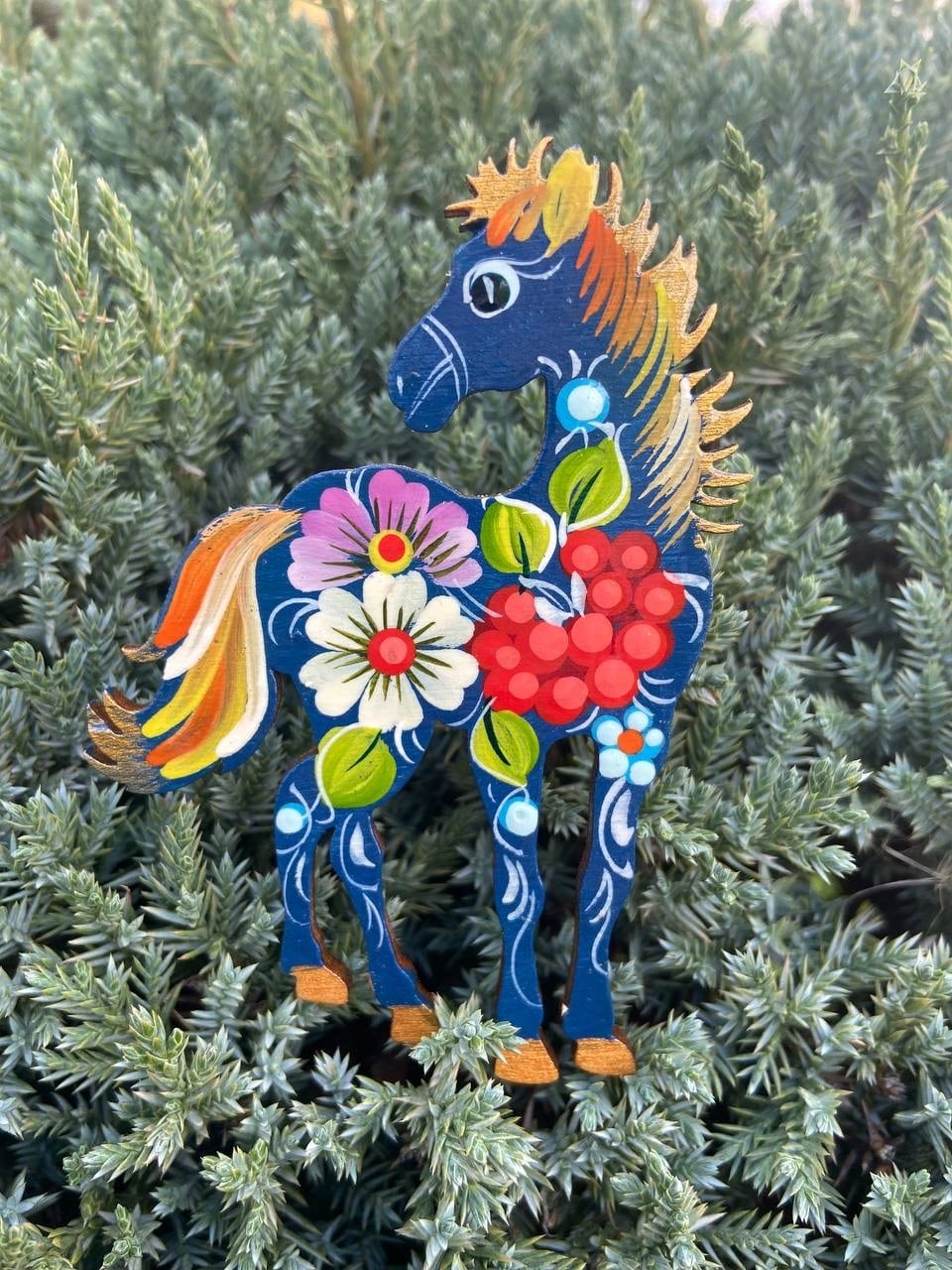 ペトリキフカ塗りのマグネット 2026/午年モデル 馬(Khomenko製作)