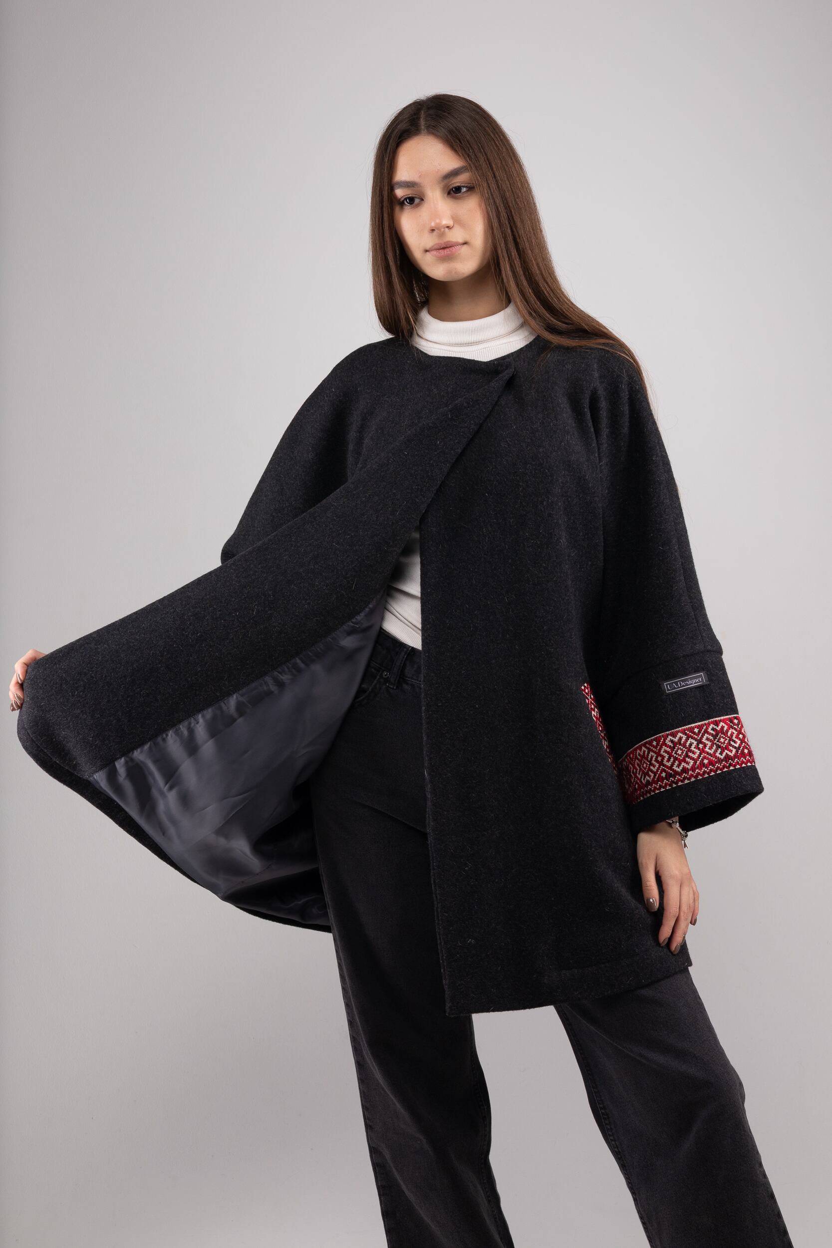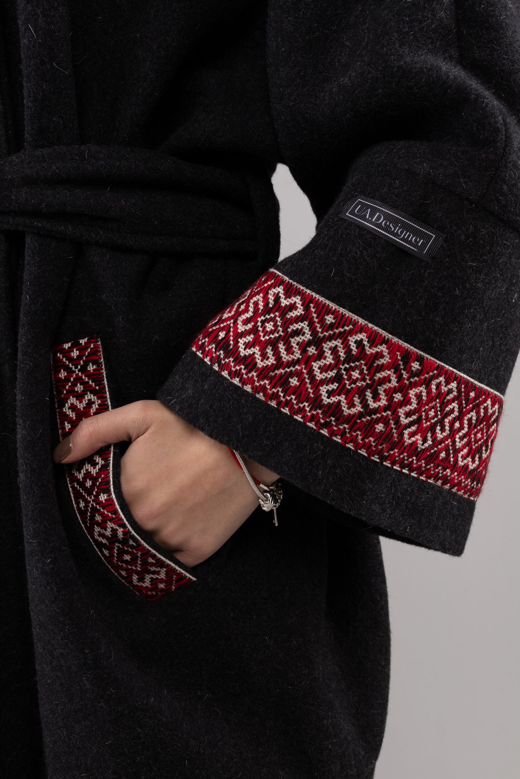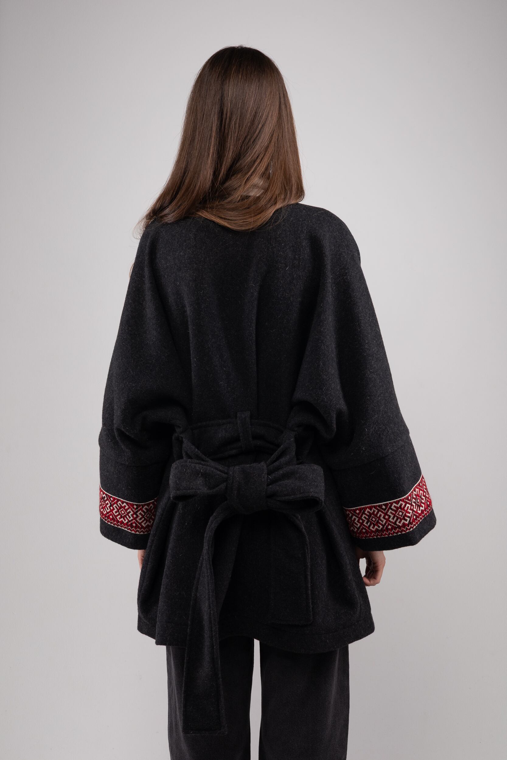ウクライナ産ウール100%の軽く暖かい最高品質なジャケットコートです。細部には、ウクライナの伝統的な幾何学な刺繍を全て手作業で施してあります。