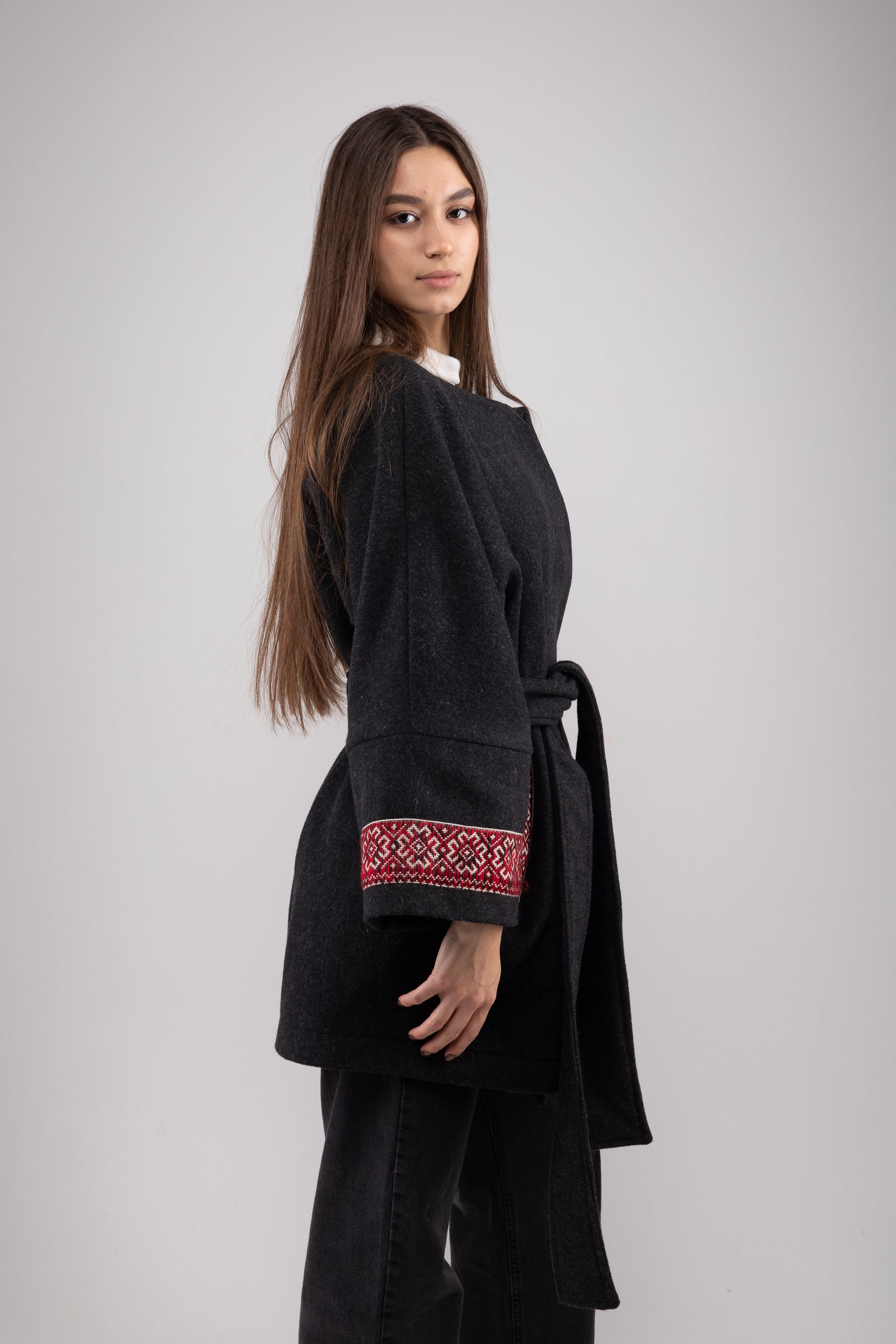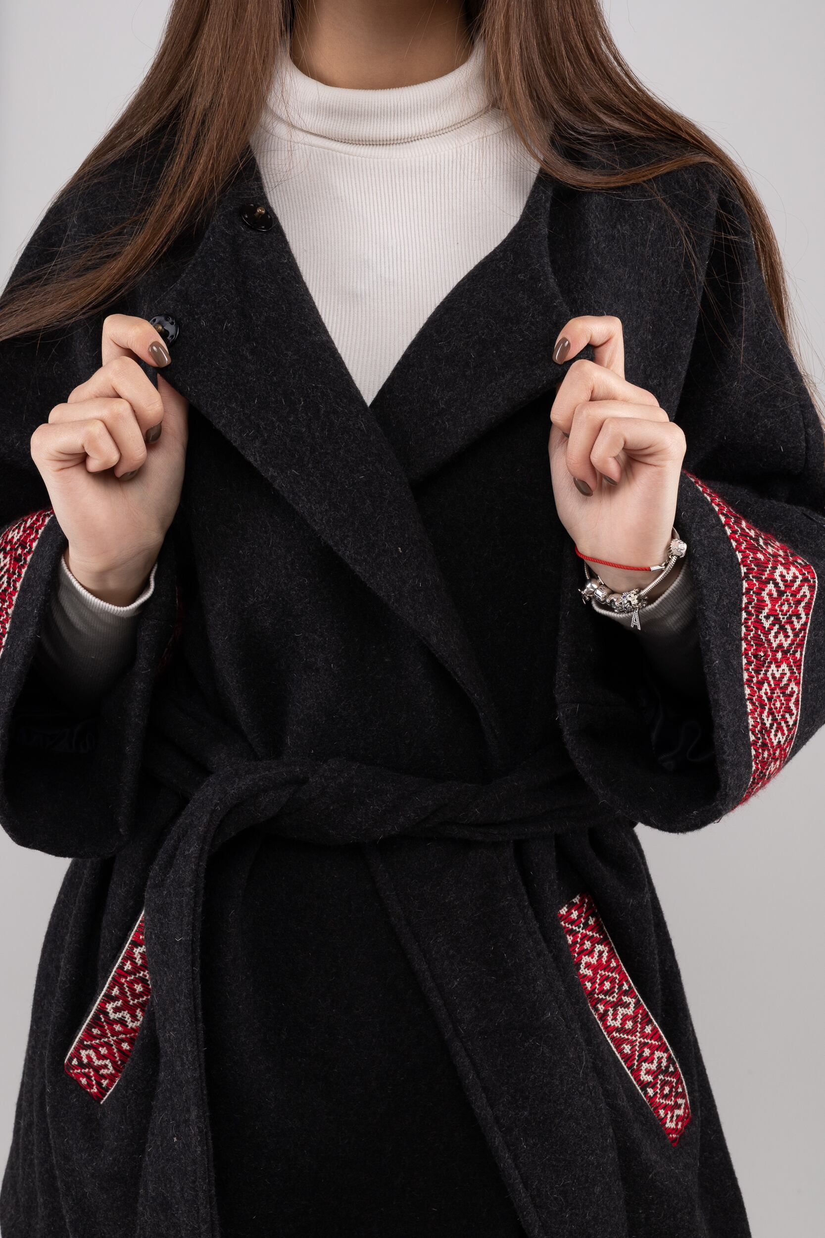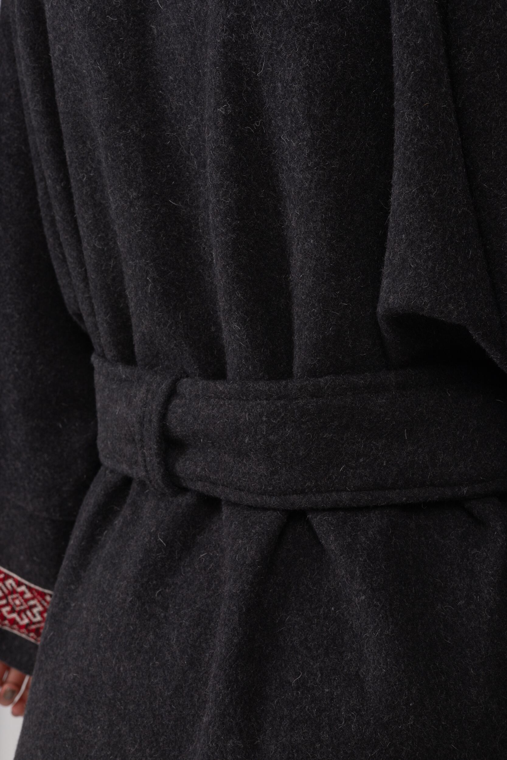 ウクライナ産ウール100%の軽く暖かい最高品質なジャケットコートです。細部には、ウクライナの伝統的な幾何学な刺繍を全て手作業で施してあります。