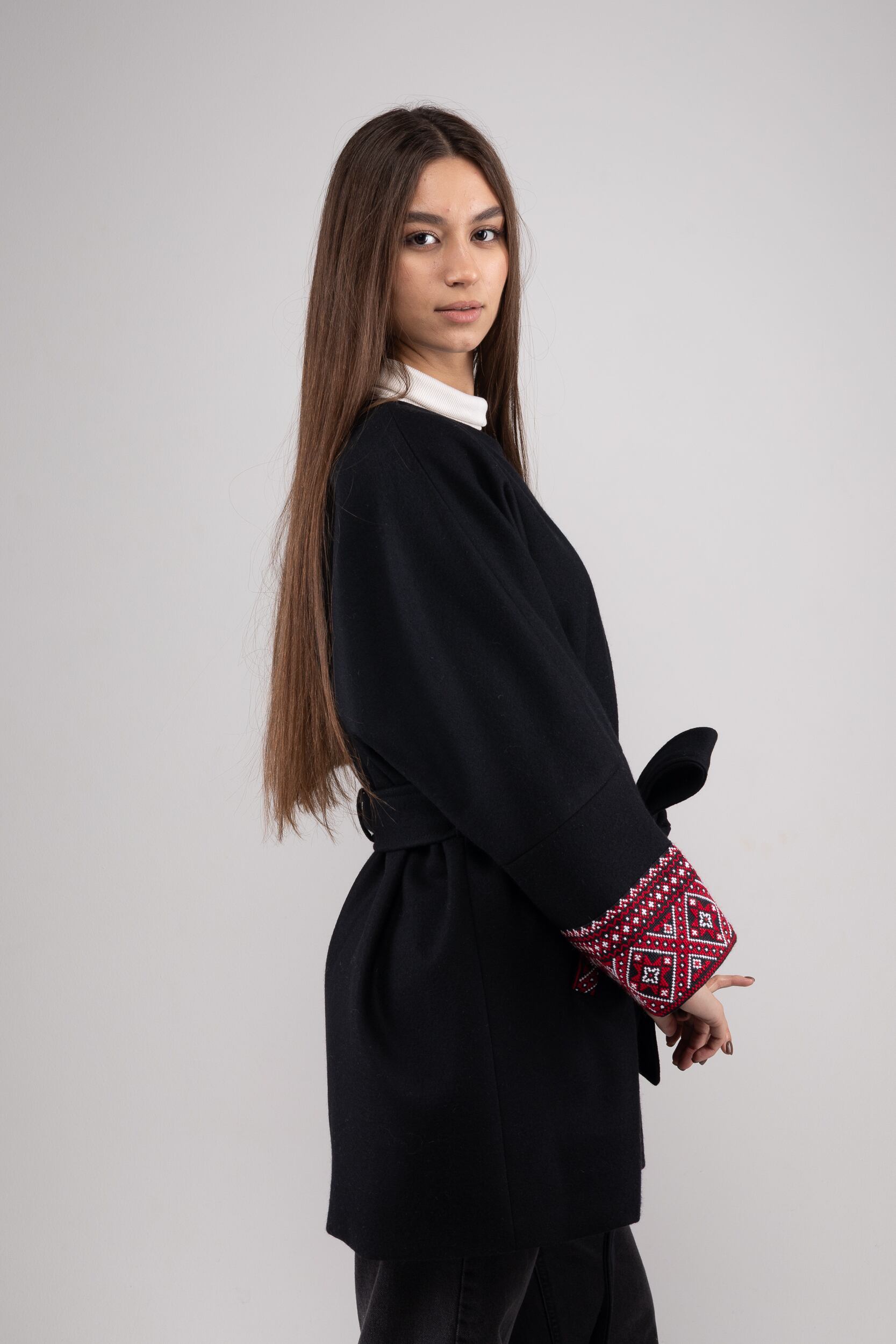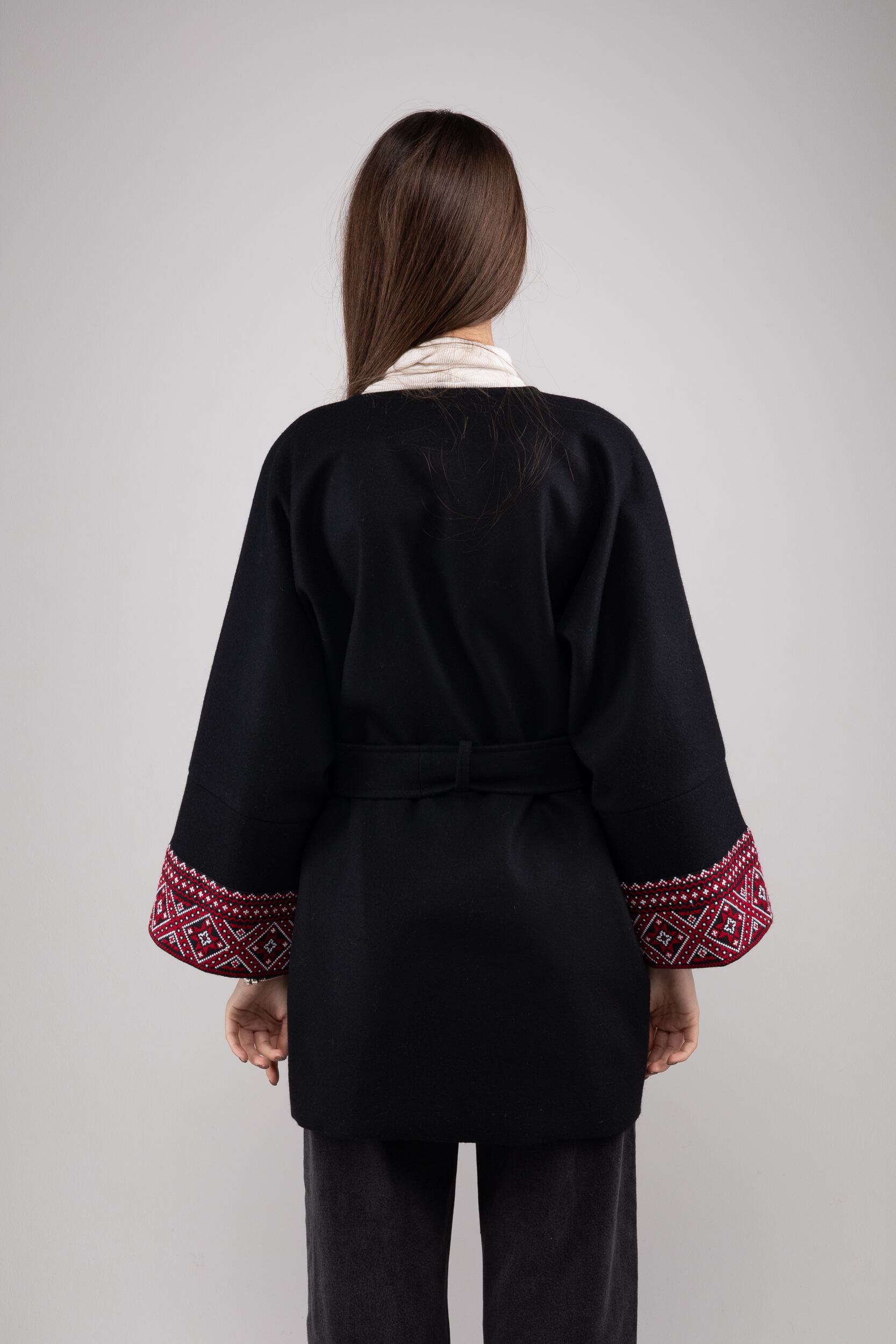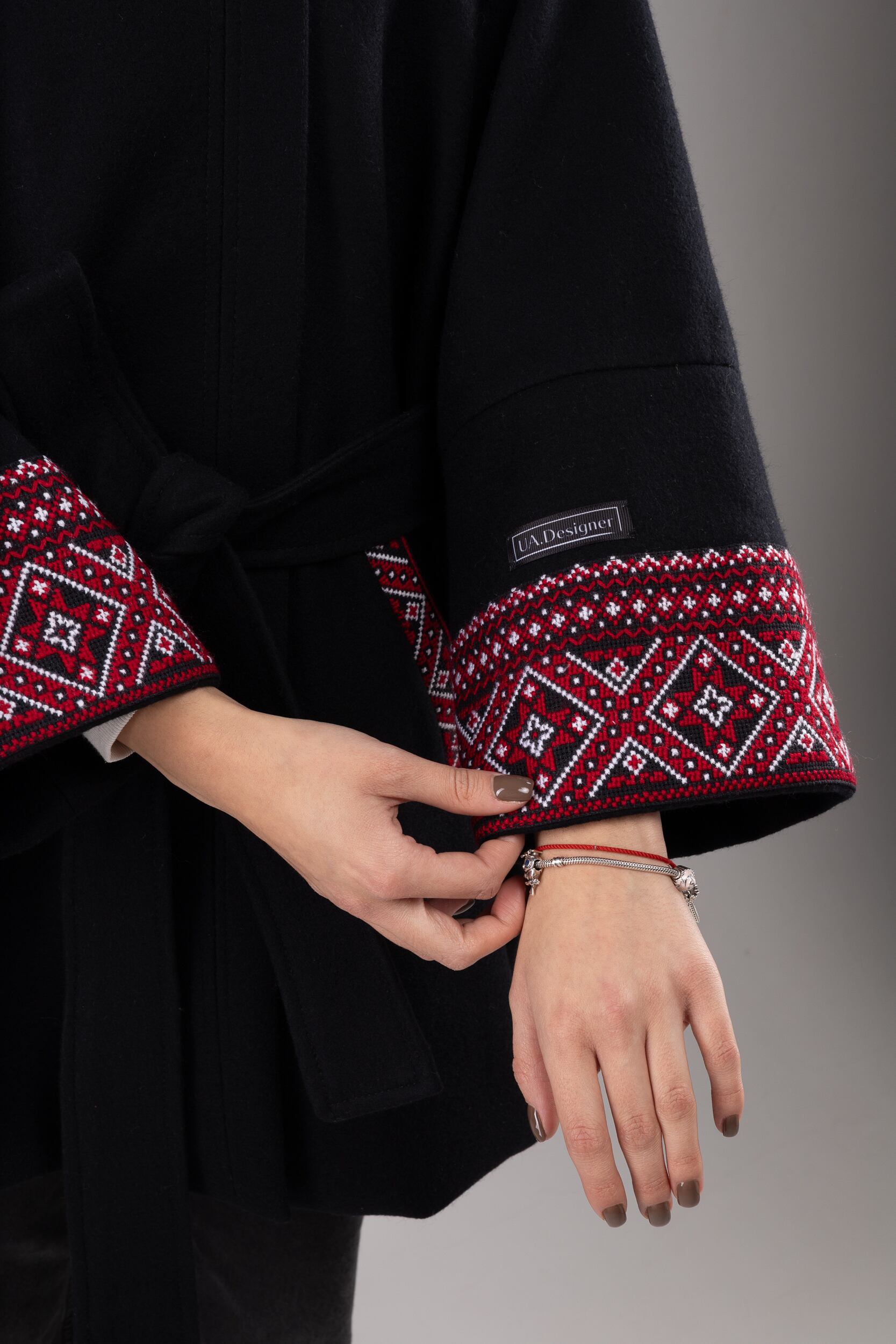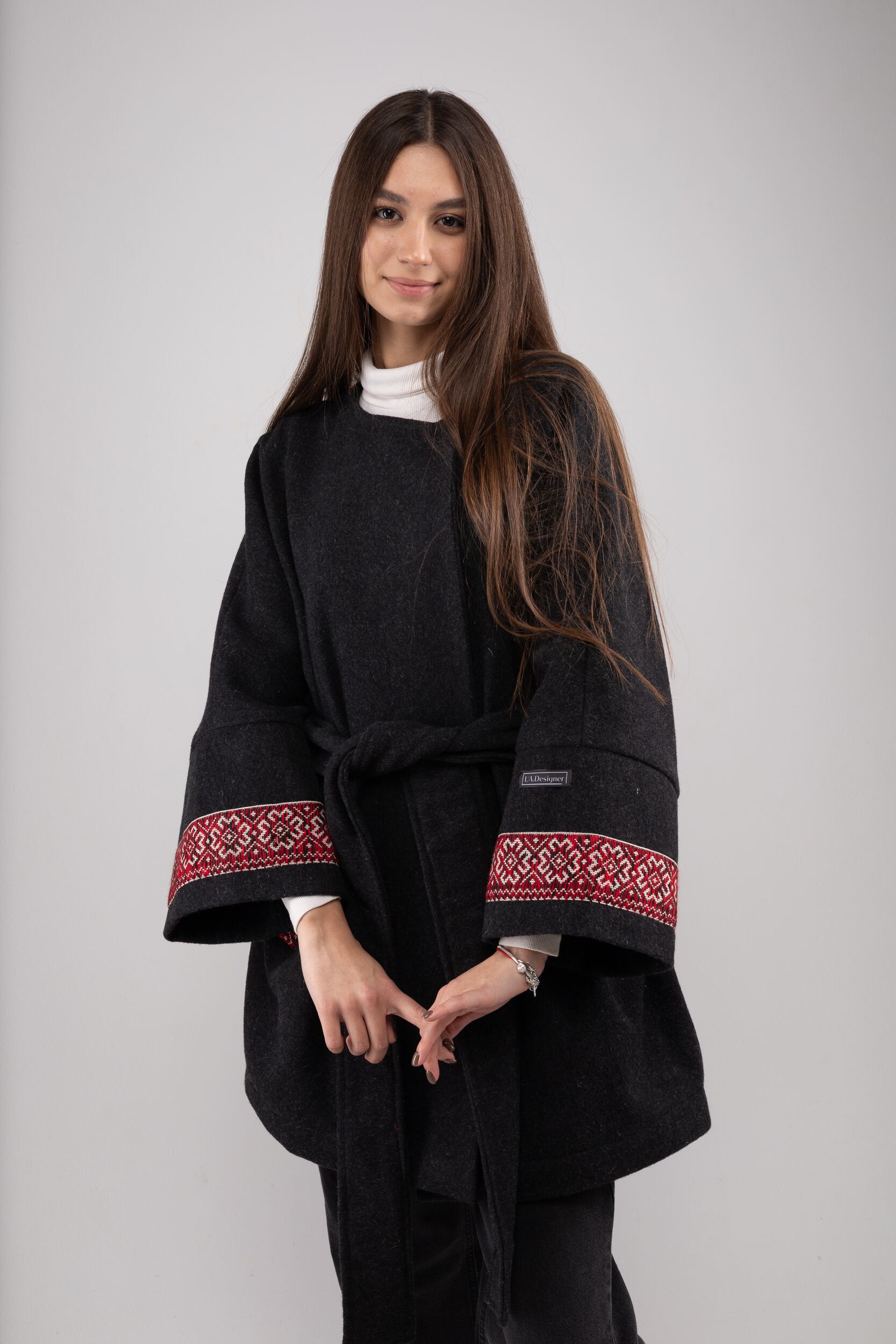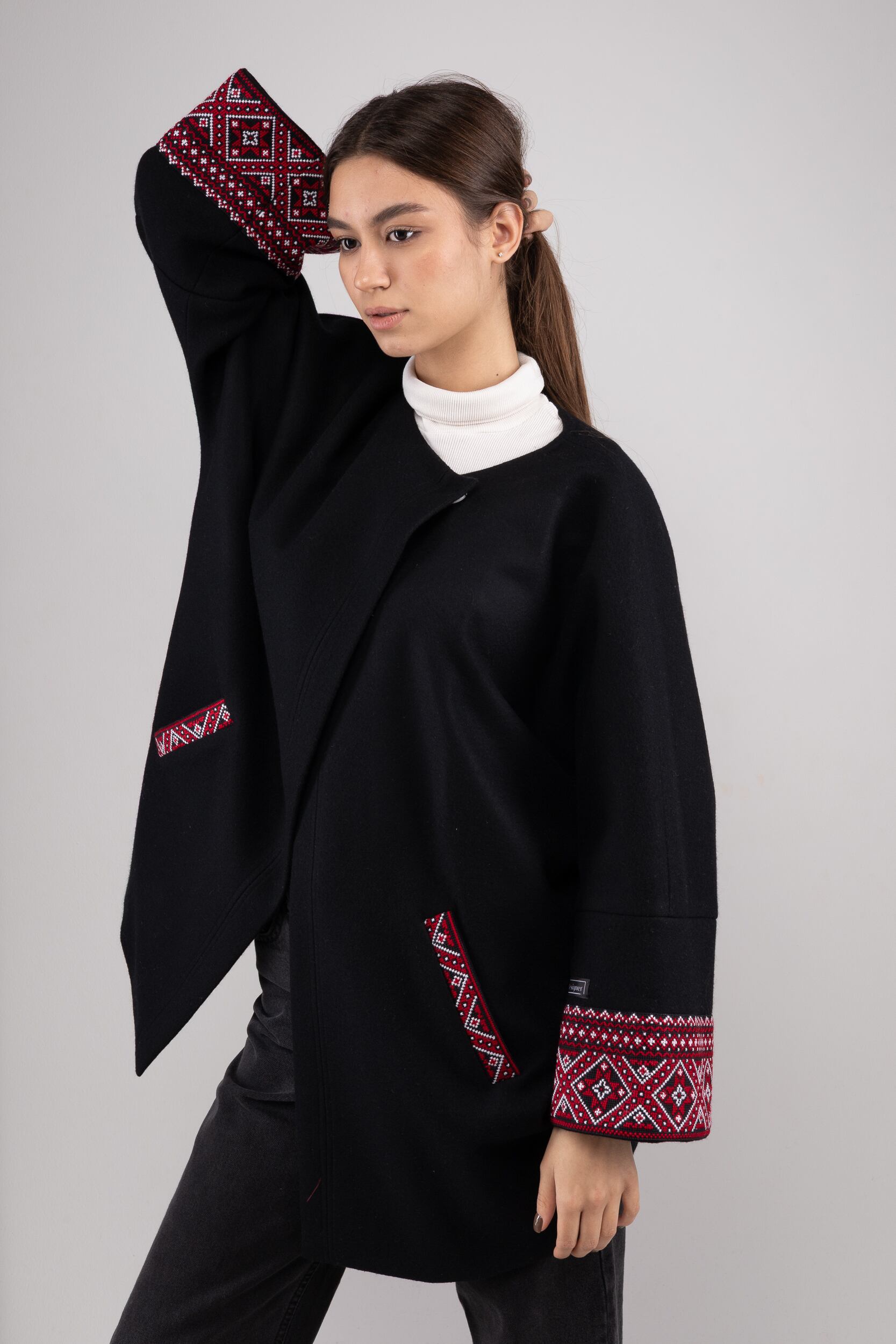 ウクライナ産ウール100%の軽く暖かい最高品質なジャケットコートです。細部には、ウクライナの伝統的な幾何学な刺繍を全て手作業で施してあります。