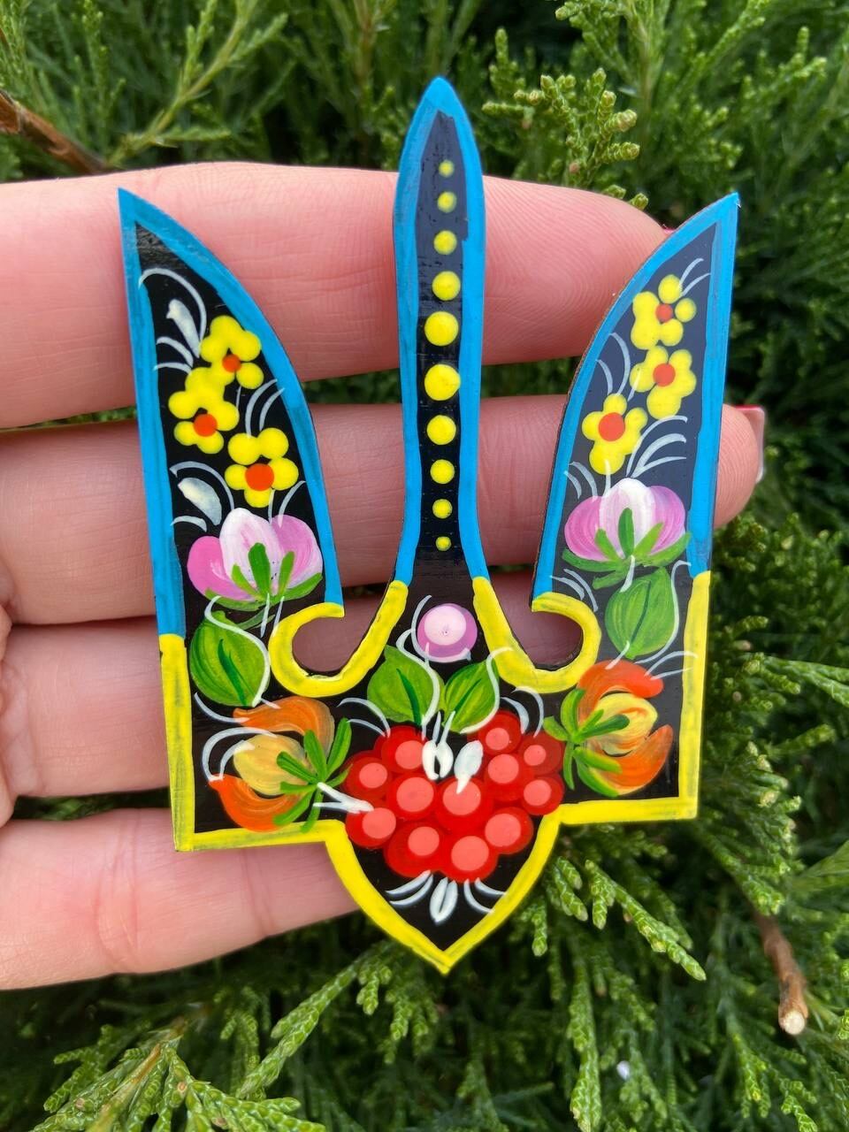 ペトリキフカ塗りのマグネット 国章トリズヴ(Khomenko製作)