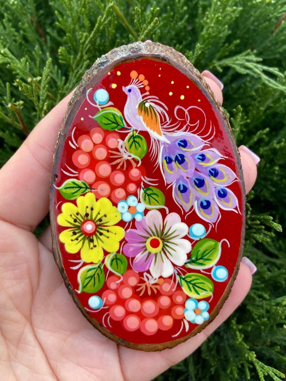ウクライナ・ドニプロのペトリキフカ村随一の巨匠により、一つ一つ丁寧に木彫りを行なった後、手描きされています。豊かな色彩と繊細なデザインが、冷蔵庫やオフィスのホワイトボードなど、日常の様々な場所を彩ります。毎日の生活の中で、ウクライナの伝統と美しさを感じることができるアイテムです。