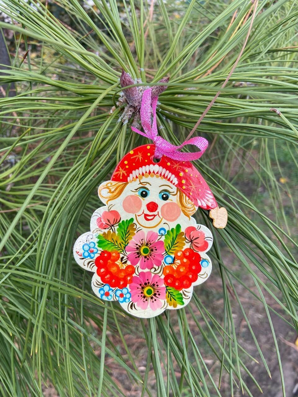 このデコレーションは、ウクライナの伝統的なペイント技法「ペトリキフカ塗り」を使用して作られています。ペトリキフカ塗りは、色とりどりの花や模様で知られ、長い歴史を持つウクライナの美術技法の一つです。