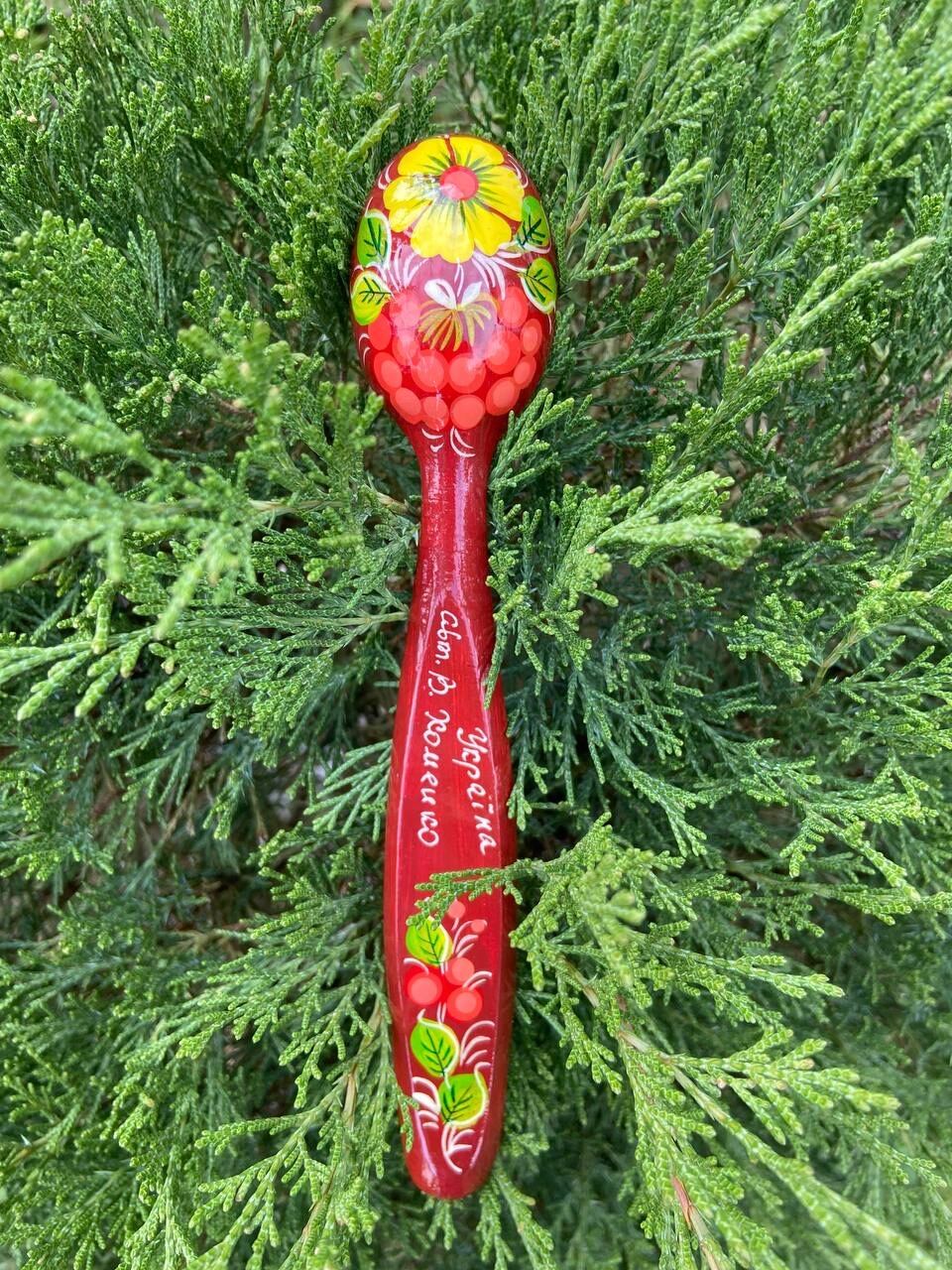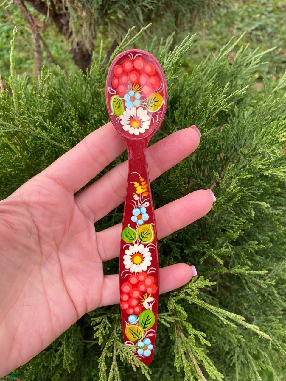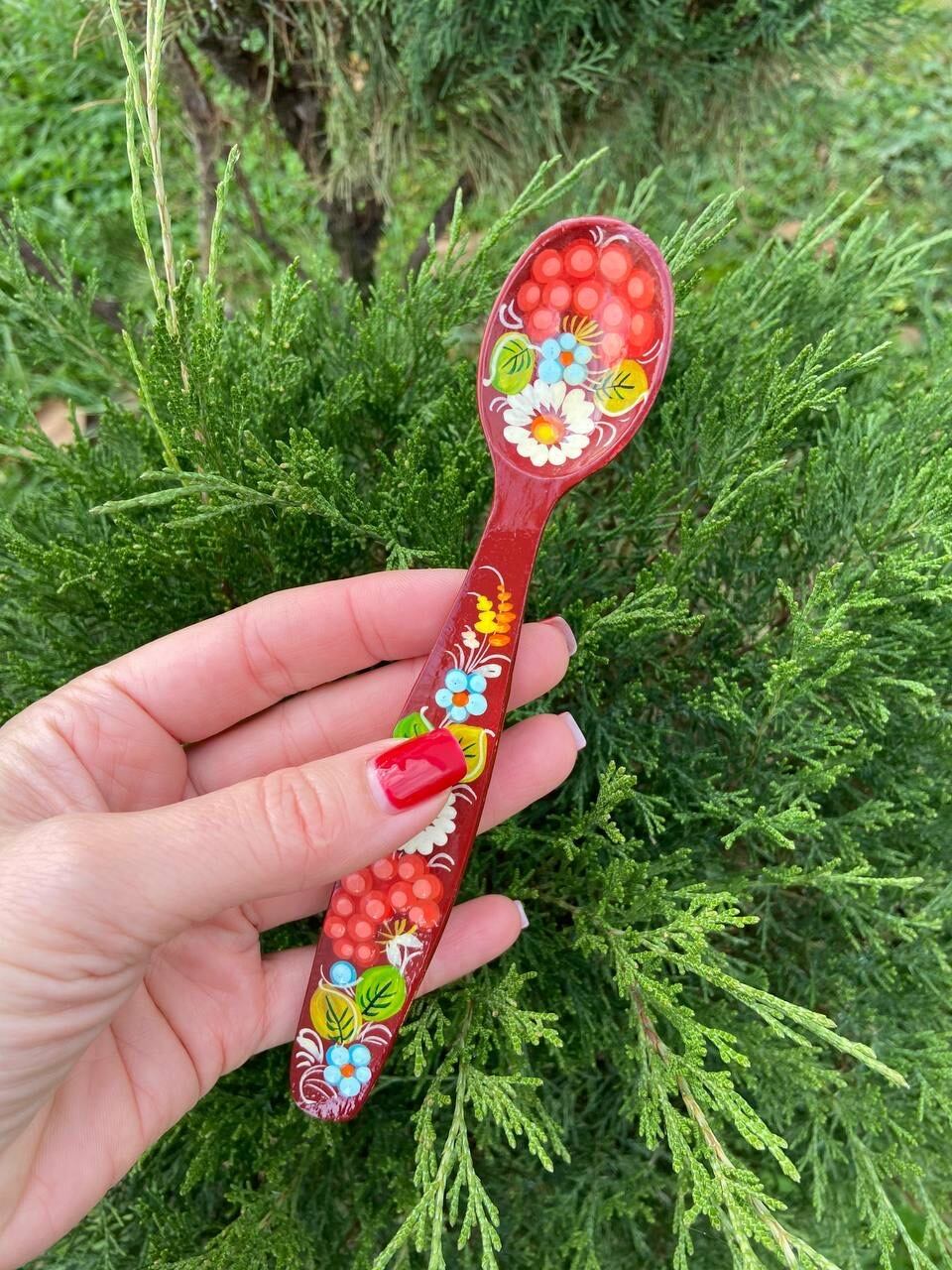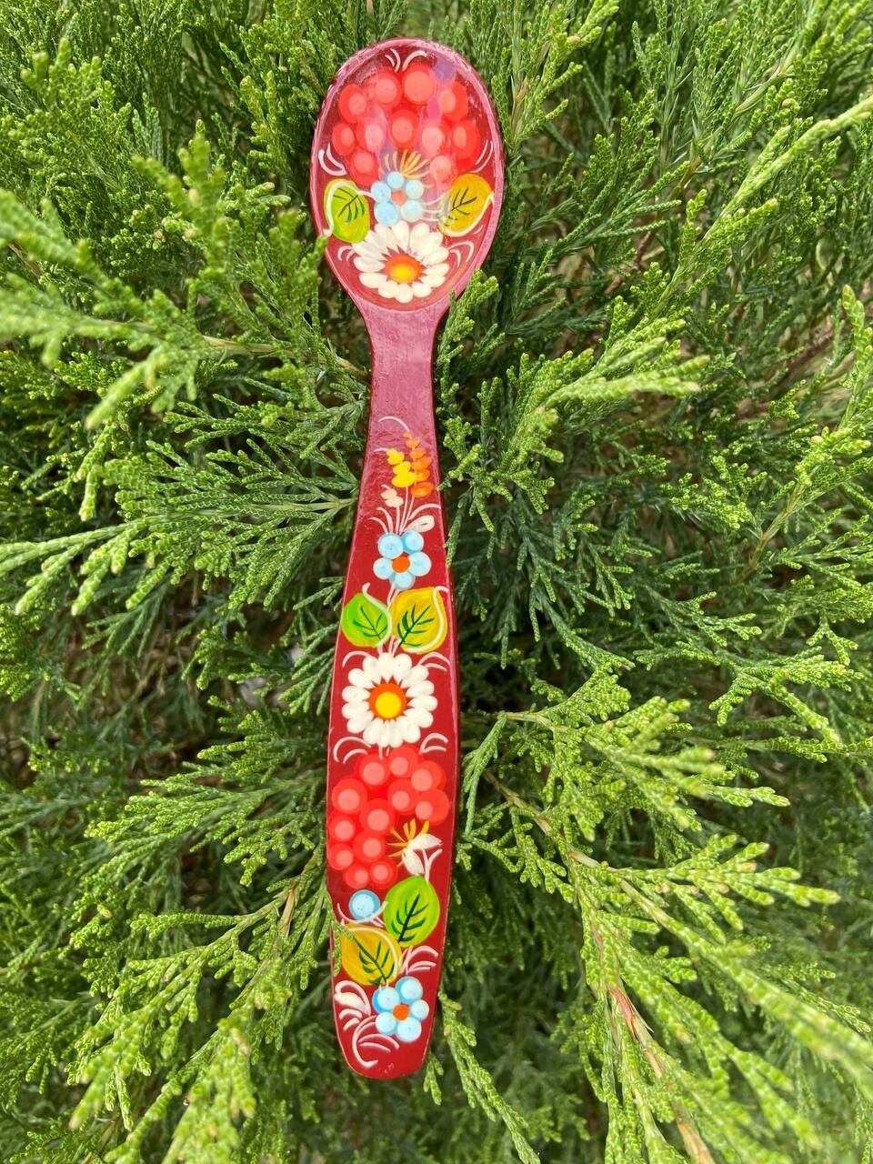 ホメンコ・ヴァレンティーナ・ペトリーヴナが手掛けるこれらのスプーンは、ウクライナの伝統的なペトリキフカ塗り技法の傑作です。