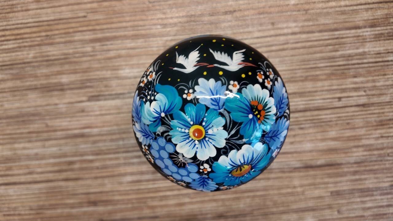 詳細:ペトリキフカ・ジュエリーボックスは、ウクライナの伝統的な芸術、ペトリキフカ塗りの精粋を表現する逸品です。この芸術は、ドニプロ近郊のペトリキフカ村にて代々受け継がれてきたペトリーヴナ家の手によって生み出されています。ホメンコ・ヴァレンティーナ・ペトリーヴナは、その伝統を受け継ぐ現代の名工です。