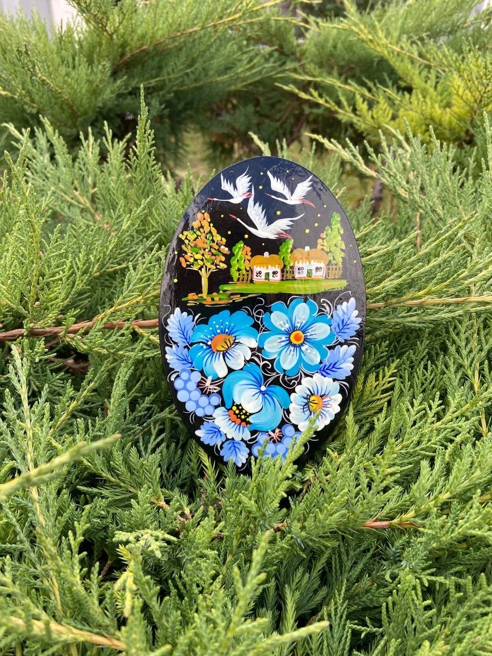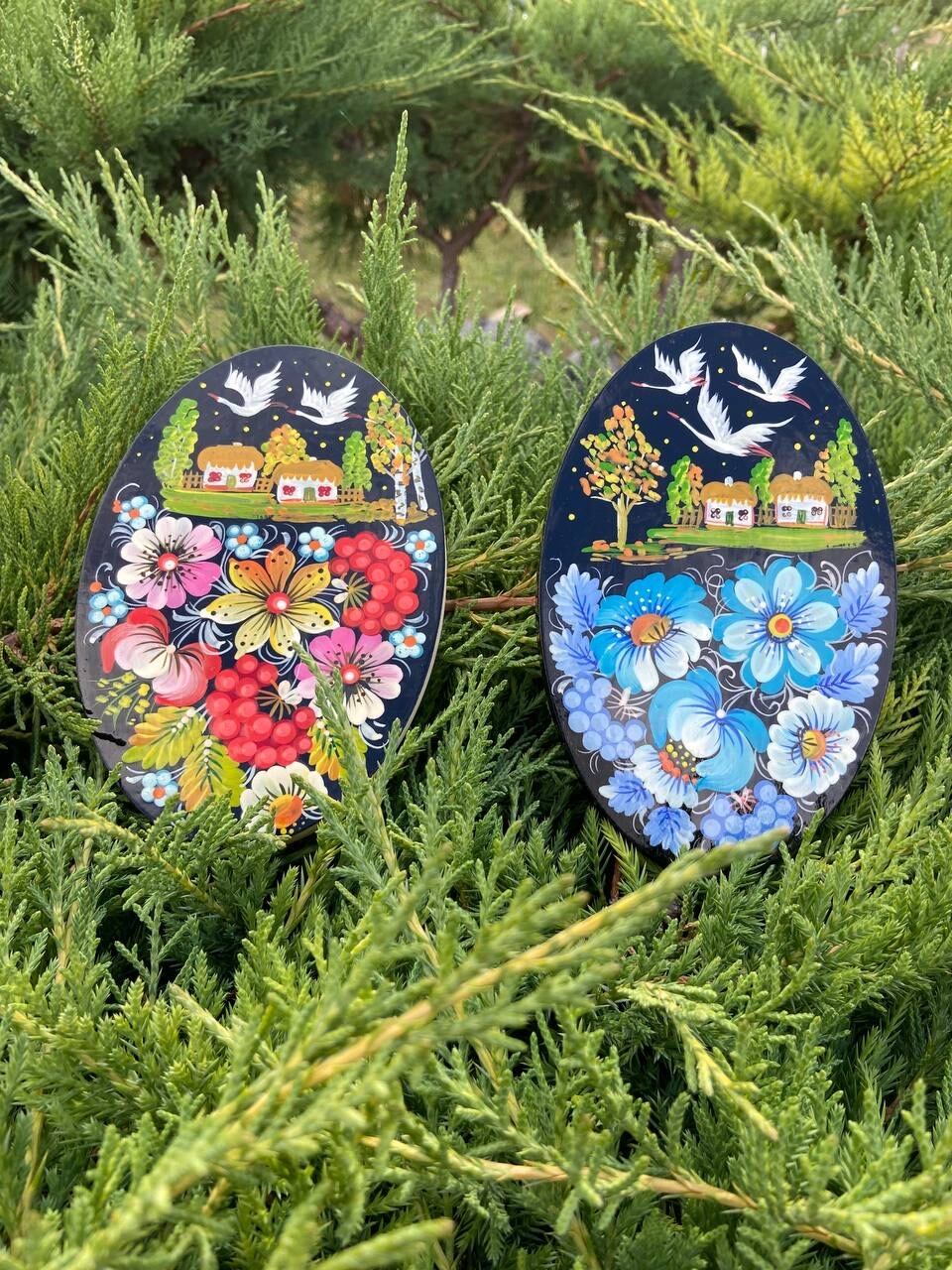 ウクライナ・ドニプロのペトリキフカ村随一の巨匠により、一つ一つ丁寧に木彫りを行なった後、手描きされています。豊かな色彩と繊細なデザインが、冷蔵庫やオフィスのホワイトボードなど、日常の様々な場所を彩ります。毎日の生活の中で、ウクライナの伝統と美しさを感じることができるアイテムです。