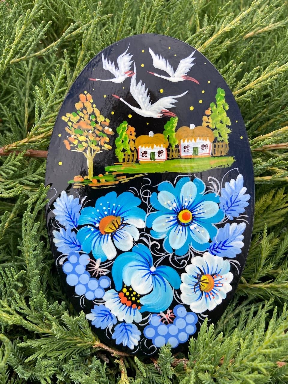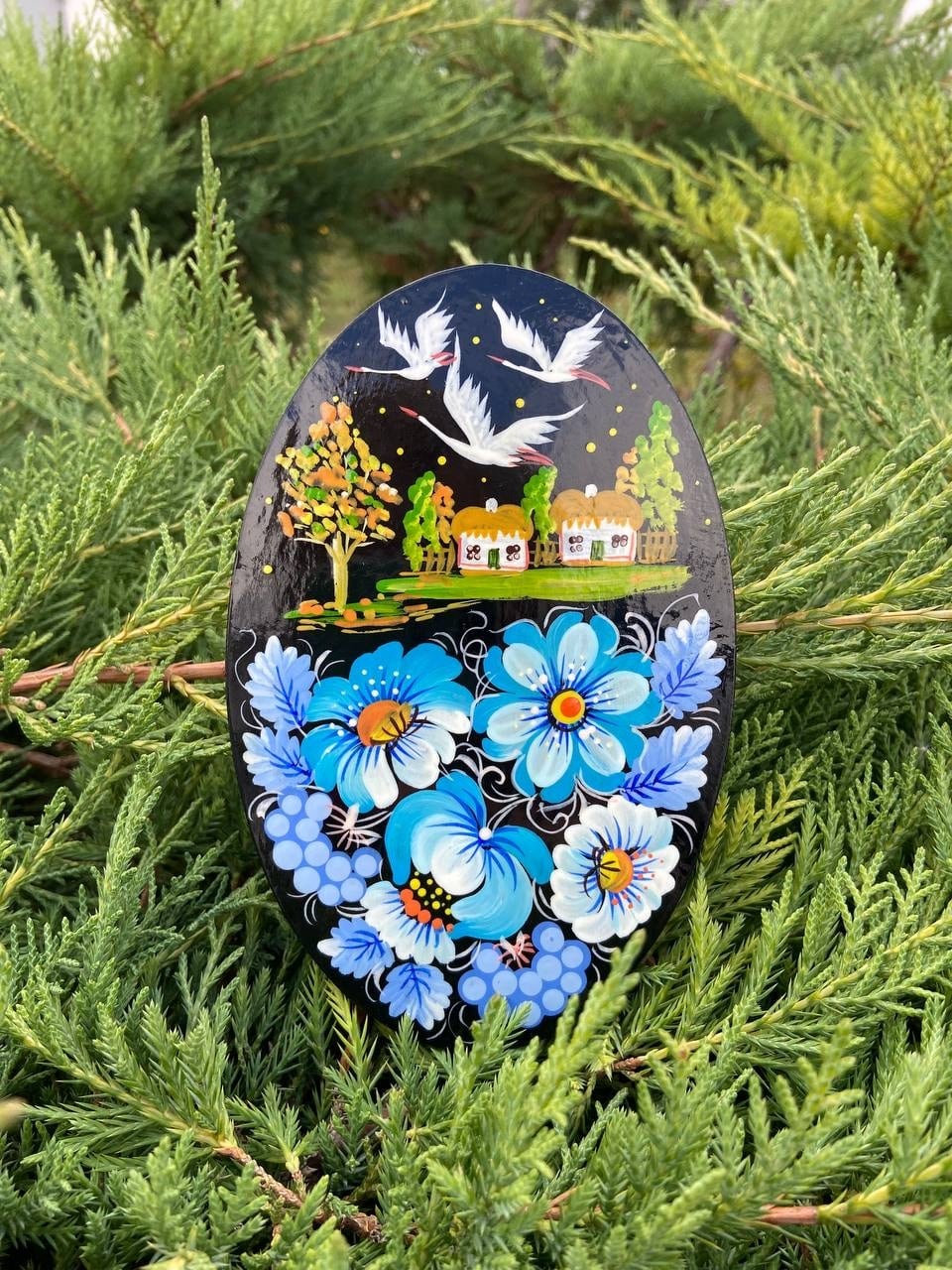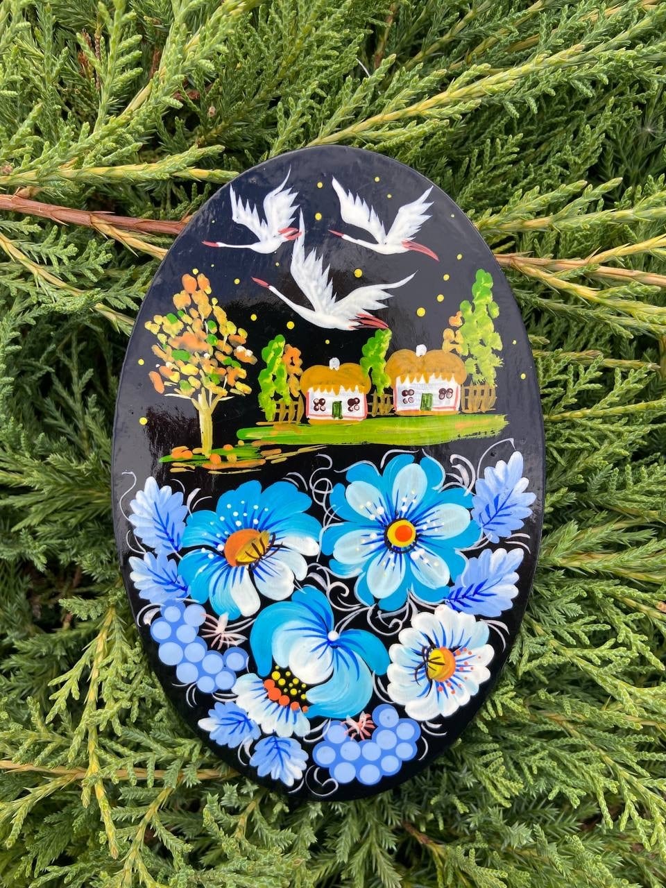 また、このペトリキフカ塗りは、2013年にユネスコの無形文化遺産に登録されました。これにより、この伝統的な技術の価値と重要性が国際的に認められることとなりました。また、作品はウクライナ随一の絵師Valentyna Petrivna Khomenkoによる作品で裏面にはサインが施されています。