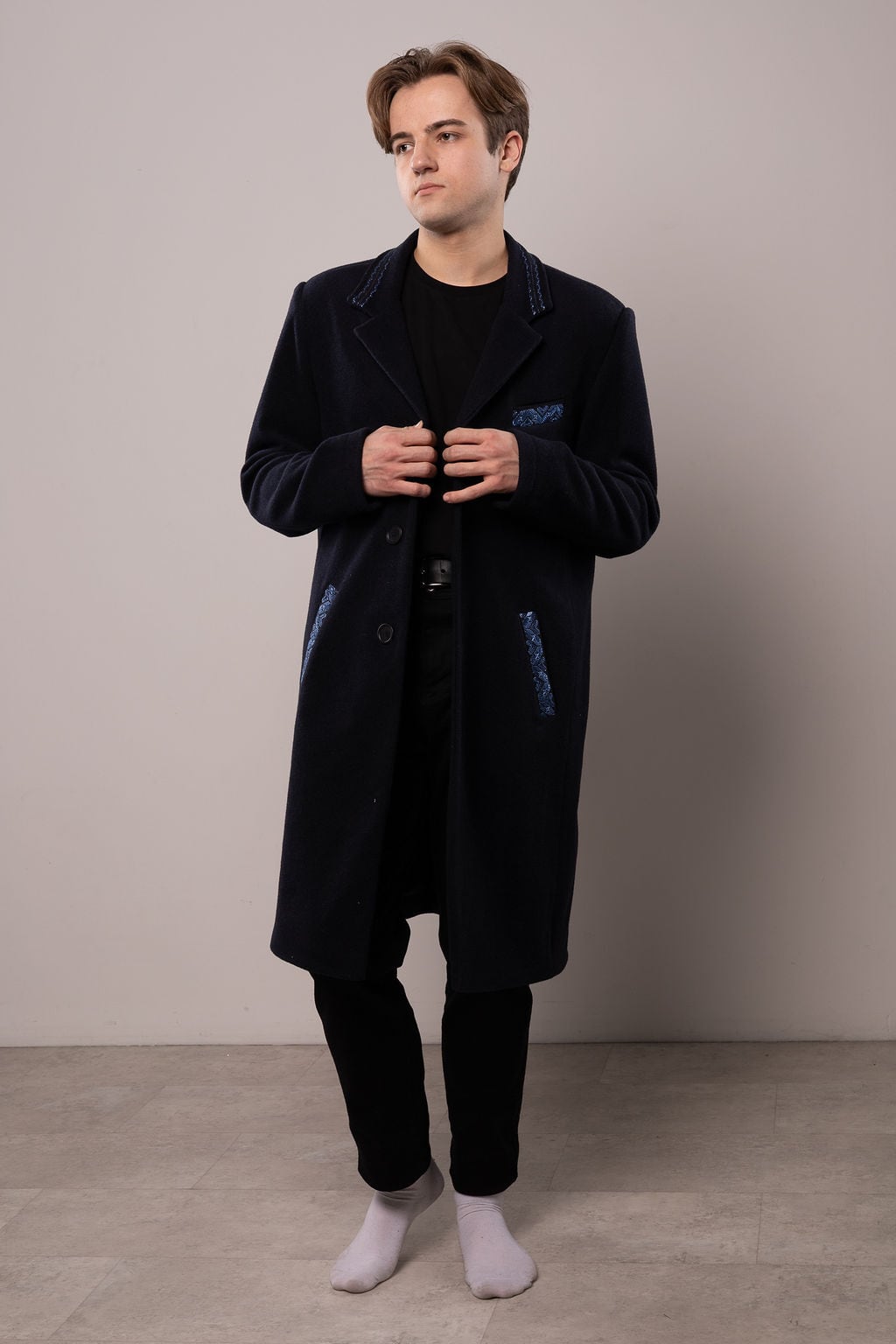ウクライナ刺繍ロングコート 手縫い プレミアムウール