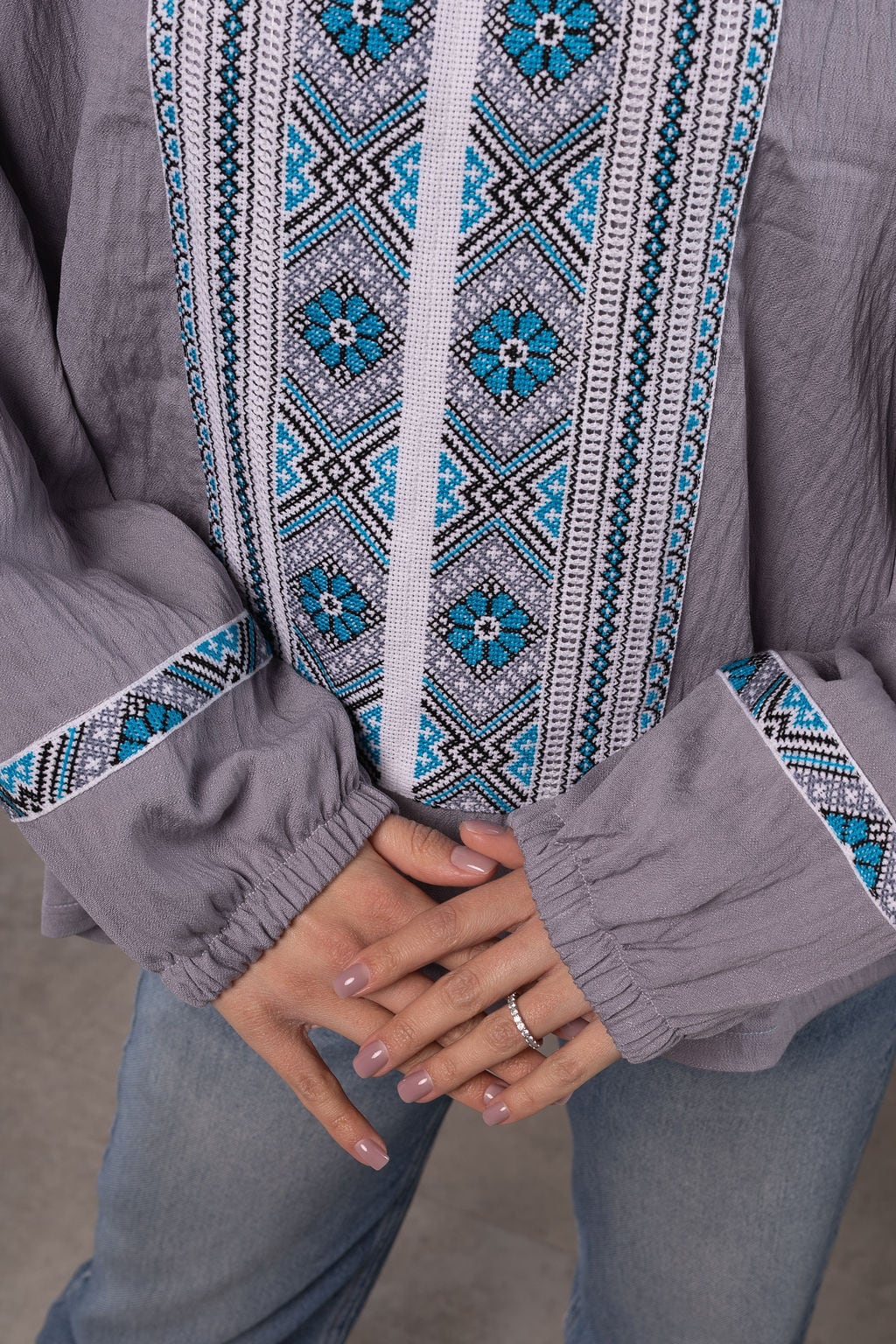 この作品は、ウクライナの伝統と美しさを象徴するヴィシヴァンカの刺繍を採用しています。過度な派手さを追求せず、日本の日常生活に自然に溶け込むデザインとなっております。しかし、それでいて洗練された高級感とカジュアルな雰囲気を両立させ、見る人を魅了する一着となっています。