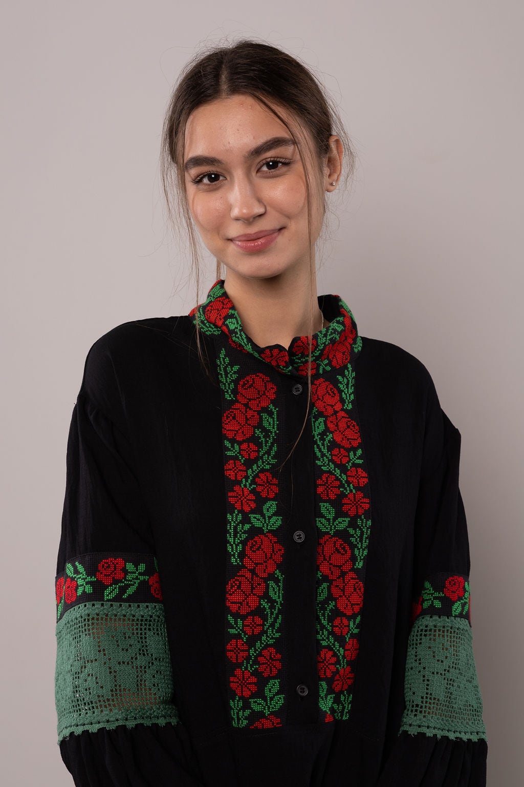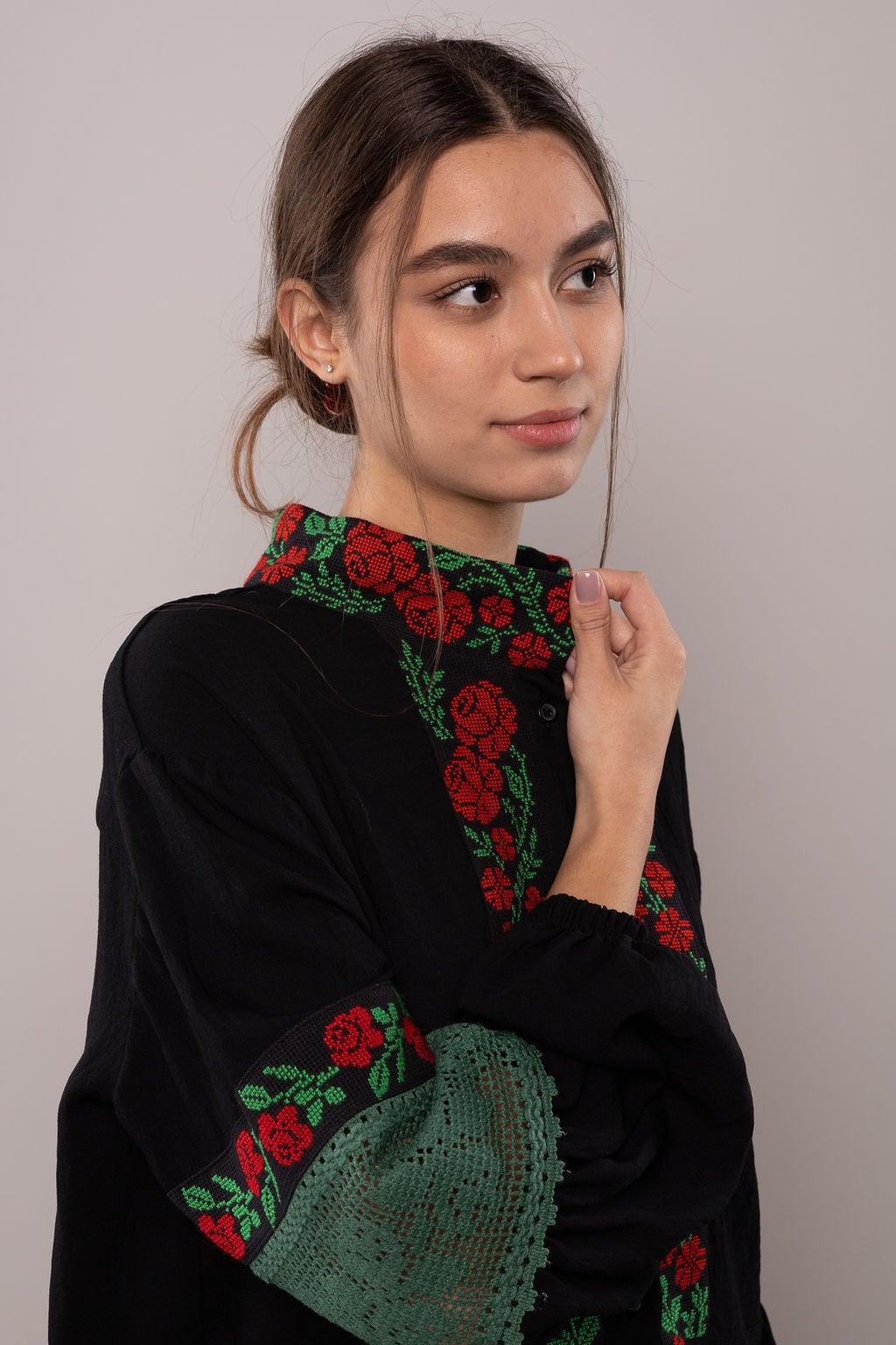 この作品は、ウクライナの伝統と美しさを象徴するヴィシヴァンカの刺繍を採用しています。過度な派手さを追求せず、日本の日常生活に自然に溶け込むデザインとなっております。しかし、それでいて洗練された高級感とカジュアルな雰囲気を両立させ、見る人を魅了する一着となっています。