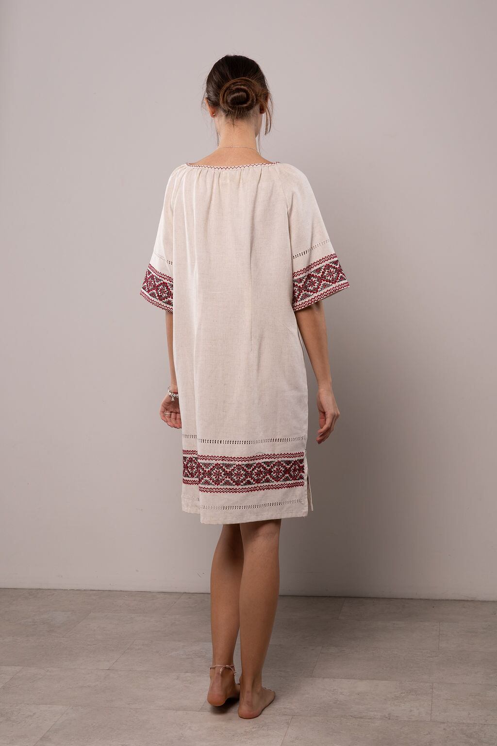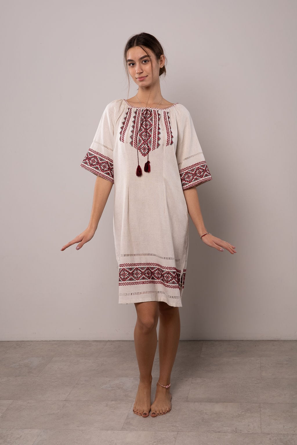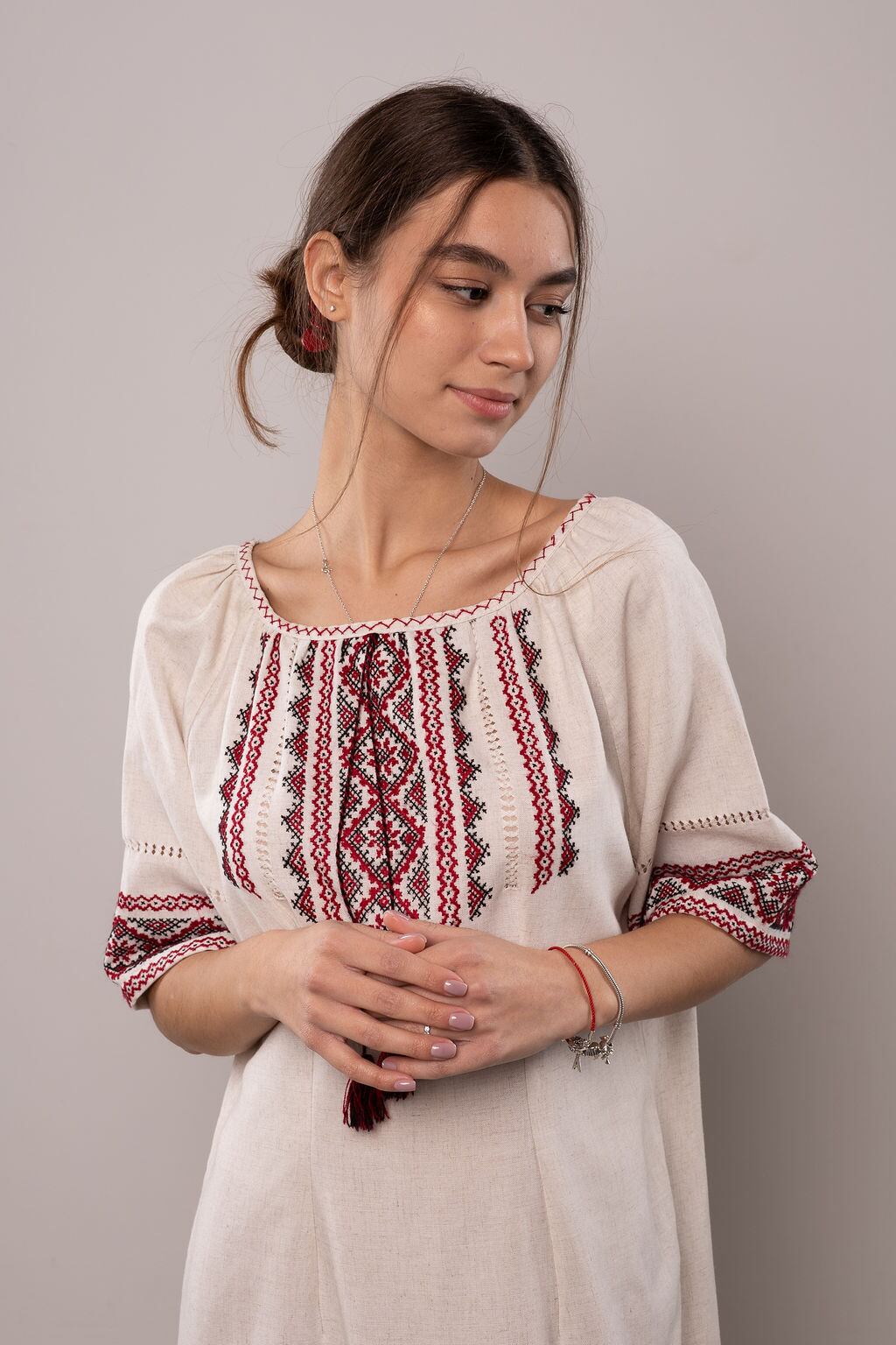 ウクライナ刺繍ヴィシヴァンカ・クラシック 七分袖 ドニプロ 手刺繍 麻 レディース・フリーサイズ