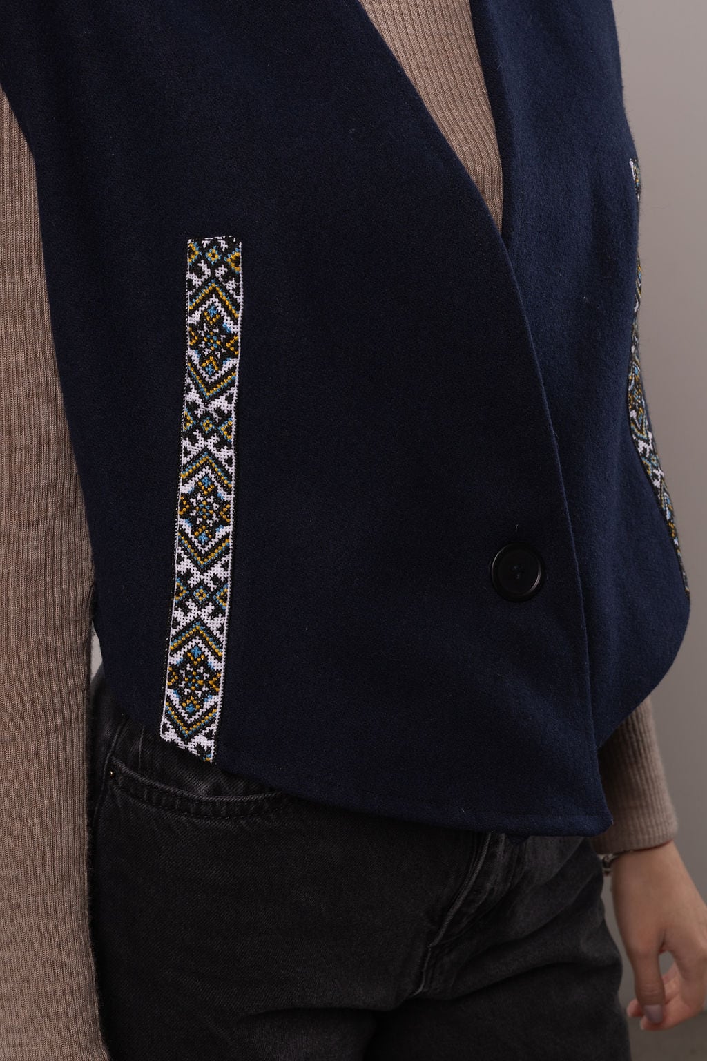ウクライナ刺繍ヴィシヴァンカベスト クロスステッチ手刺繍 ブラウス ウール レディース・フリーサイズ