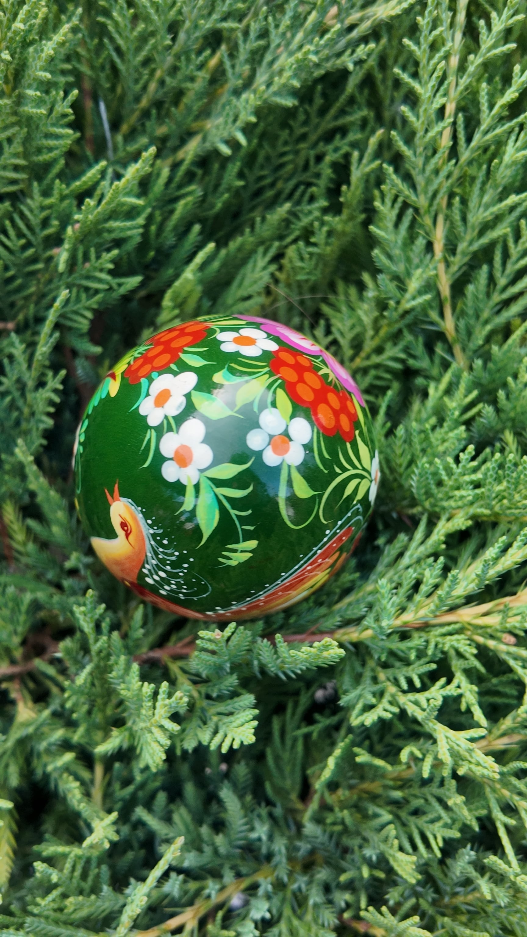 このプィサンカは、ウクライナの伝統芸術の中でも特に独特な美しさと魅力を持っています。ペトリキフカ村の職人たちの手によって、一つ一つ丁寧に描かれたハンドペイントは、その繊細なデザインと鮮やかな色彩で知られています。