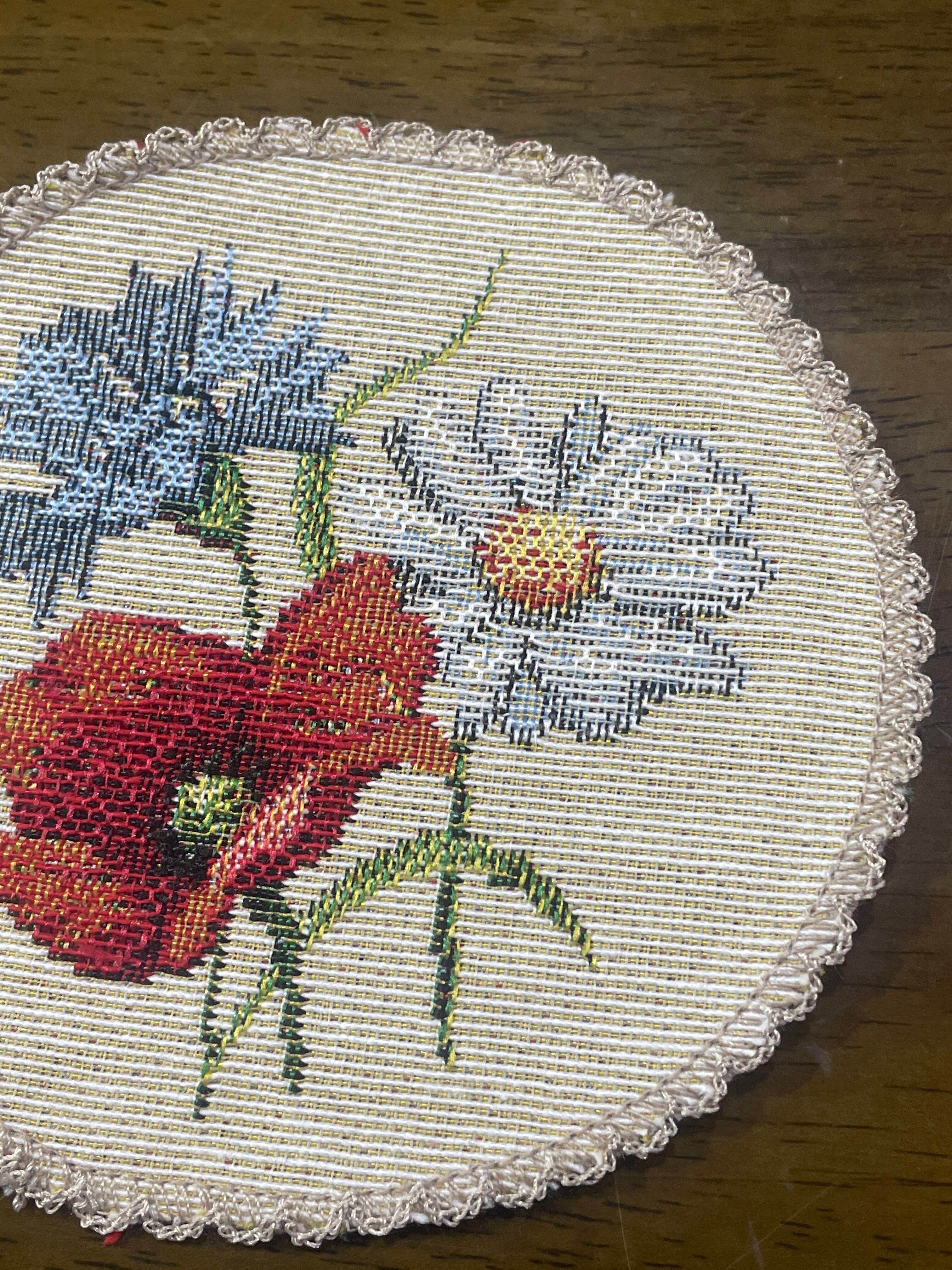 タペストリーラウンドコースター 花(レース付き)ウクライナ製