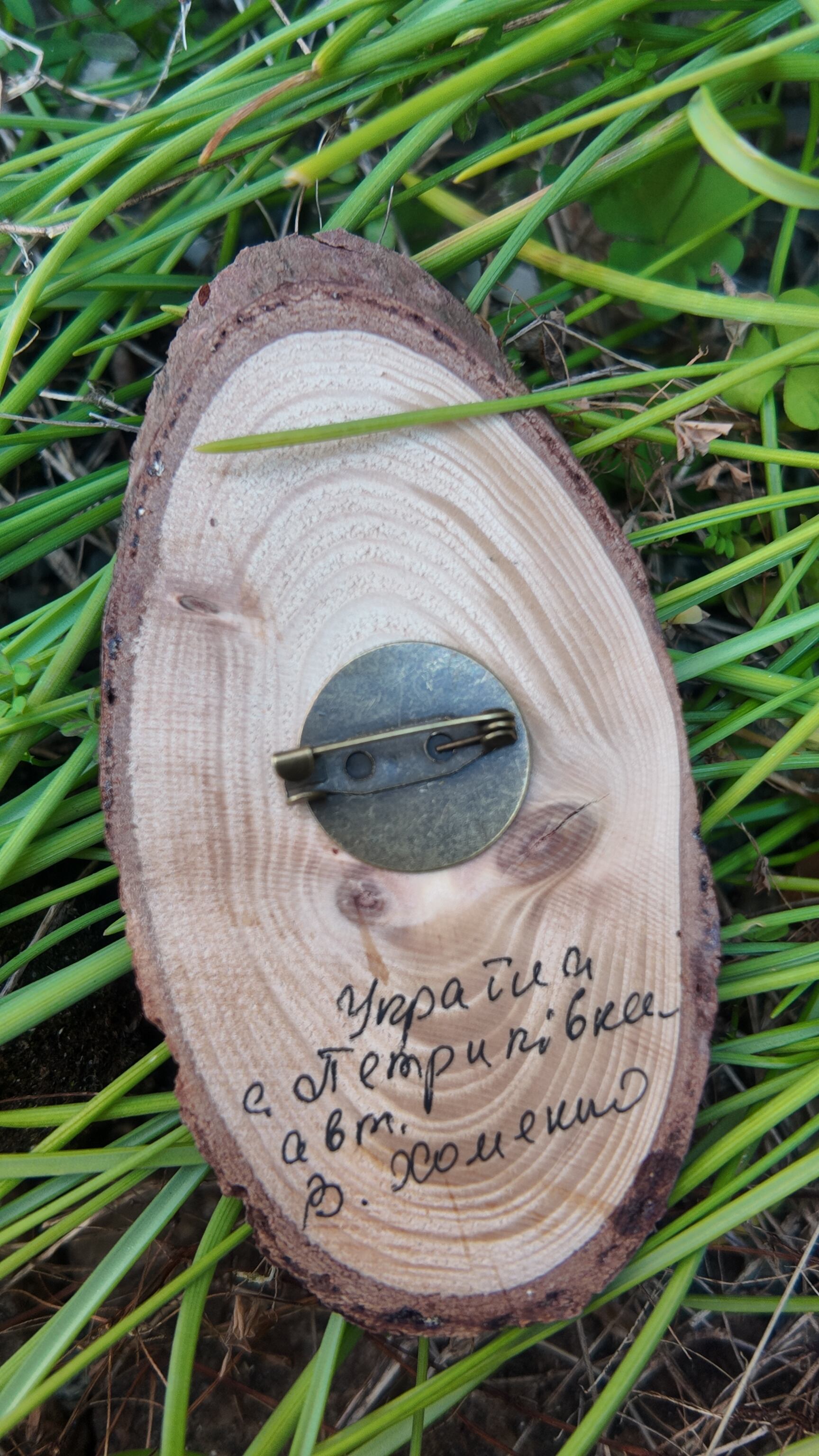 ウクライナ伝統絵画 ペトリキウカ塗り 木製ブローチ(ホメンコ作)