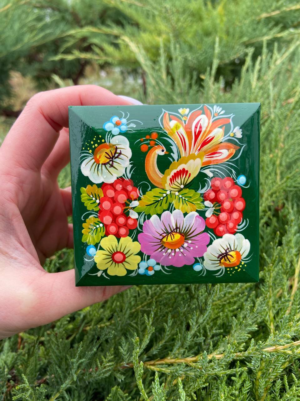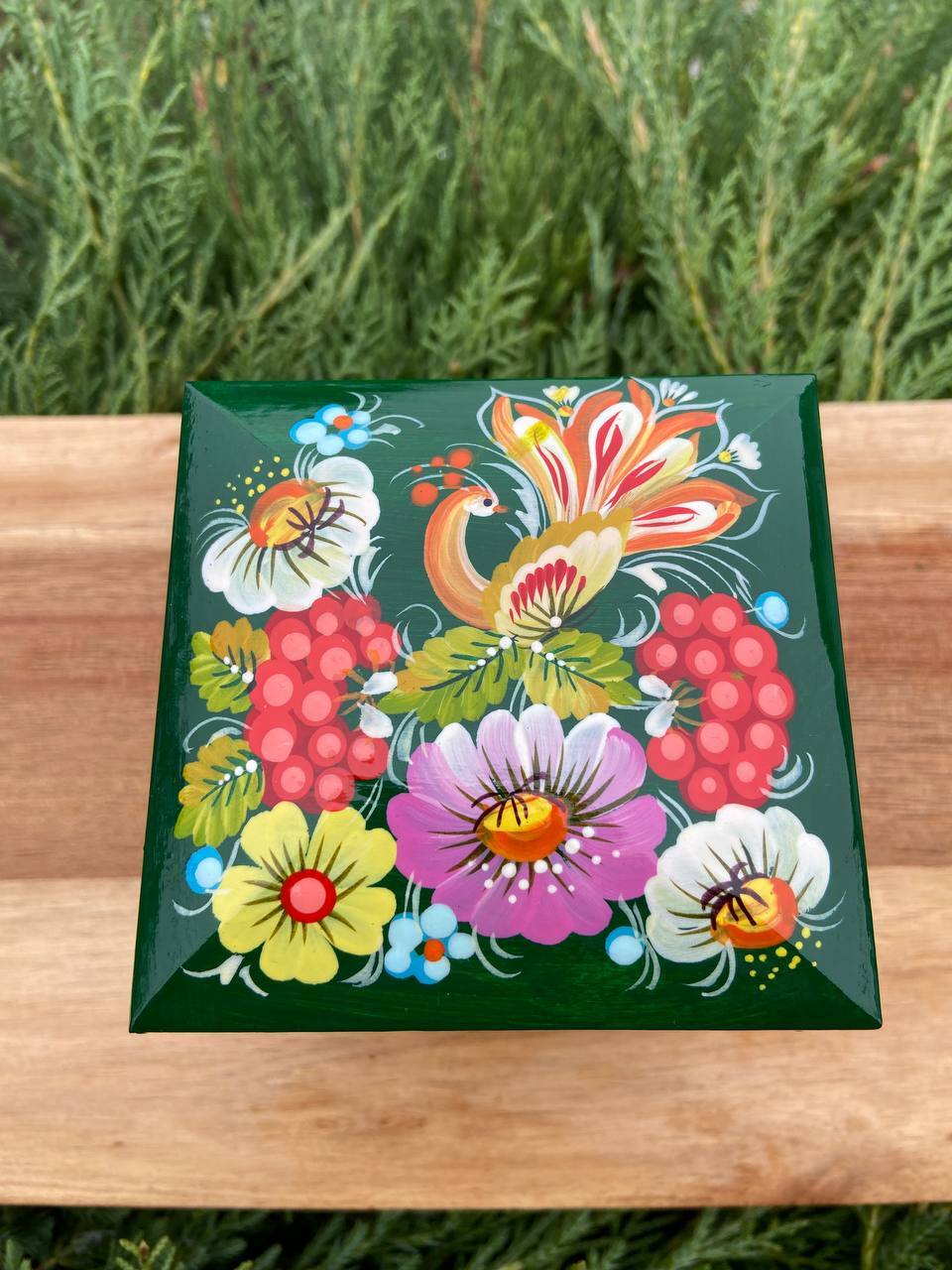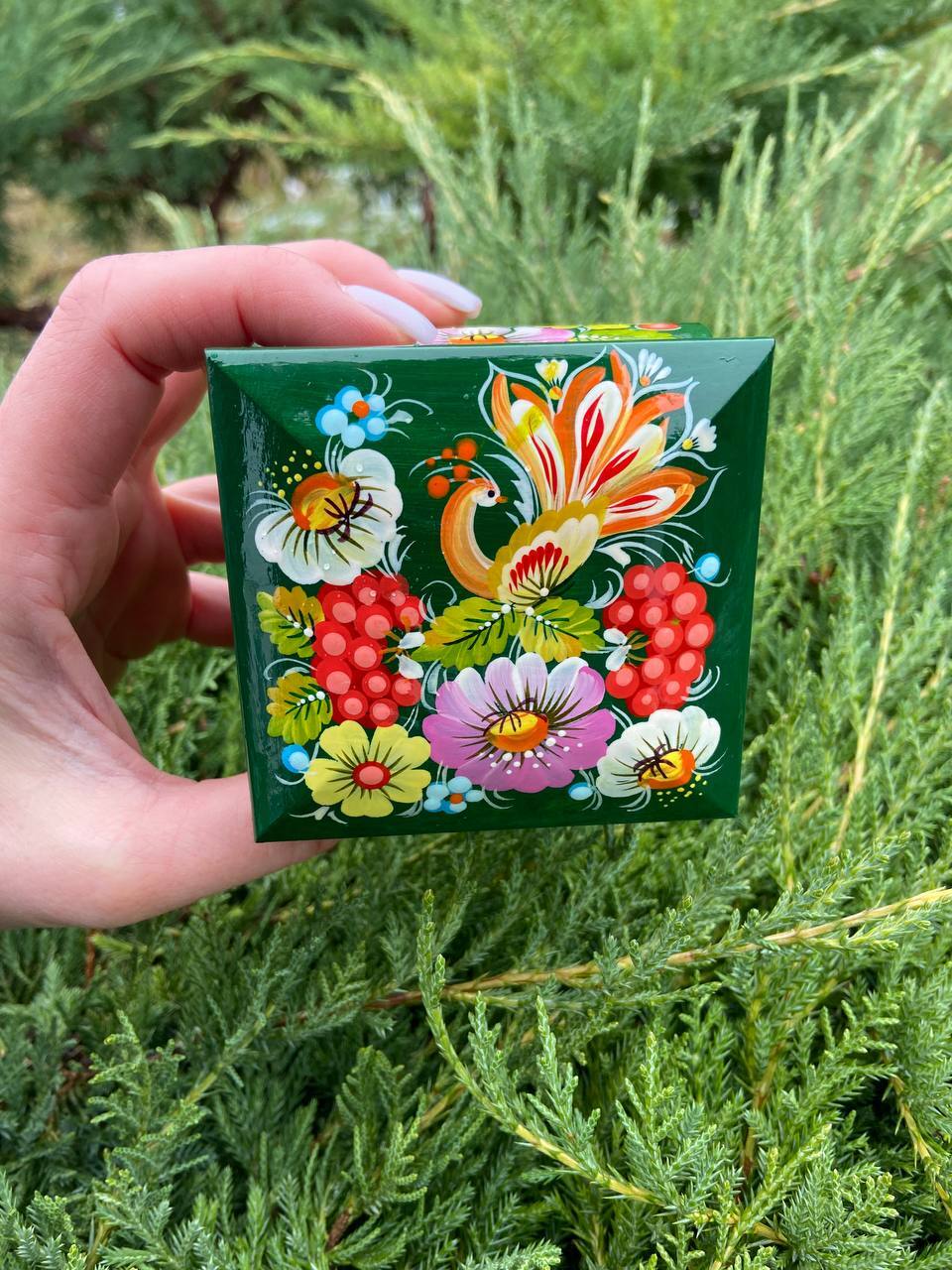 詳細:ペトリキフカ・ジュエリーボックスは、ウクライナの伝統的な芸術、ペトリキフカ塗りの精粋を表現する逸品です。この芸術は、ドニプロ近郊のペトリキフカ村にて代々受け継がれてきたペトリーヴナ家の手によって生み出されています。ホメンコ・ヴァレンティーナ・ペトリーヴナは、その伝統を受け継ぐ現代の名工です。