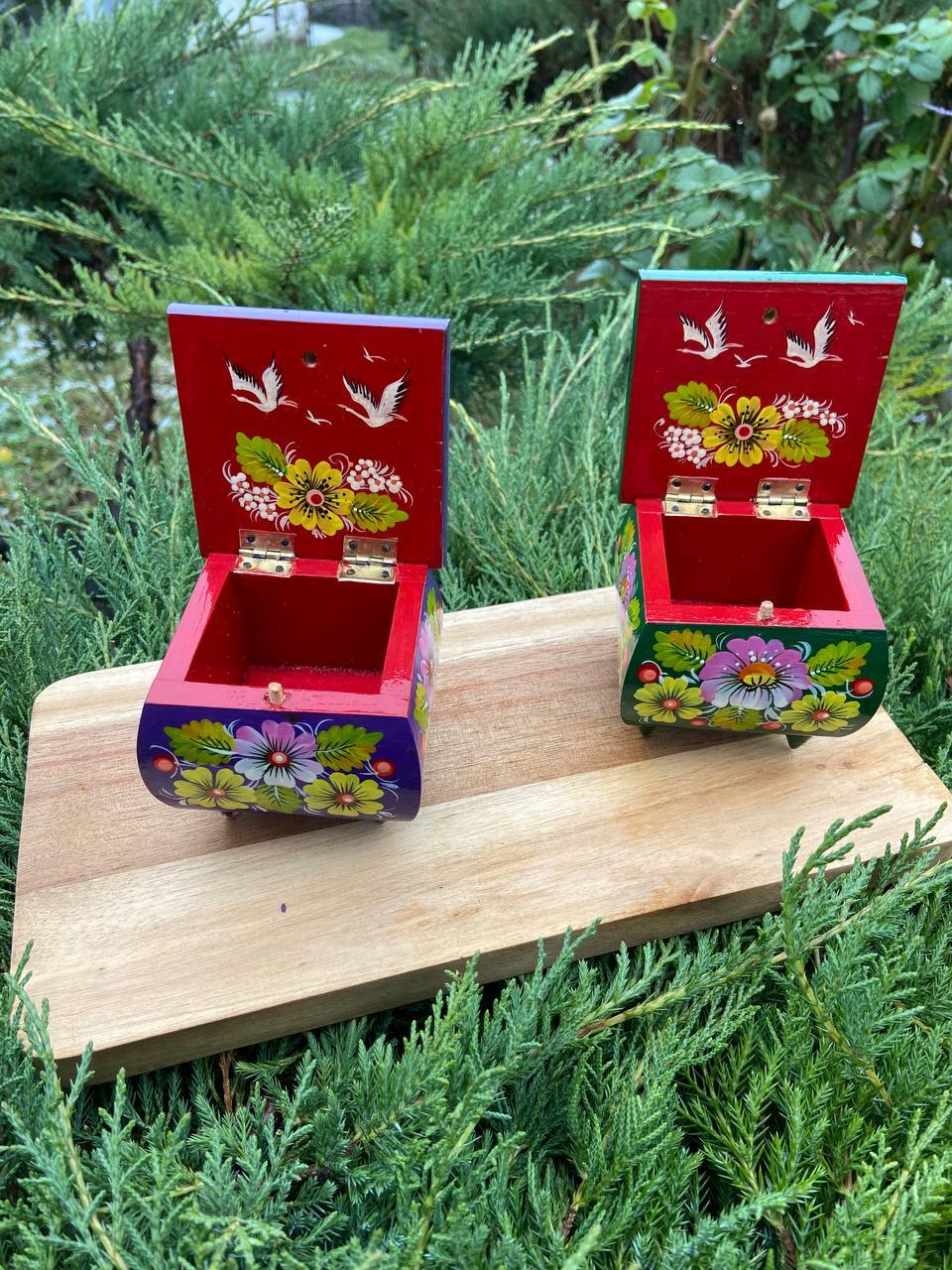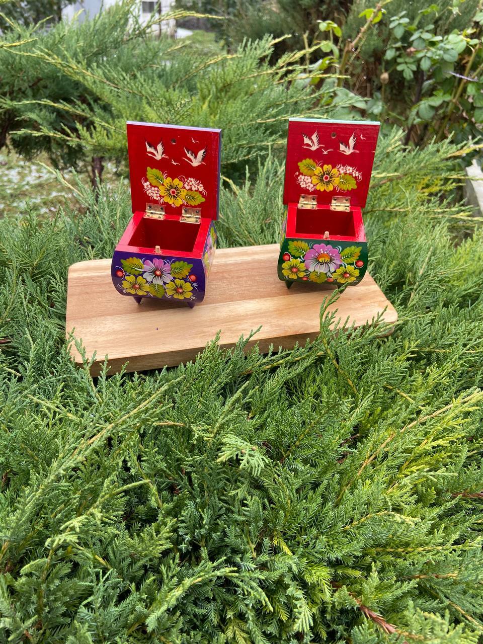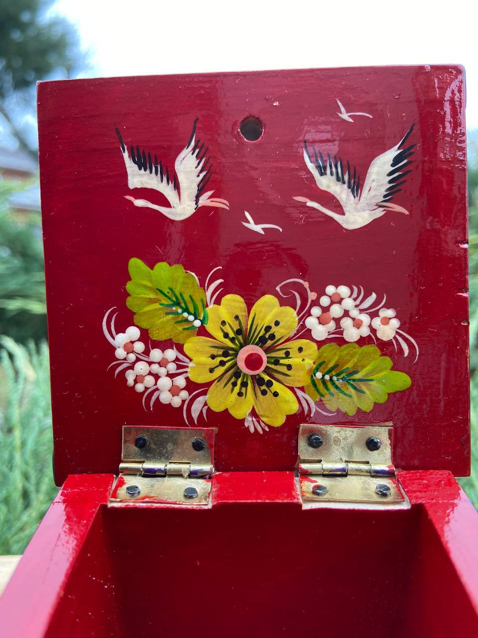 この美しいジュエリーボックスは、ペトリキフカ村のシナノキゾクの樹木から一から手作業で切り彫られ、細部にわたって丁寧に仕上げられています。シナノキの木材は、ウクライナでは御守りとしての意味を持ち、幸運と安全をもたらすと信じられています。