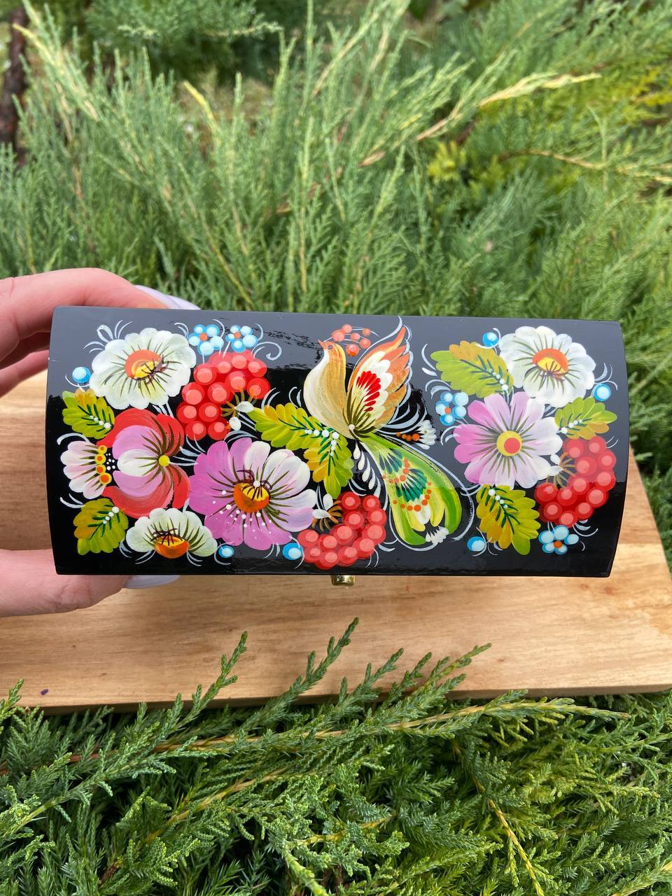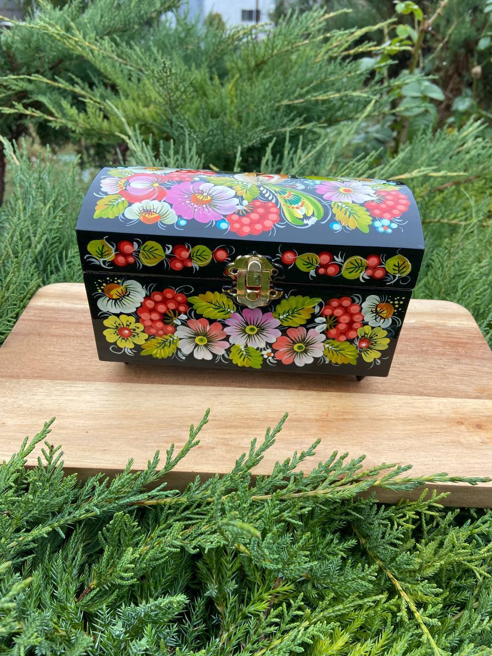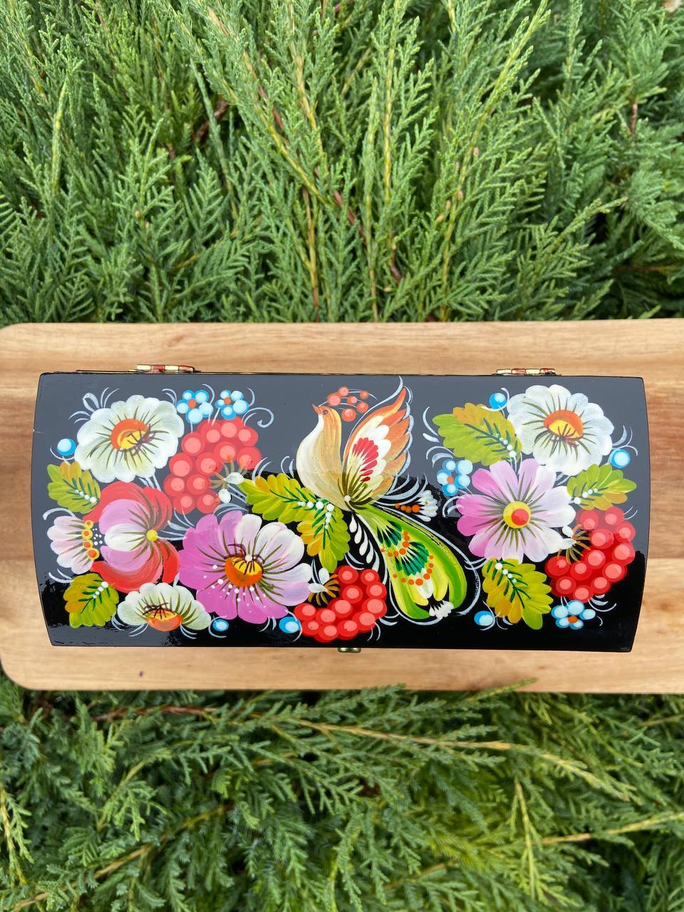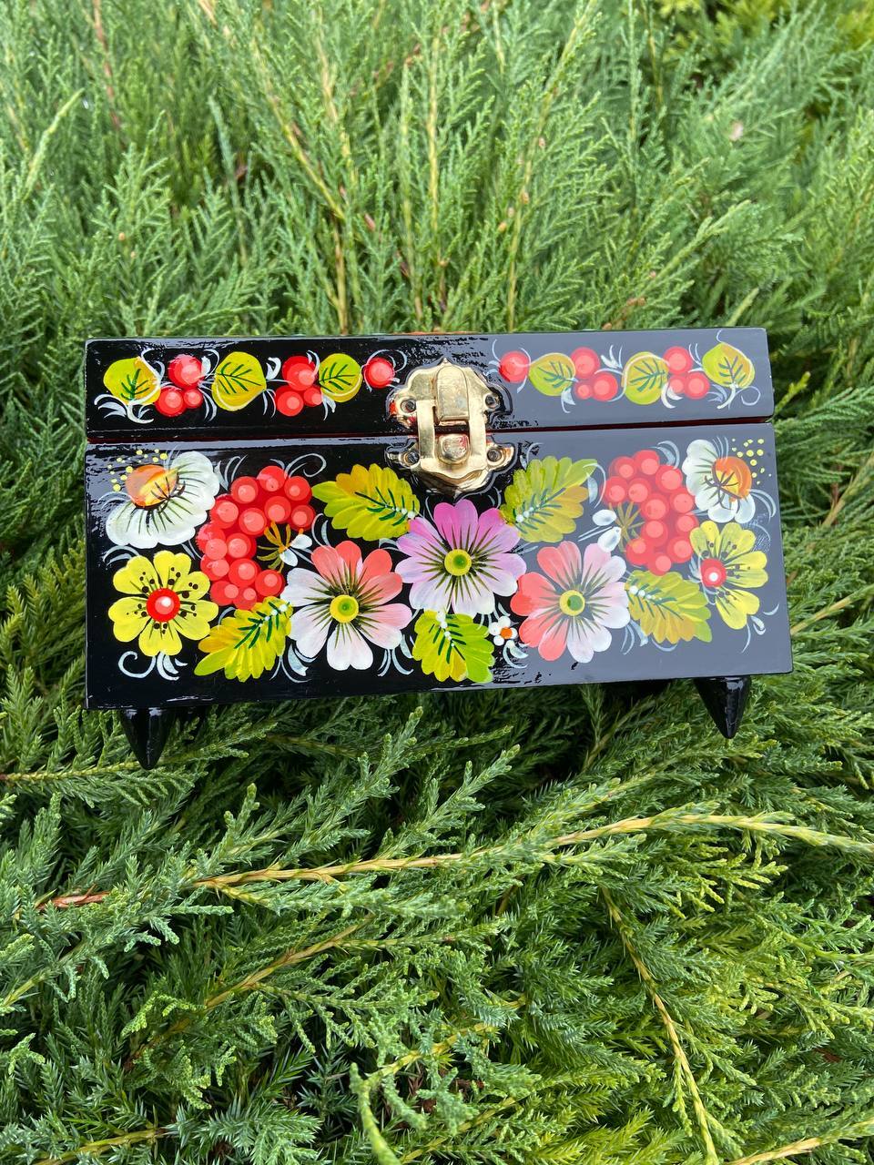 詳細:ペトリキフカ・ジュエリーボックスは、ウクライナの伝統的な芸術、ペトリキフカ塗りの精粋を表現する逸品です。この芸術は、ドニプロ近郊のペトリキフカ村にて代々受け継がれてきたペトリーヴナ家の手によって生み出されています。ホメンコ・ヴァレンティーナ・ペトリーヴナは、その伝統を受け継ぐ現代の名工です。