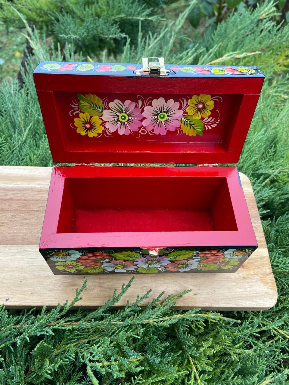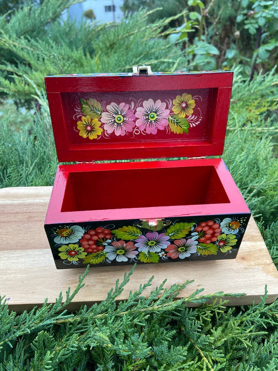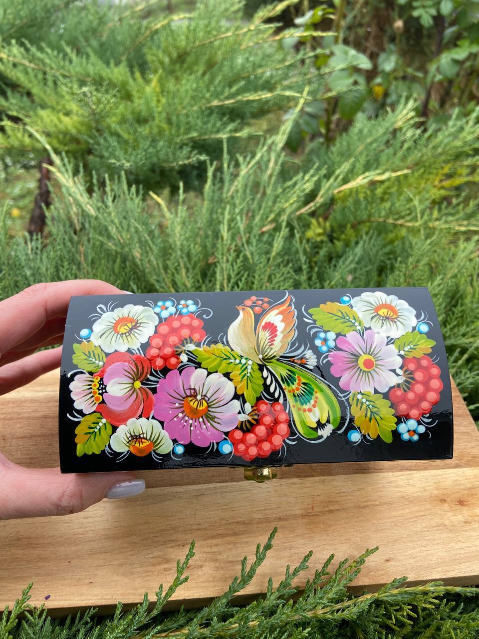 この美しいジュエリーボックスは、ペトリキフカ村のシナノキゾクの樹木から一から手作業で切り彫られ、細部にわたって丁寧に仕上げられています。シナノキの木材は、ウクライナでは御守りとしての意味を持ち、幸運と安全をもたらすと信じられています。