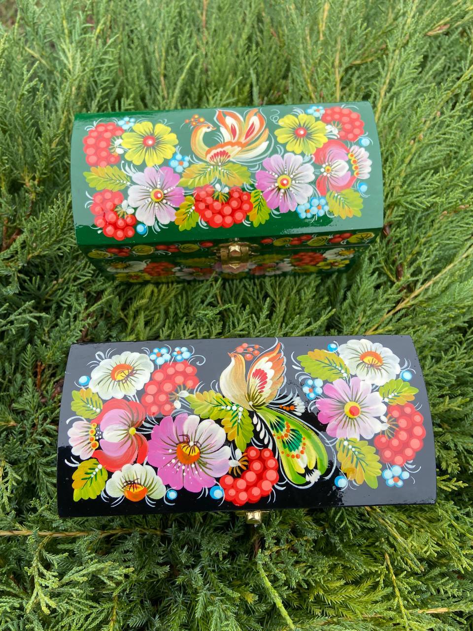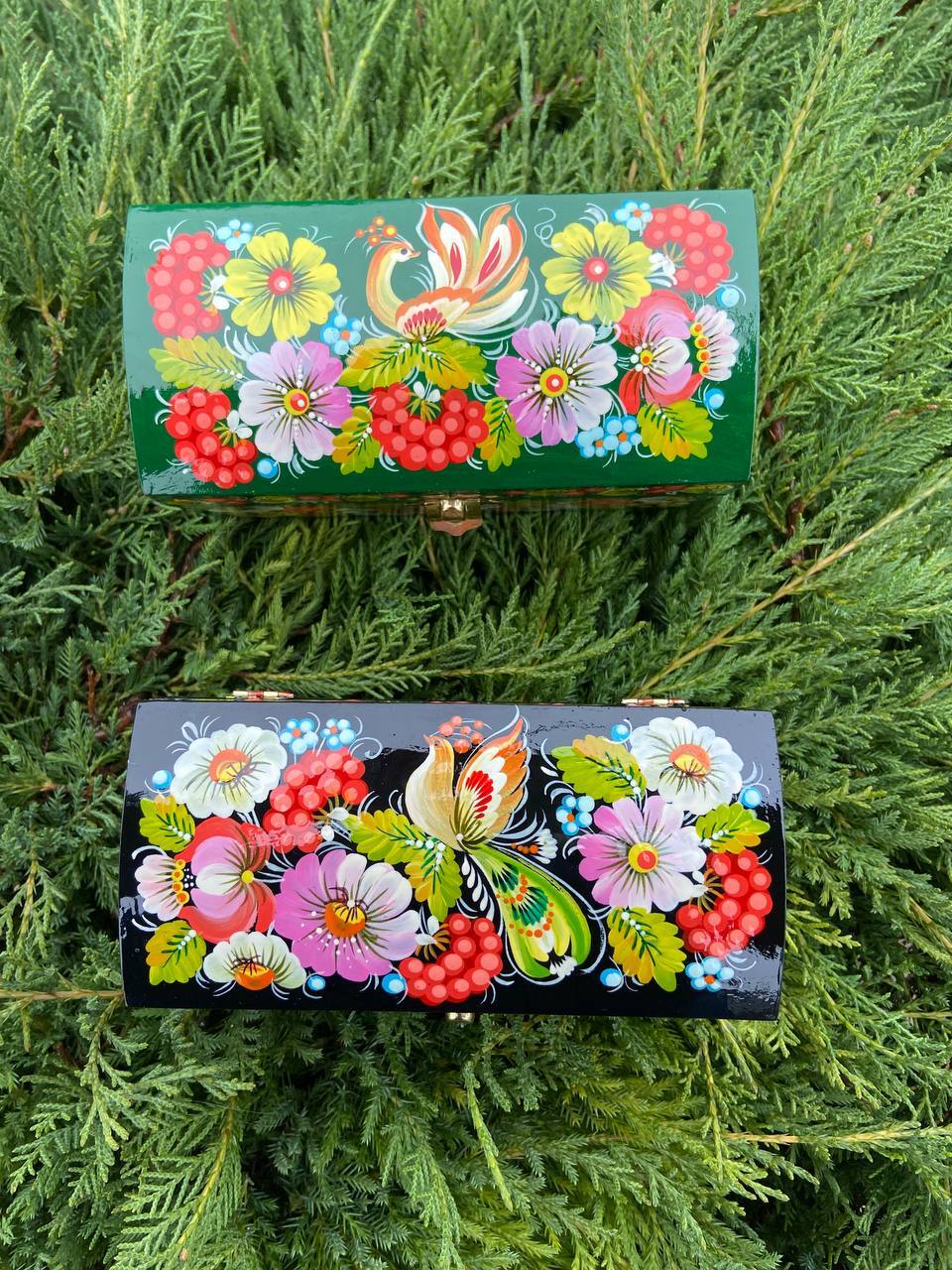 詳細:ペトリキフカ・ジュエリーボックスは、ウクライナの伝統的な芸術、ペトリキフカ塗りの精粋を表現する逸品です。この芸術は、ドニプロ近郊のペトリキフカ村にて代々受け継がれてきたペトリーヴナ家の手によって生み出されています。ホメンコ・ヴァレンティーナ・ペトリーヴナは、その伝統を受け継ぐ現代の名工です。