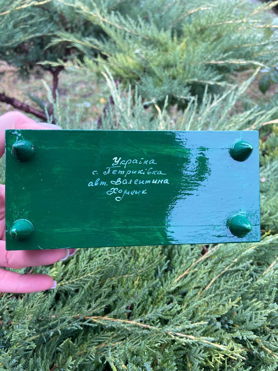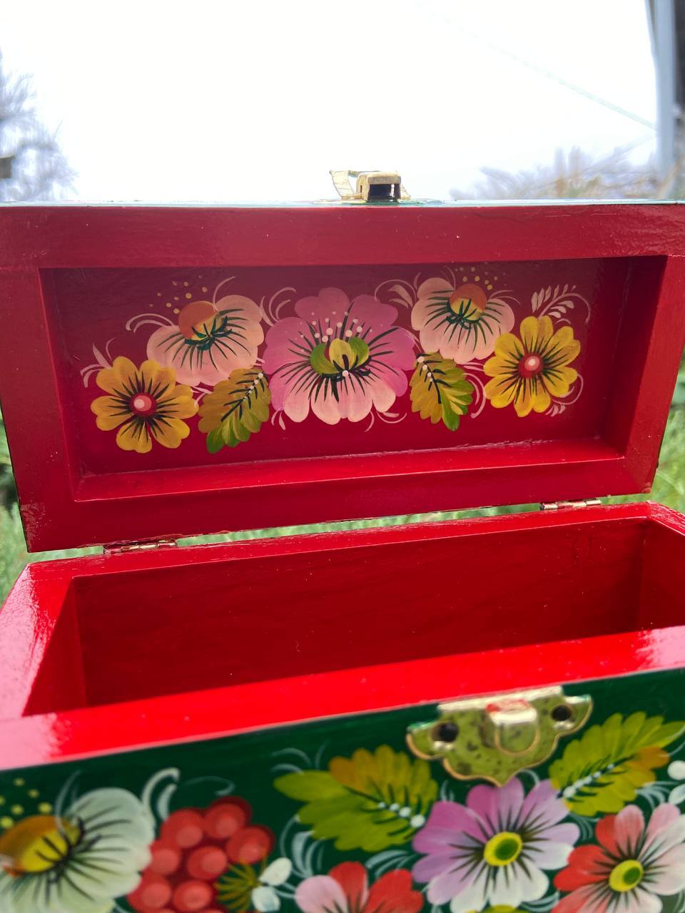 この美しいジュエリーボックスは、ペトリキフカ村のシナノキゾクの樹木から一から手作業で切り彫られ、細部にわたって丁寧に仕上げられています。シナノキの木材は、ウクライナでは御守りとしての意味を持ち、幸運と安全をもたらすと信じられています。