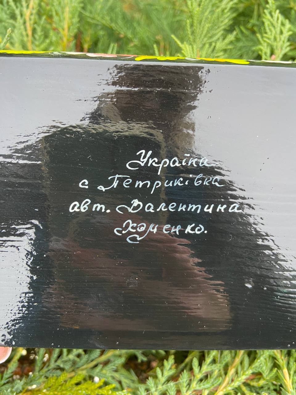ペトリキフカ・ジュエリーボックスは、ウクライナの伝統的な芸術、ペトリキフカ塗りの精粋を表現する逸品です。この芸術は、ドニプロ近郊のペトリキフカ村にて代々受け継がれてきたペトリーヴナ家の手によって生み出されています。ホメンコ・ヴァレンティーナ・ペトリーヴナは、その伝統を受け継ぐ現代の名工です。