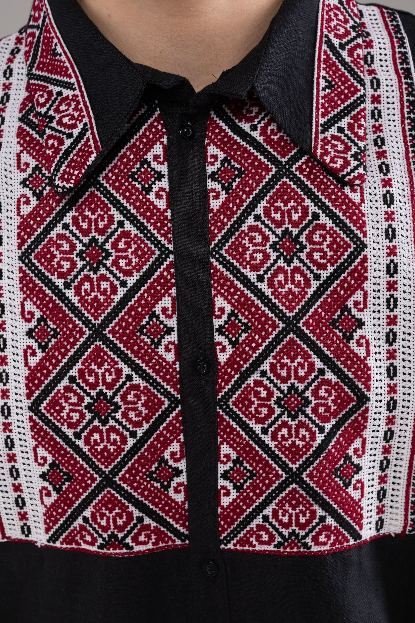 この作品は、ウクライナの伝統と美しさを象徴するヴィシヴァンカの刺繍を採用しています。