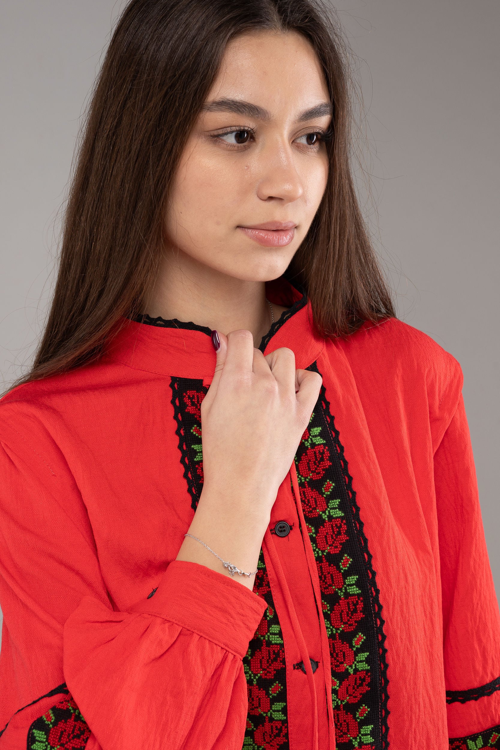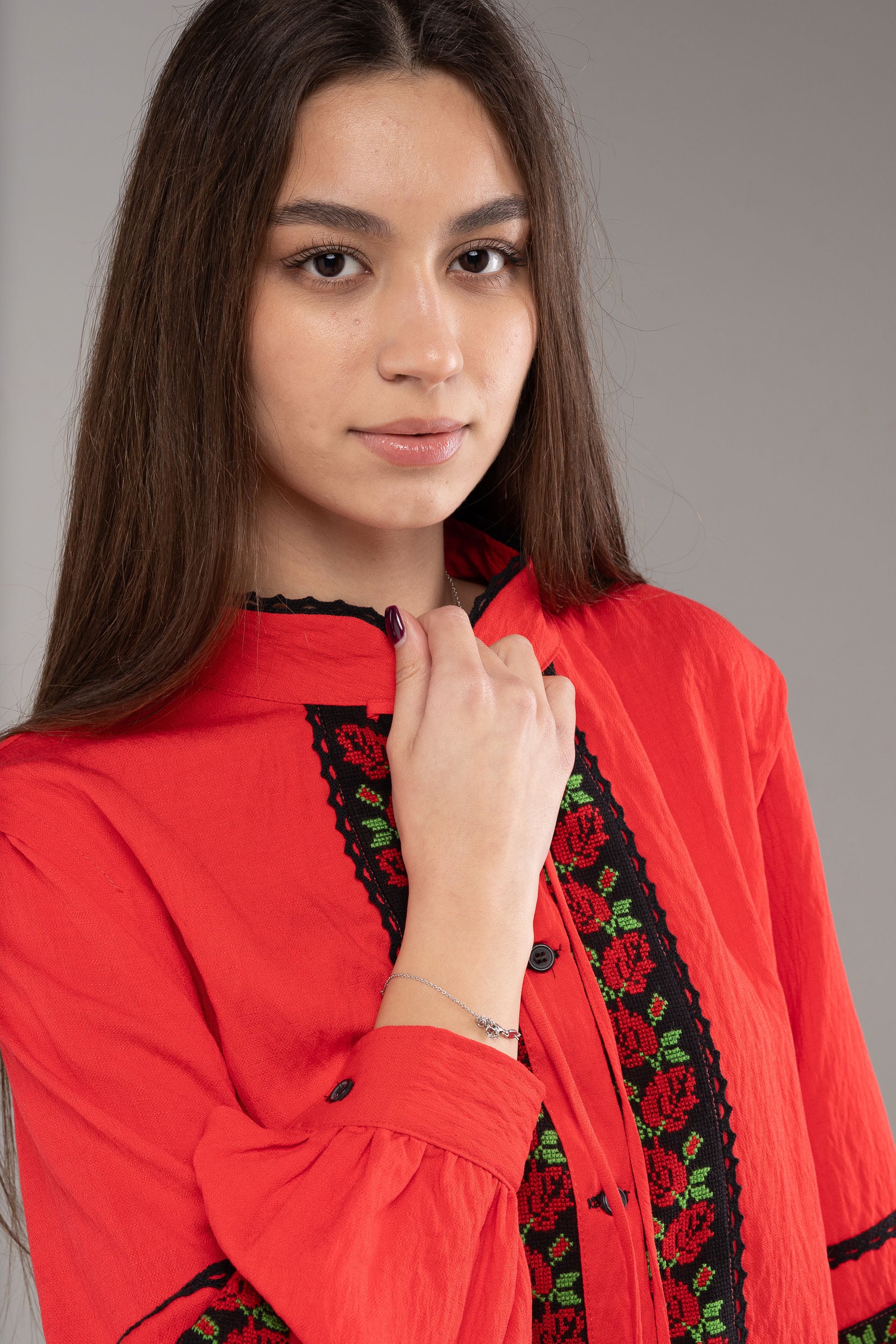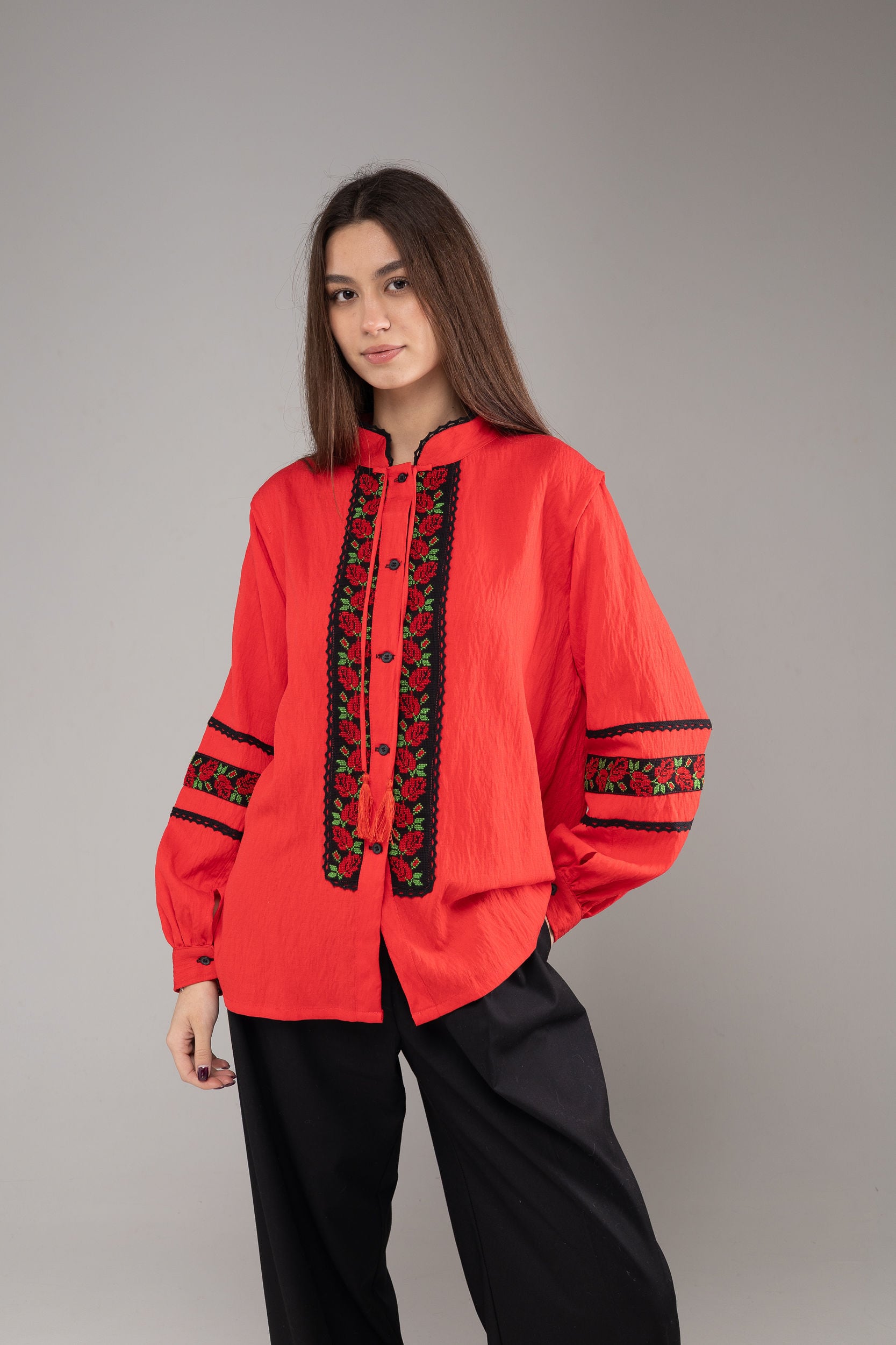 この作品は、ウクライナの伝統と美しさを象徴するヴィシヴァンカの刺繍を採用しています。過度な派手さを追求せず、日本の日常生活に自然に溶け込むデザインとなっております。しかし、それでいて洗練された高級感とカジュアルな雰囲気を両立させ、見る人を魅了する一着となっています。