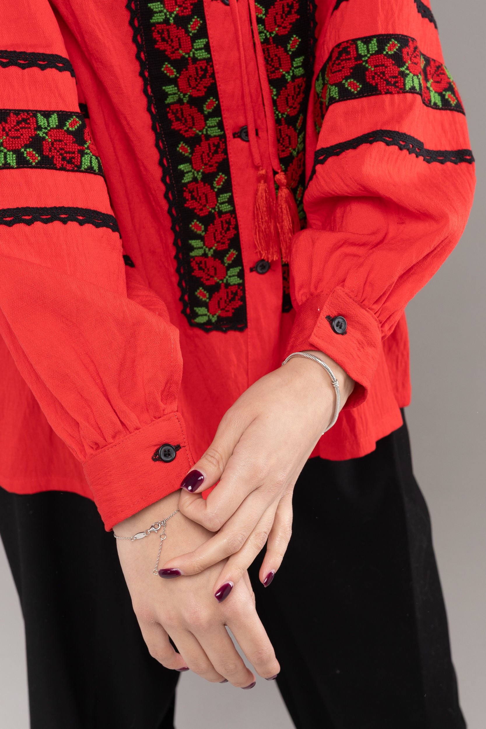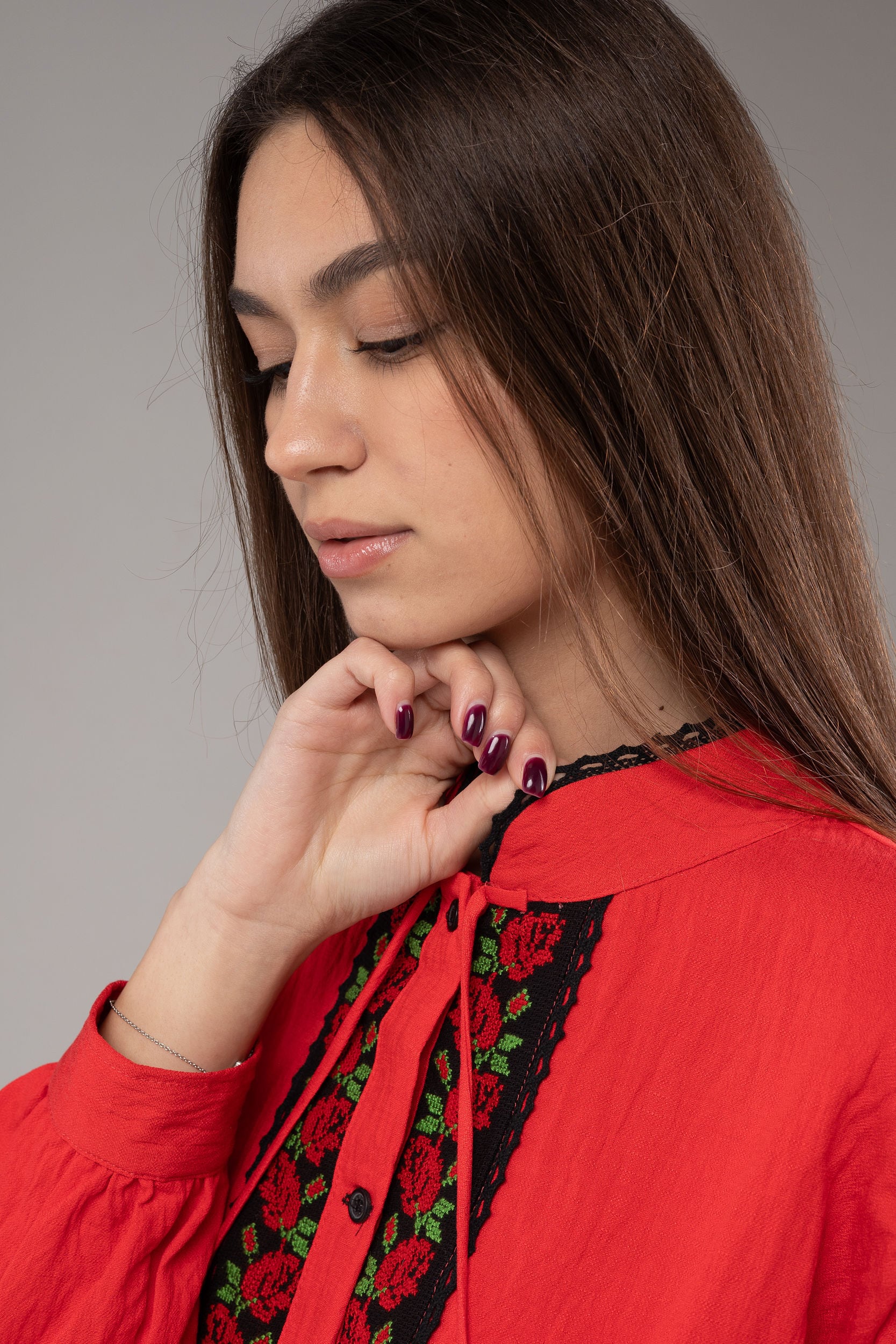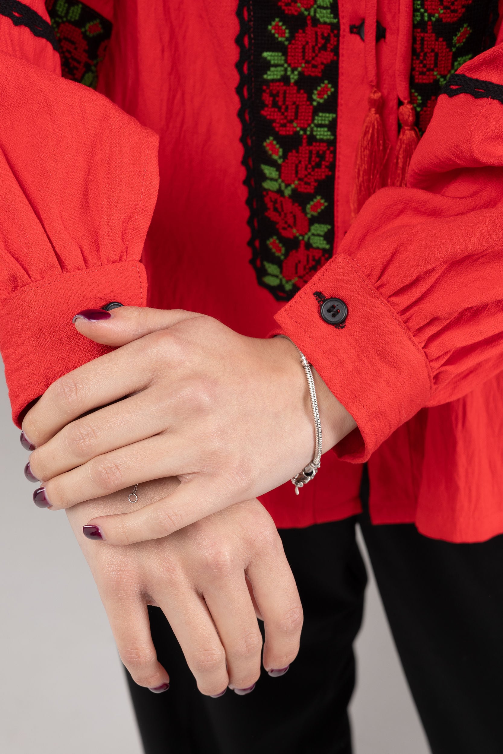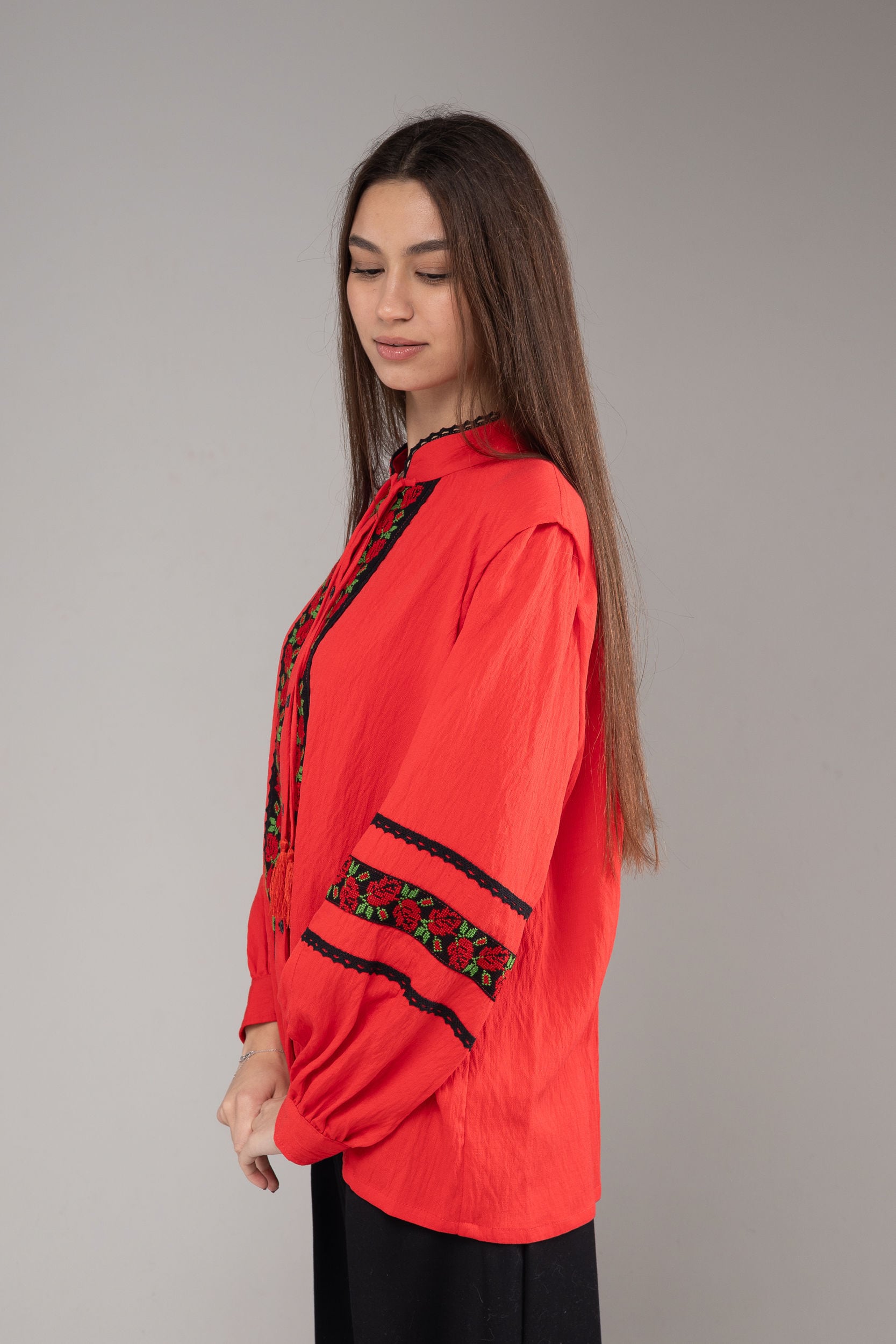 この作品は、ウクライナの伝統と美しさを象徴するヴィシヴァンカの刺繍を採用しています。過度な派手さを追求せず、日本の日常生活に自然に溶け込むデザインとなっております。しかし、それでいて洗練された高級感とカジュアルな雰囲気を両立させ、見る人を魅了する一着となっています。