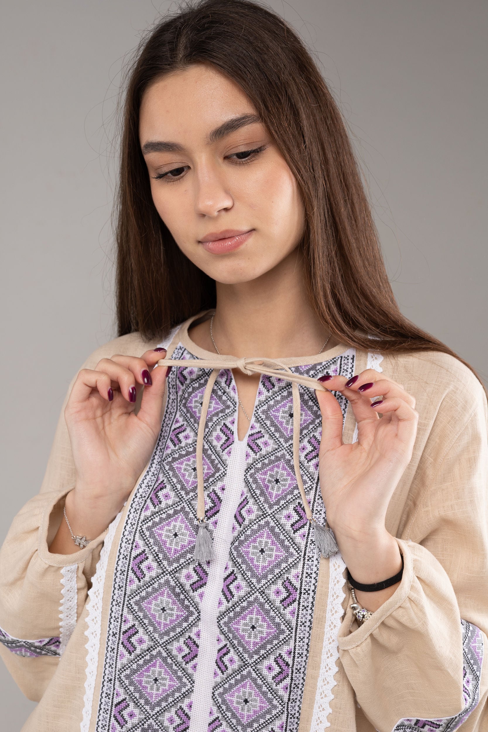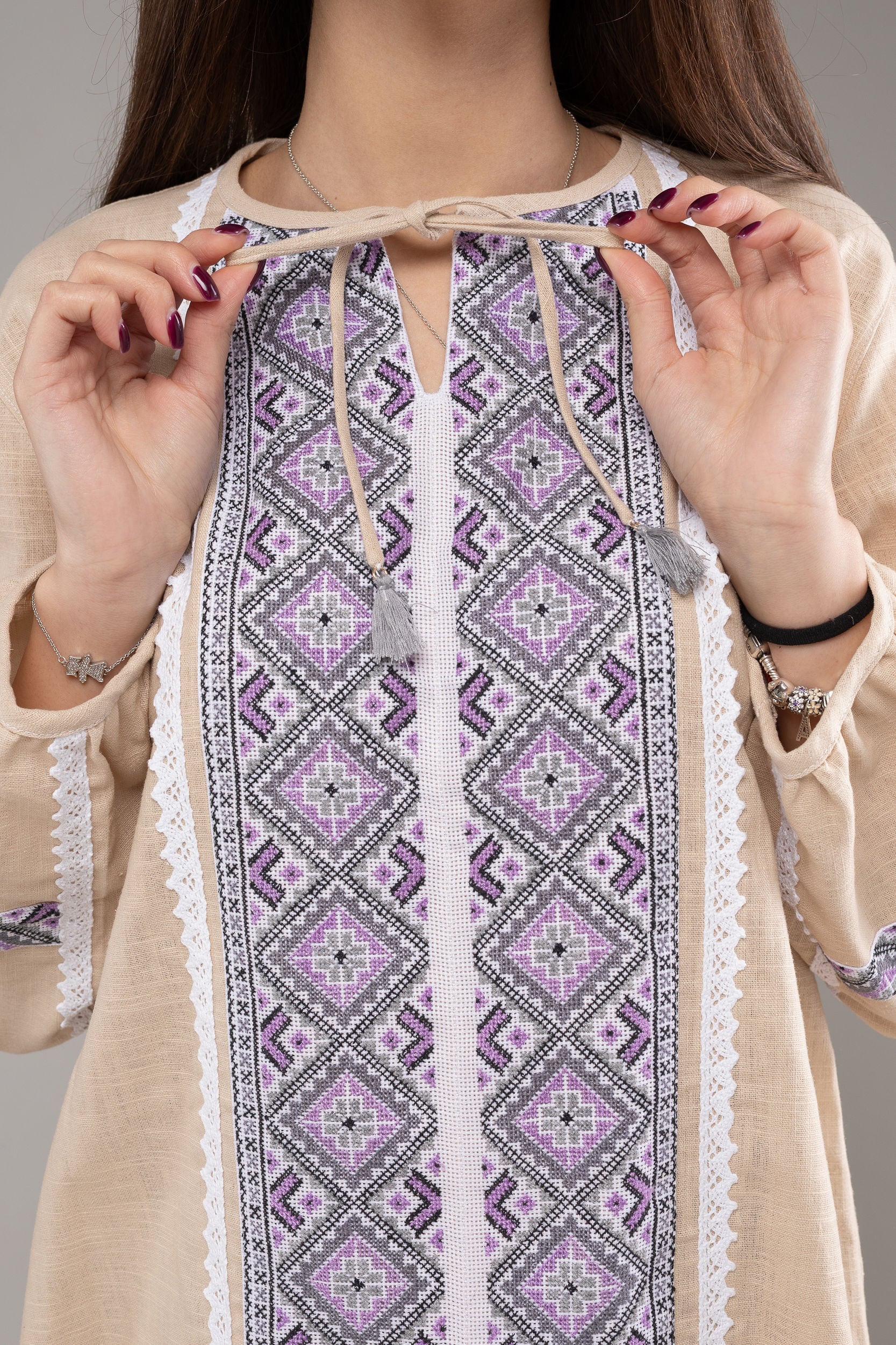 伝統を大切にし、数十年のキャリアのあるウクライナ人デザイナーが一から手縫いで作っています。そのため、二点と存在しないオリジナルとなります。