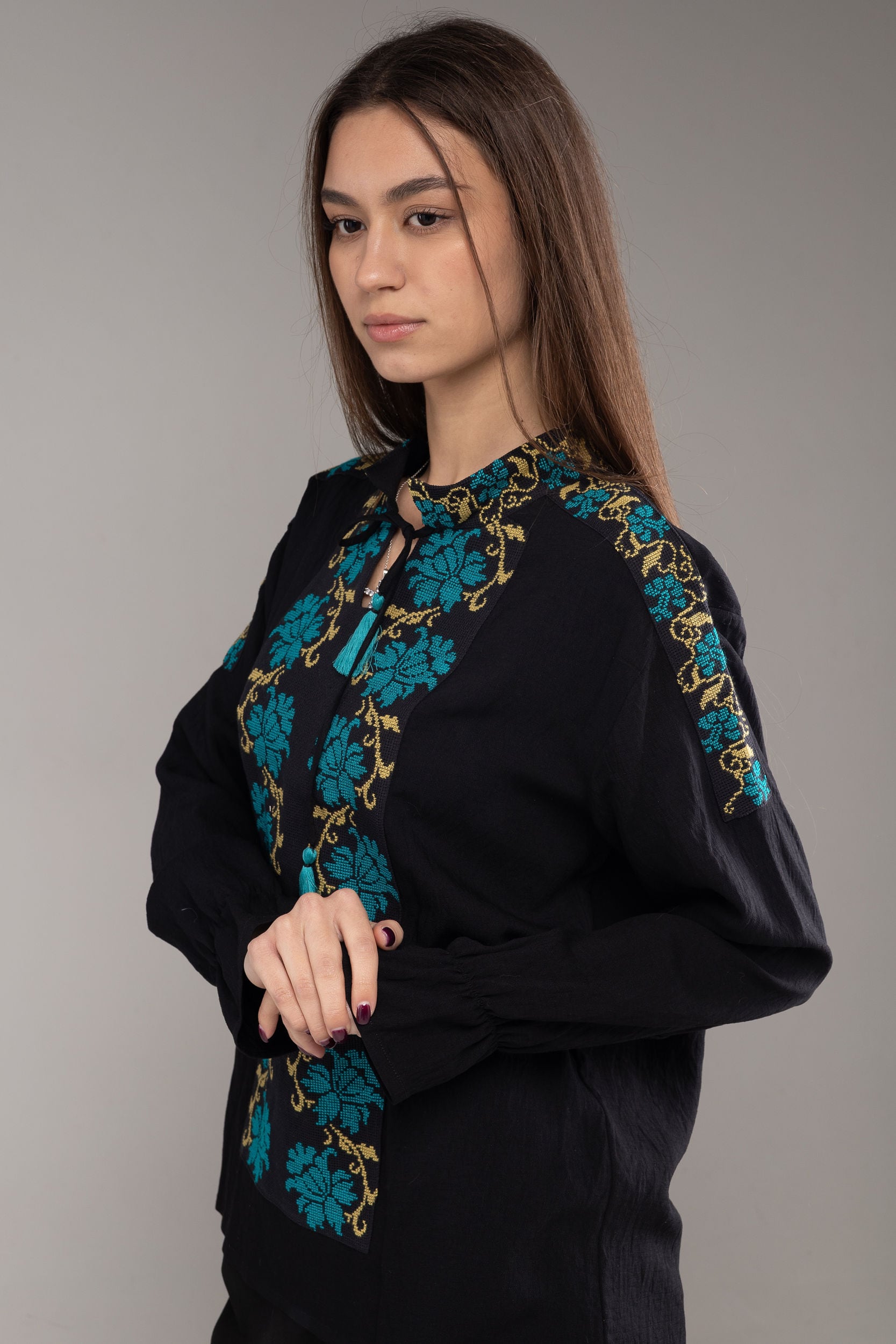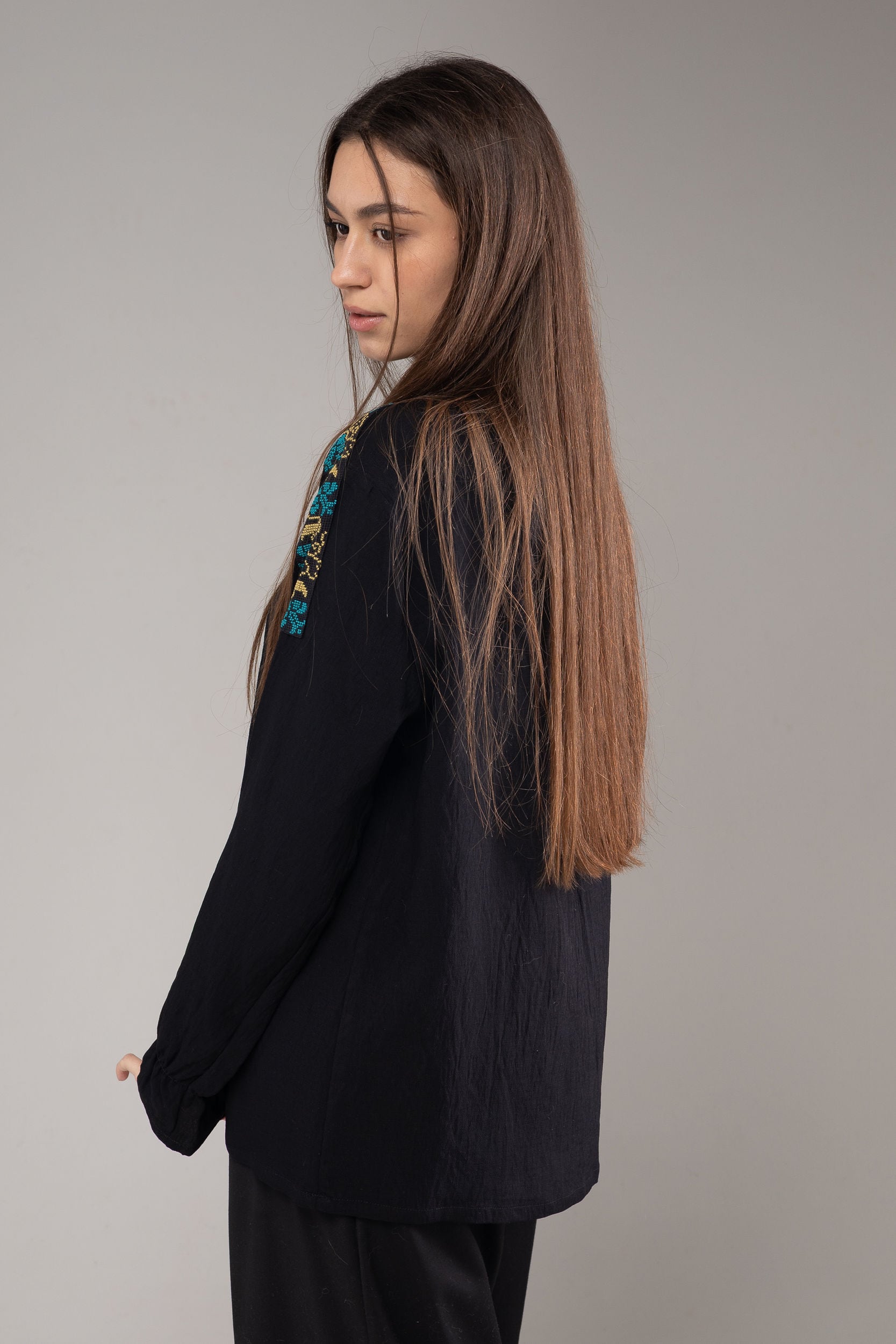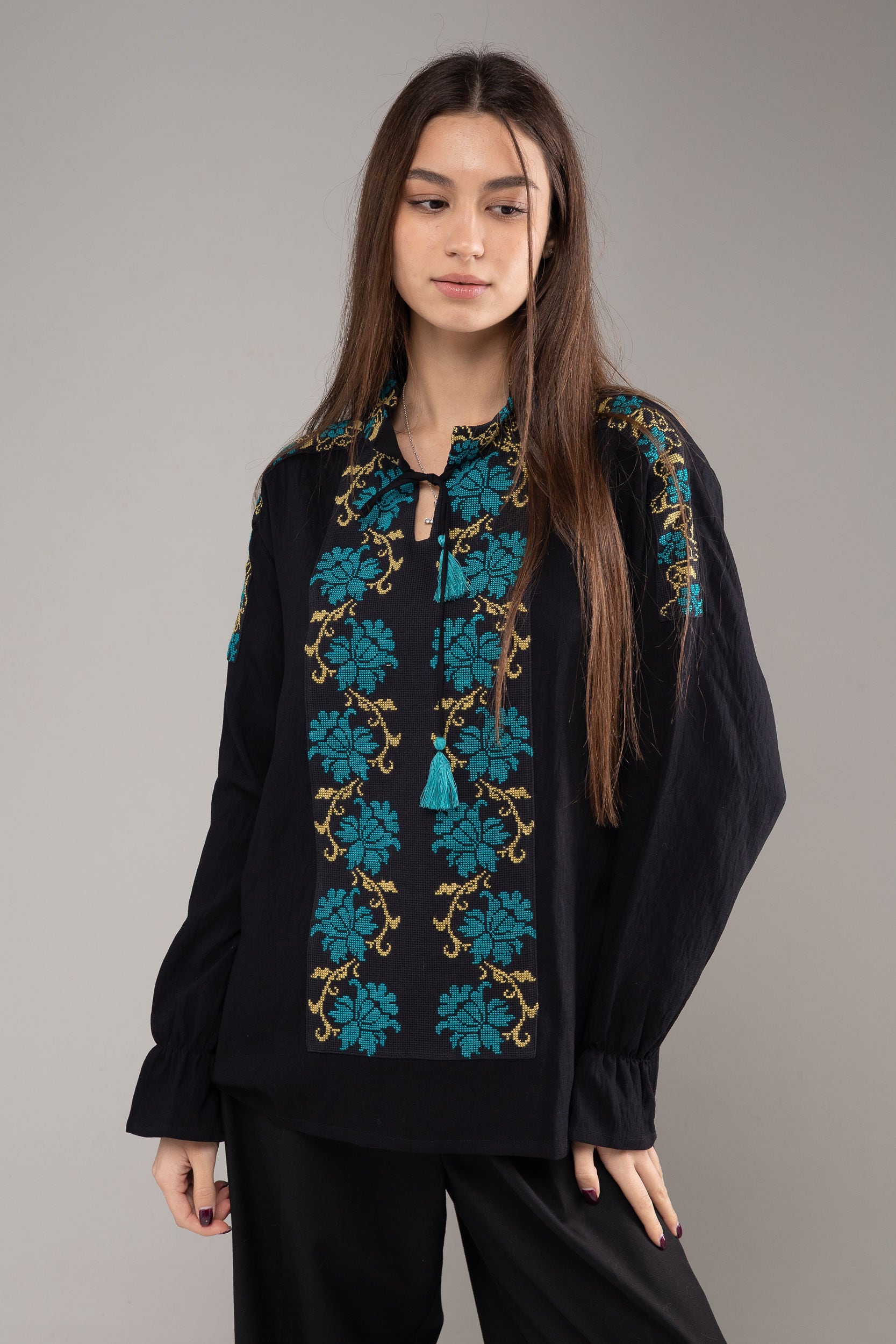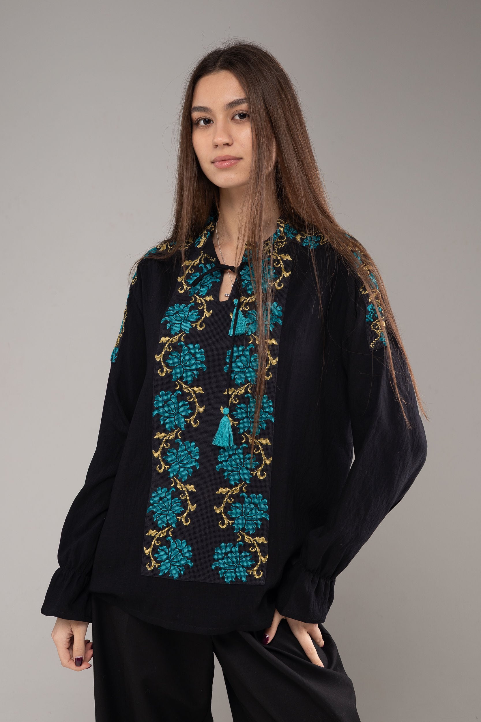 この作品は、ウクライナの伝統と美しさを象徴するヴィシヴァンカの刺繍を採用しています。過度な派手さを追求せず、日本の日常生活に自然に溶け込むデザインとなっております。しかし、それでいて洗練された高級感とカジュアルな雰囲気を両立させ、見る人を魅了する一着となっています。