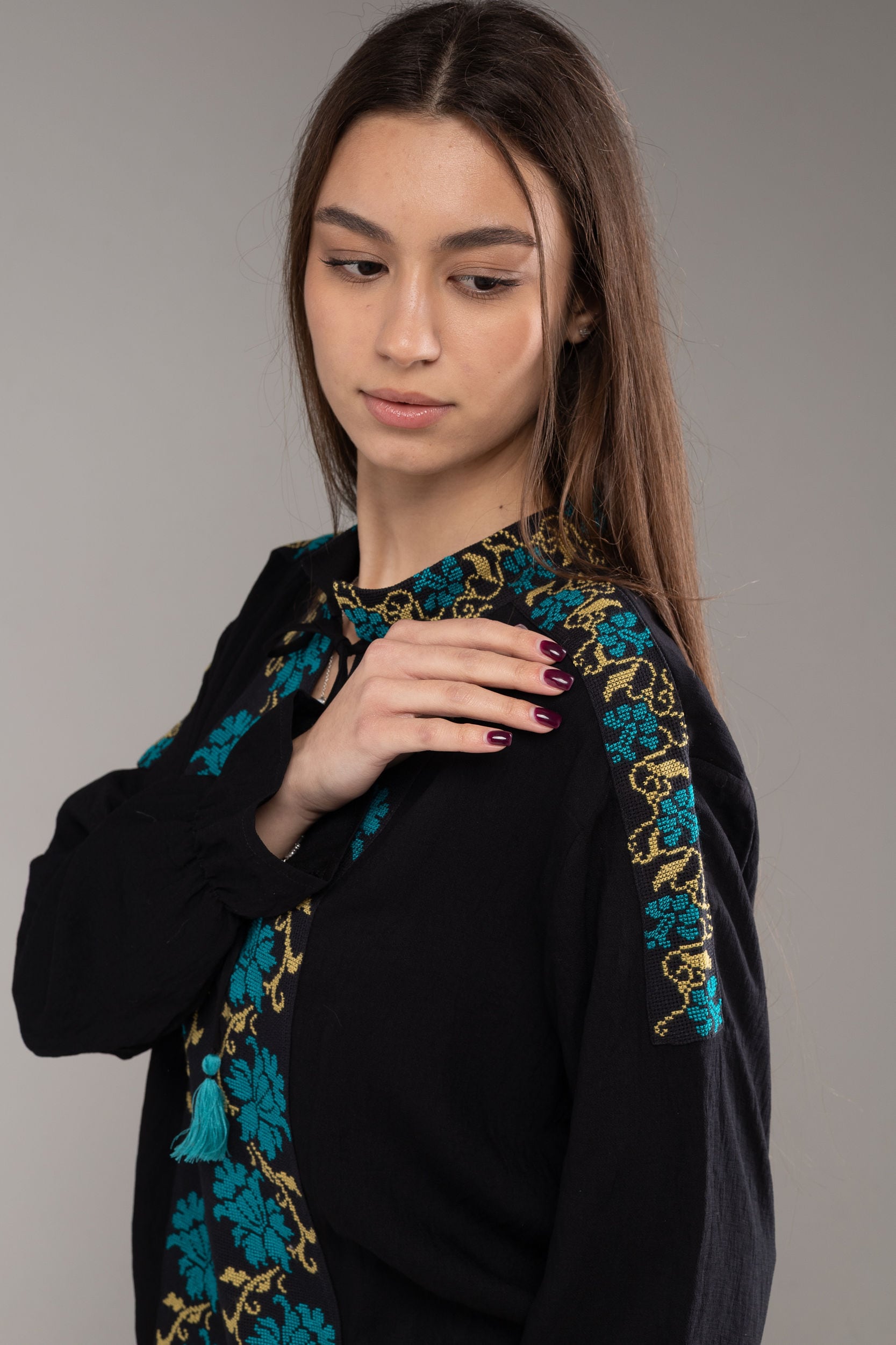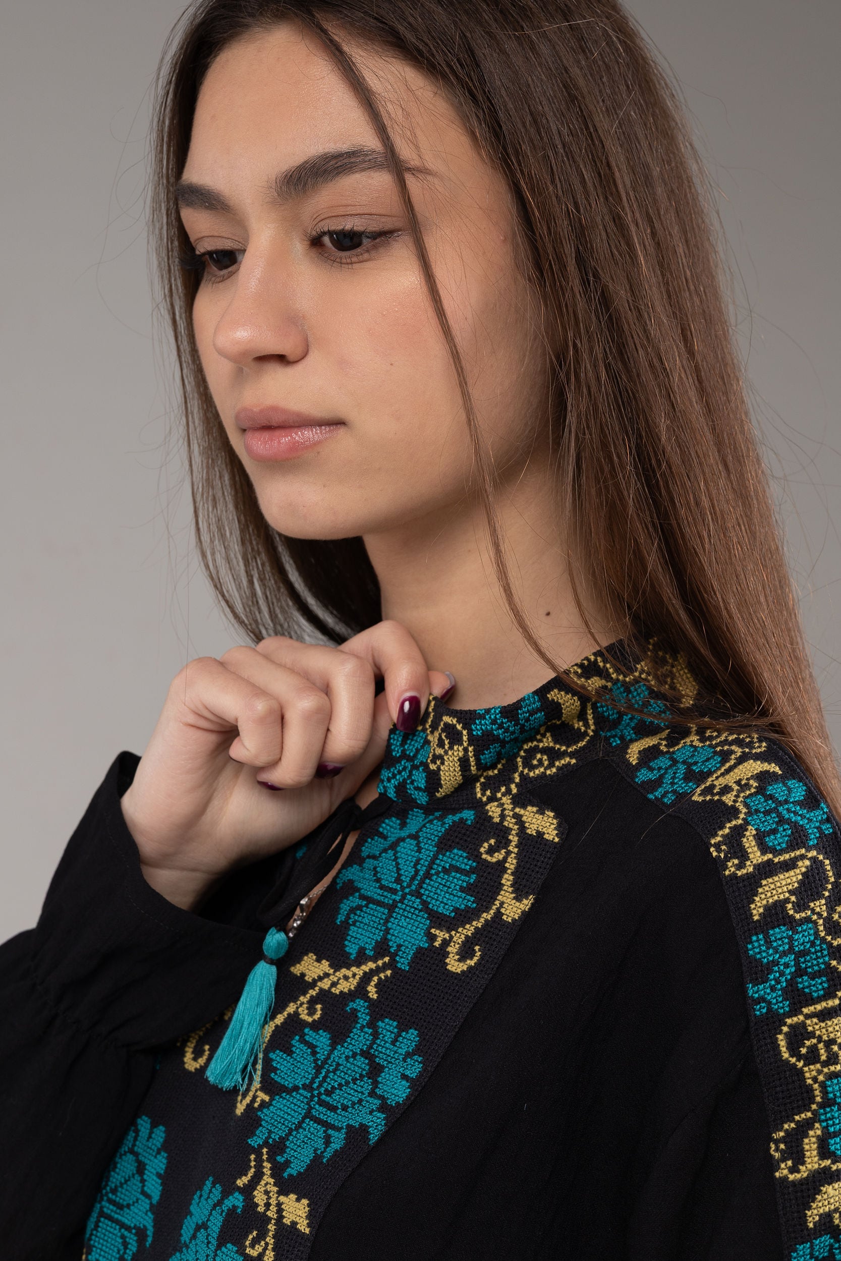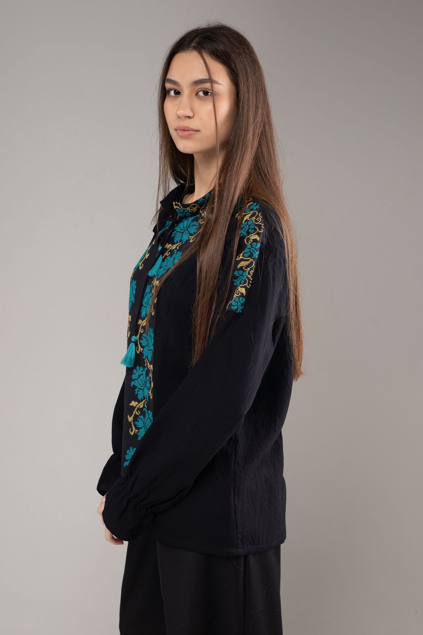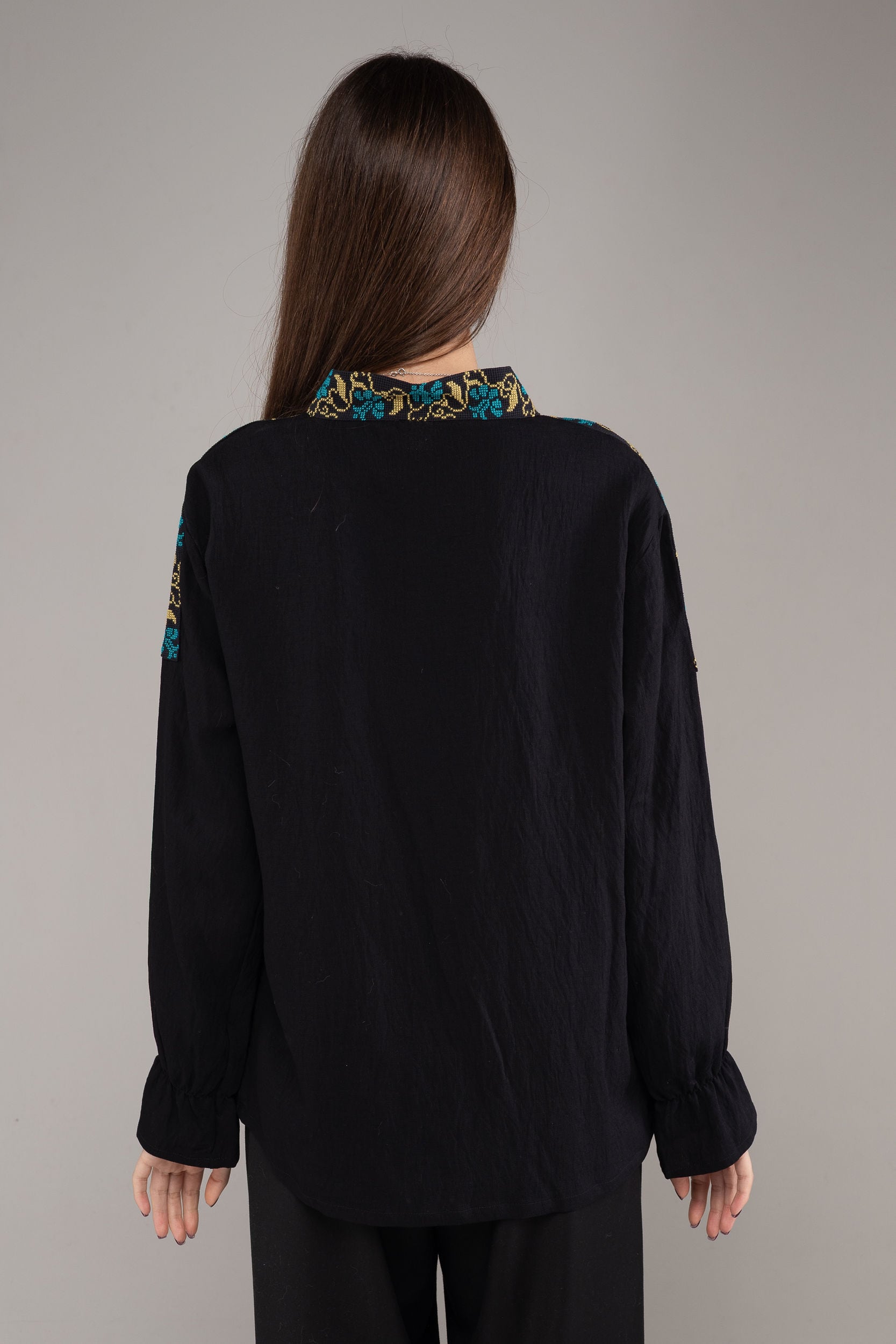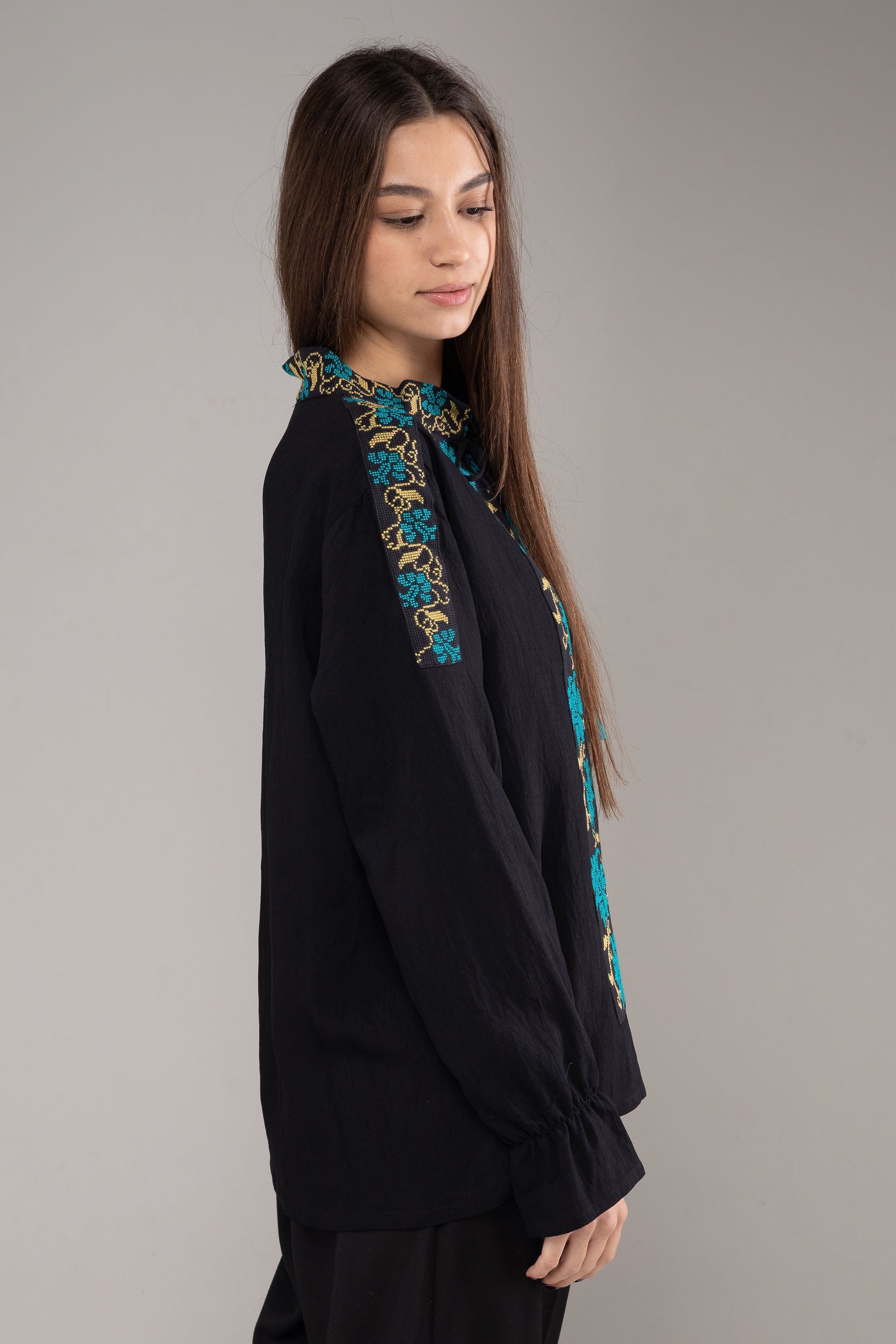 この作品は、ウクライナの伝統と美しさを象徴するヴィシヴァンカの刺繍を採用しています。過度な派手さを追求せず、日本の日常生活に自然に溶け込むデザインとなっております。しかし、それでいて洗練された高級感とカジュアルな雰囲気を両立させ、見る人を魅了する一着となっています。