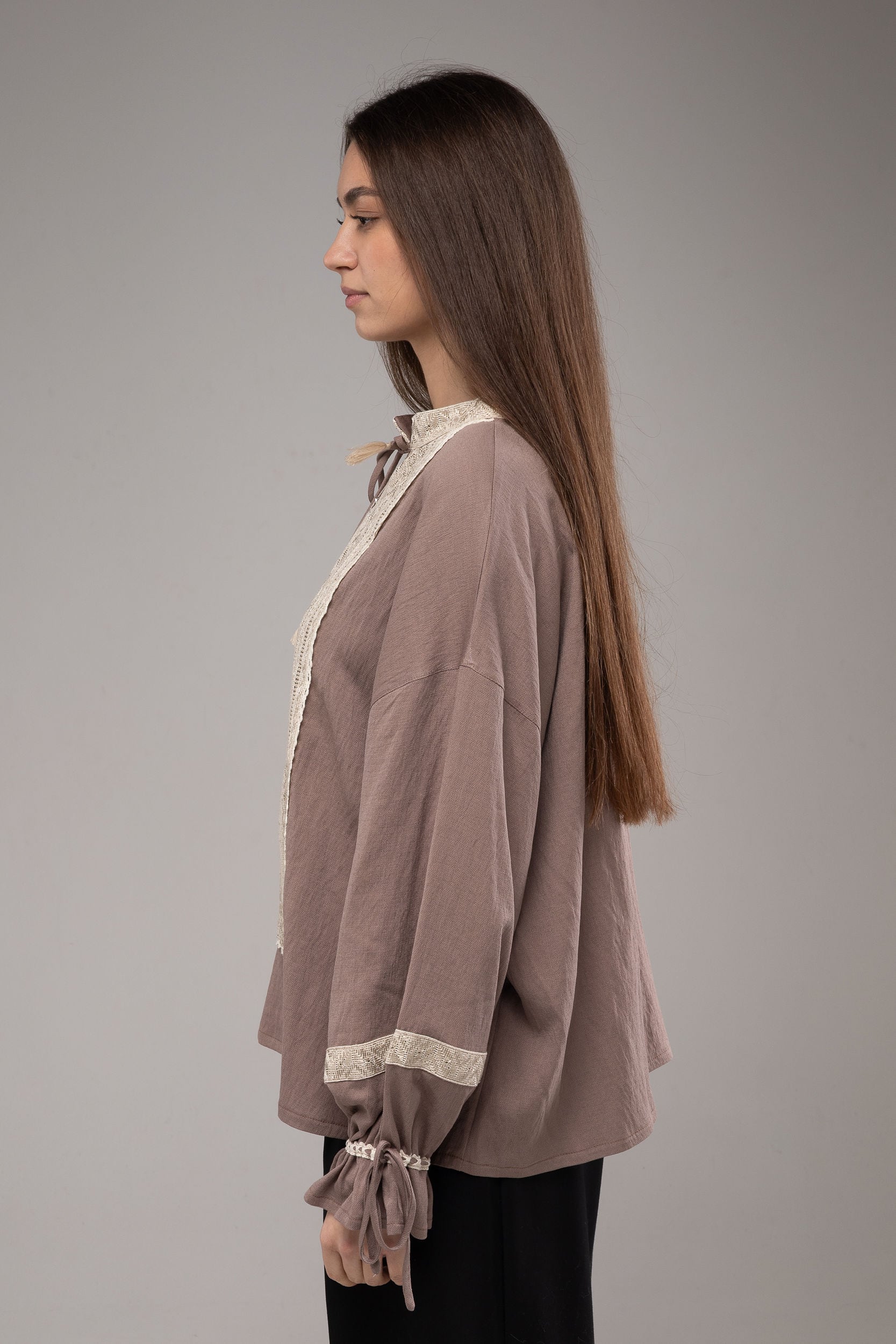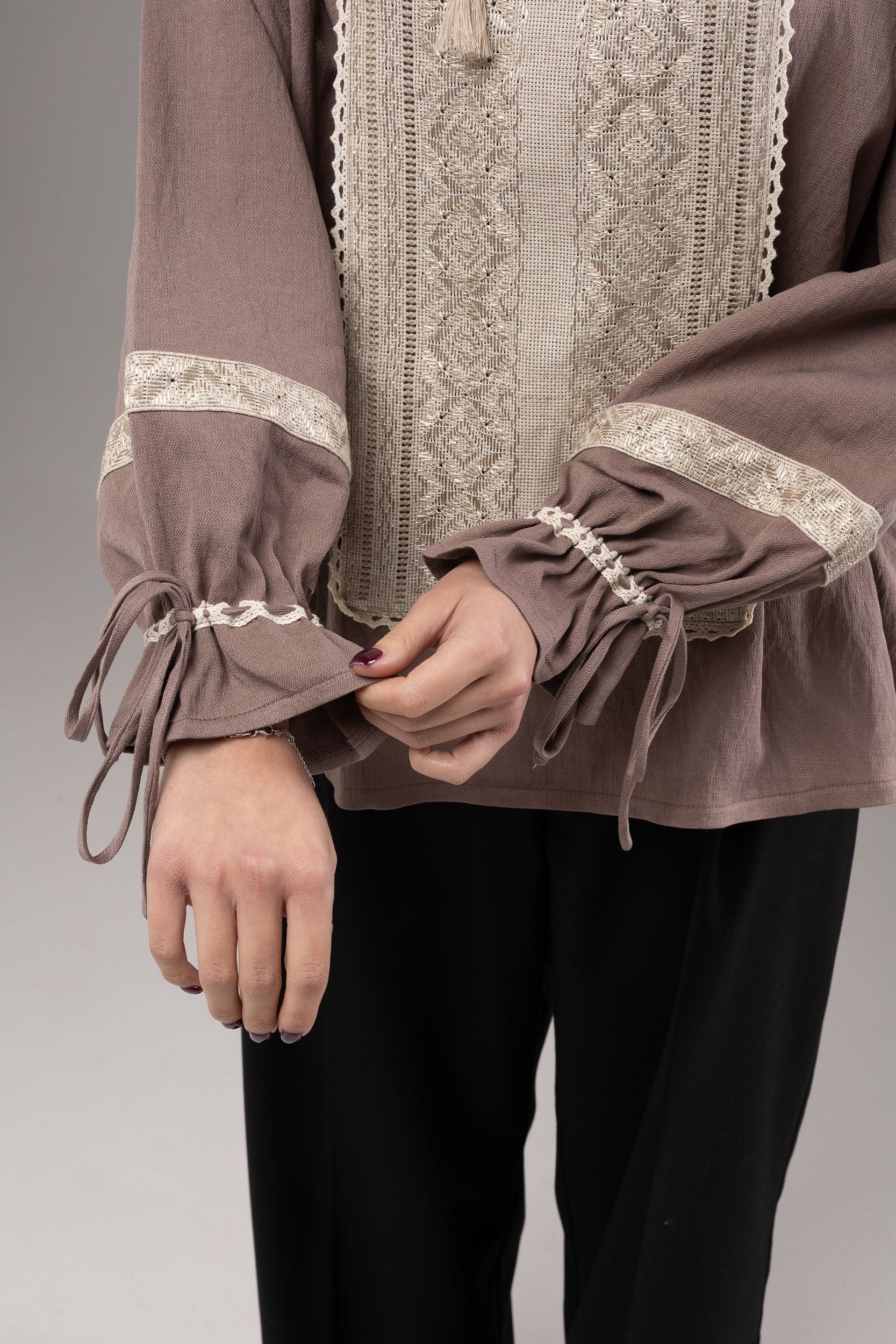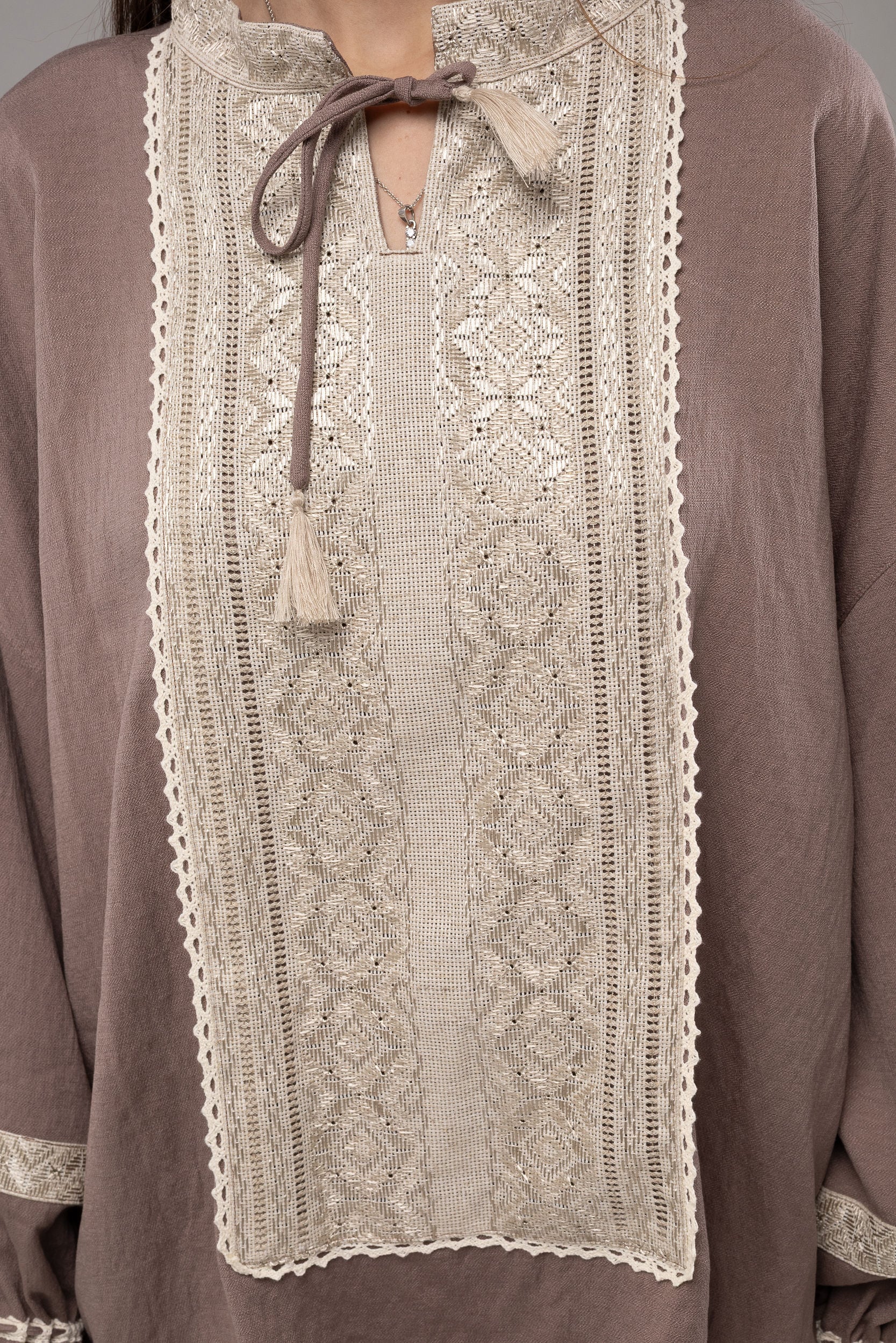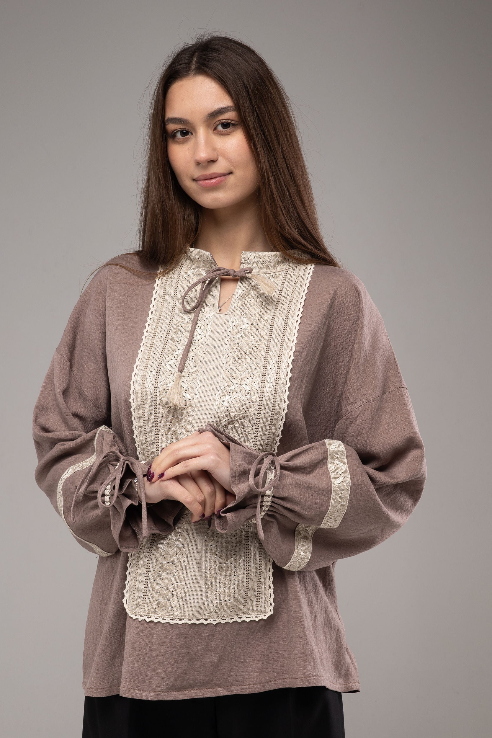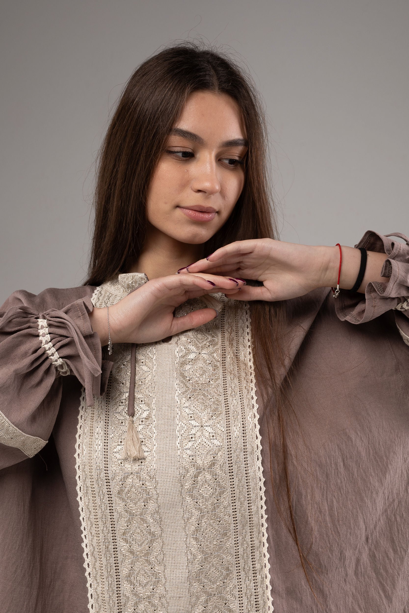 この作品は、ウクライナの伝統と美しさを象徴するヴィシヴァンカの刺繍を採用しています。過度な派手さを追求せず、日本の日常生活に自然に溶け込むデザインとなっております。しかし、それでいて洗練された高級感とカジュアルな雰囲気を両立させ、見る人を魅了する一着となっています。