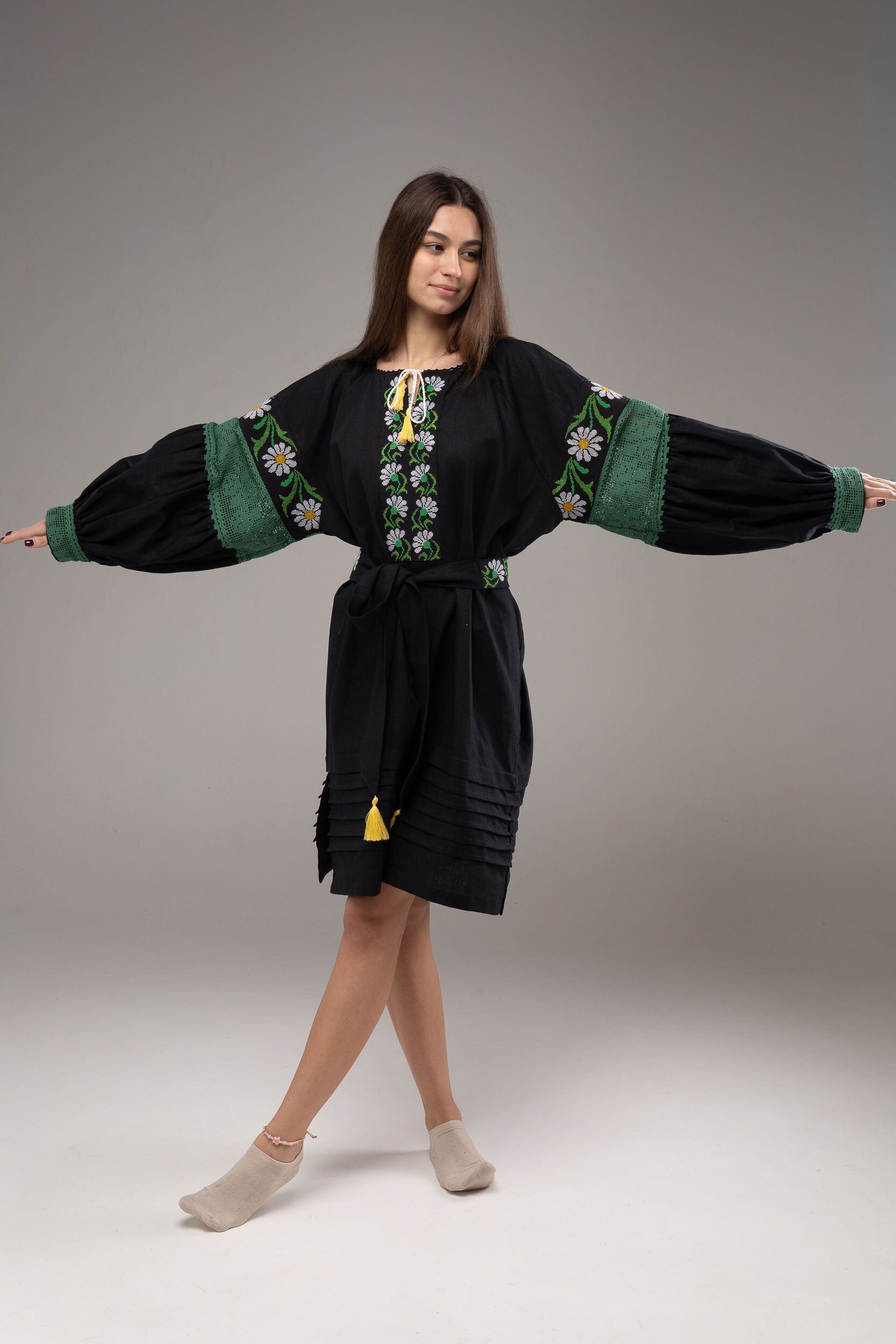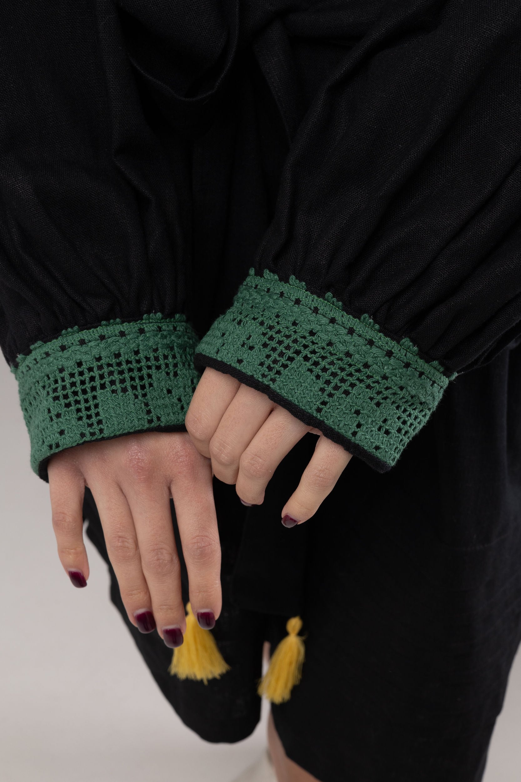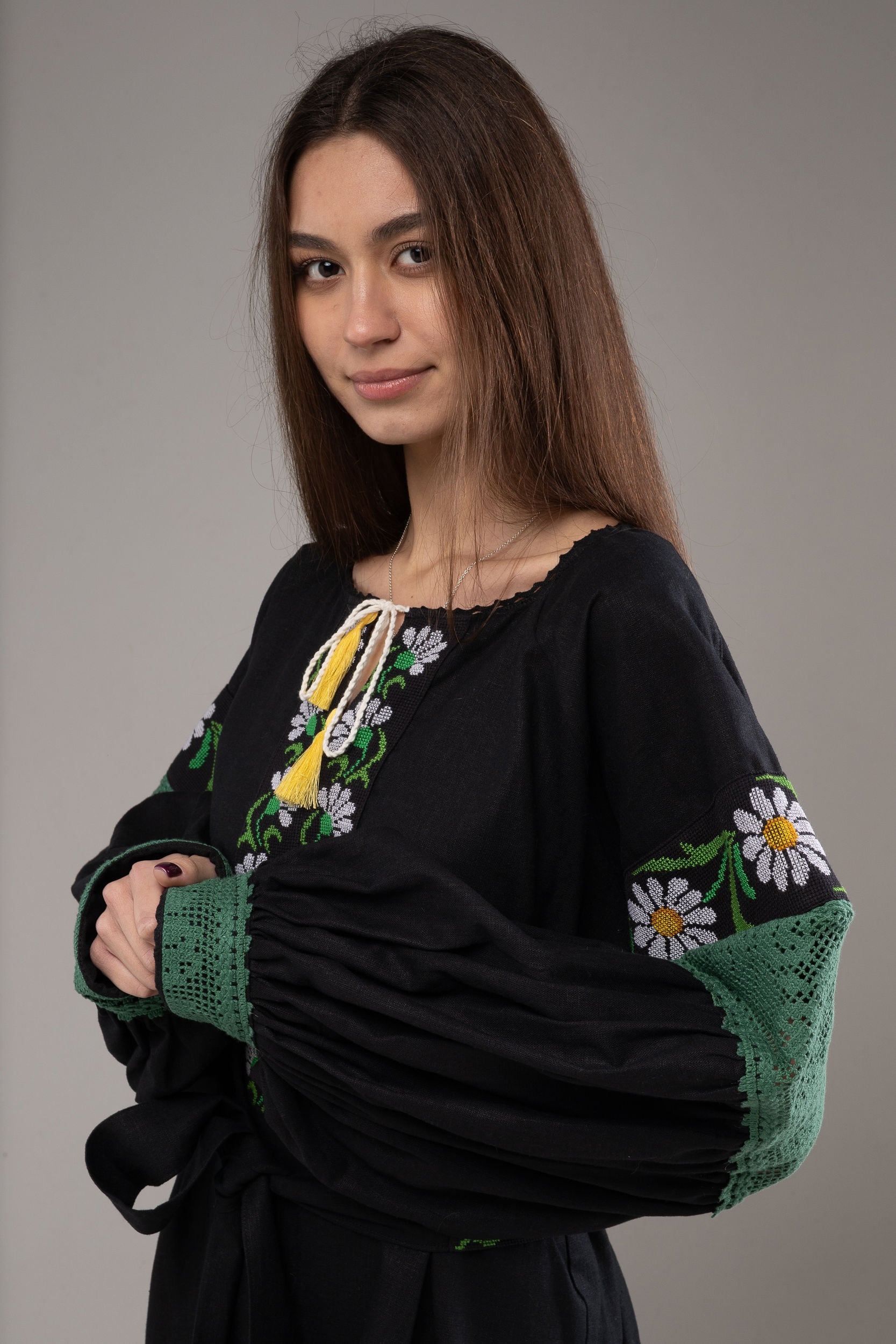 ウクライナ刺繍ヴィシヴァンカ バルーン袖 手刺繍 麻 レディース・フリーサイズ